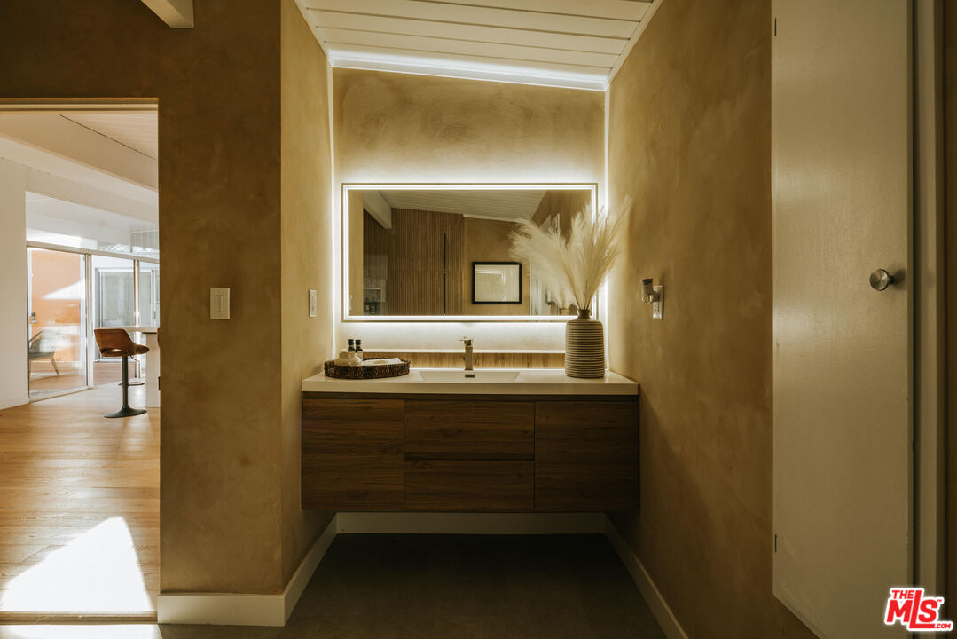 Mid-Century Masterpiece built by the legendary, famed builder/developer Joseph Eichler in the Balboa Highlands area of Granada Hills. This Eichler home features 4 beds and 3 baths with an office, approx 2,800 of interior sqft on a 13k sqft lot, 2 car garage, plus electric wall unit. Close to hwys 405/ 118/ 5/ 210. An entertainers dream, drenched in natural sunlight, this smart home also allows you to control home features from your phone. Step inside the front door to an interior open air zen courtyard, complete with seating and fire-pit surround by floor to ceiling glass and trees. The open concept floor plan makes it perfect for entertaining. The primary bedroom/ bath with walk in closet and guest beds/ bath are all located off the main living area. The kitchen has a large island with seating, floating cabinets, under mount lighting, a walk in pantry, stainless-steel appliances and access to the garage and side yard. Located off the kitchen is a full bathroom and wet room with access to the outdoor pool area. The main living and dining area have large floor to ceiling windows that flank each side of the gas fire place whilst enjoying the backyard oasis. The backyard hosts a large chlorine pool with water feature, outdoor shower, in-ground Spa, dining area, lounge area, and a flat expansive 1,600 sqft extension to the grassy yard for games or entertainment. For extra added enjoyment, the side of the home has an outdoor home theatre and gym/ flex space. The updates to the home include engineered blonde wood plank flooring, new sliding doors in the living room, kitchen and primary bedroom as well as 5 added A/C units - 4 for each bedroom and one in the main living area.Interested in this Listing?