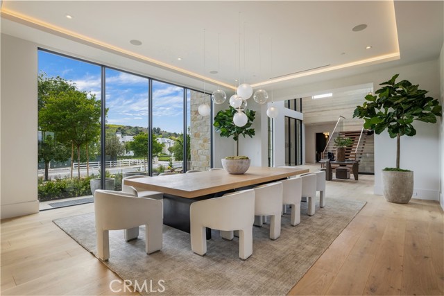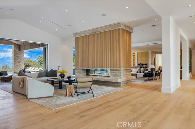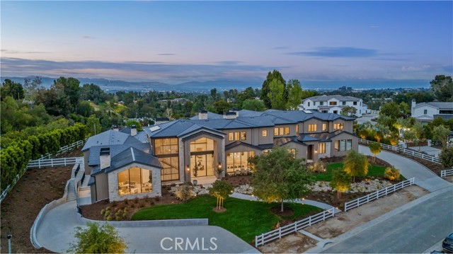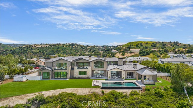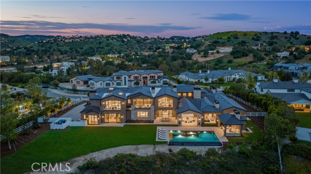 Welcome to "The Ridge at Hidden Hills". This new, absolutely spectacular, one-of-a-kind estate is nestled at the end of a quiet cul de sac and is sited on a beautiful 1.77 acre view lot. Step through the custom 12 glass pivot door and enter into a world of luxury, elegance, and quality. Bathed in natural light, and spanning 21,670 square feet, this home exemplifies the essence of the relaxed, indoor/outdoor California lifestyle. Highlights of the spacious open floor plan include a gorgeous, three level floating staircase, stellar, restaurant quality chef s kitchen (and prep kitchen), entertainer s center island with counter seating, and big breakfast room, all open to the large family room with motorized, sliding walls of glass, two-sided fireplace, and adjoining living room with lounge and seating bar. Additional amenities include a formal dining room with refrigerated wine wall, adjoining butler's pantry, and a full catering kitchen, plus a large private office with full wall windows, a stunning home theater with fabric covered acoustic sound walls, and wonderful gym & spa complete with massage room, steam shower & sauna. There are six generous en suite bedrooms, four upstairs and two on the main floor, all serviced by an elevator. The superb primary suite offers a sitting area, fireplace, deluxe bath with dual showers and big soaking tub, enormous, room sized custom closets, and a large private balcony showcasing the expansive pastoral views. One of the two downstairs suites is a second primary suite with a soaking tub, covered patio, and its own private entrance. The basement space is a world of its own with a huge game room/lounge, a two lane bowling alley, and garages for 10 cars, showcased by gleaming epoxy floors, plus there's an additional 4 car garage on the main level. The spacious grounds include a sparkling, zero edge infinity pool & spa, three covered patios complete with a full barbecue center, two fireplaces, a powder bath, outdoor bath & shower, and expansive grass lawns. There are also plans for a guest house. This trophy property is located on one of the finest streets in all of Hidden Hills, and close to highly regarded public & private schools, and The Commons shopping center.Interested in this Listing?