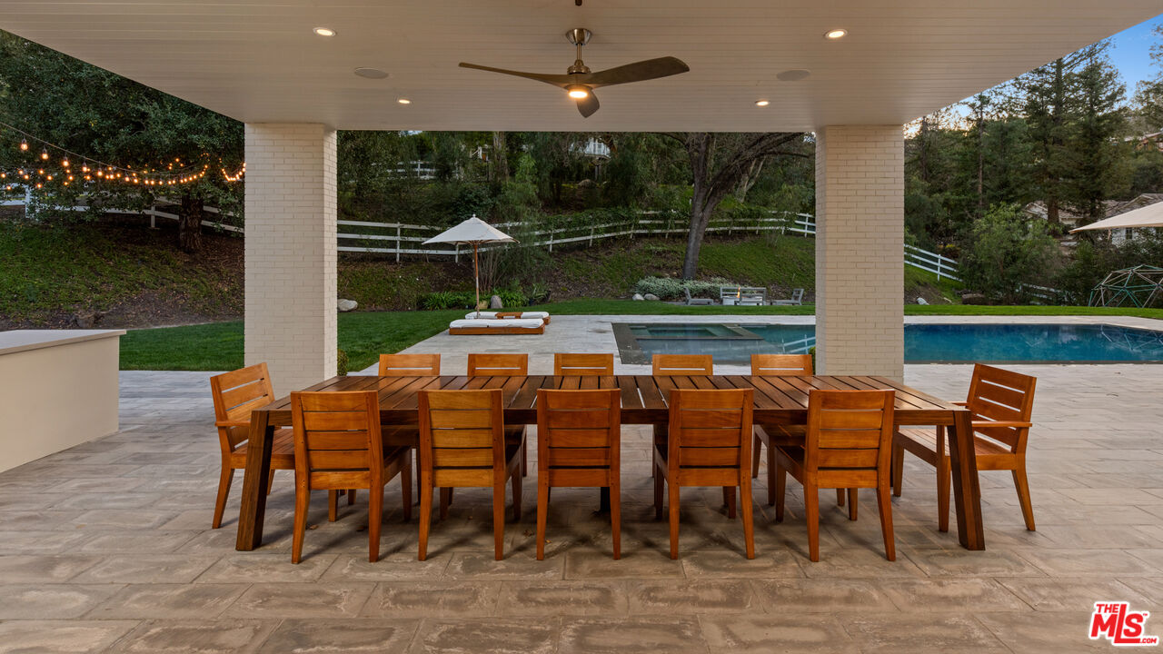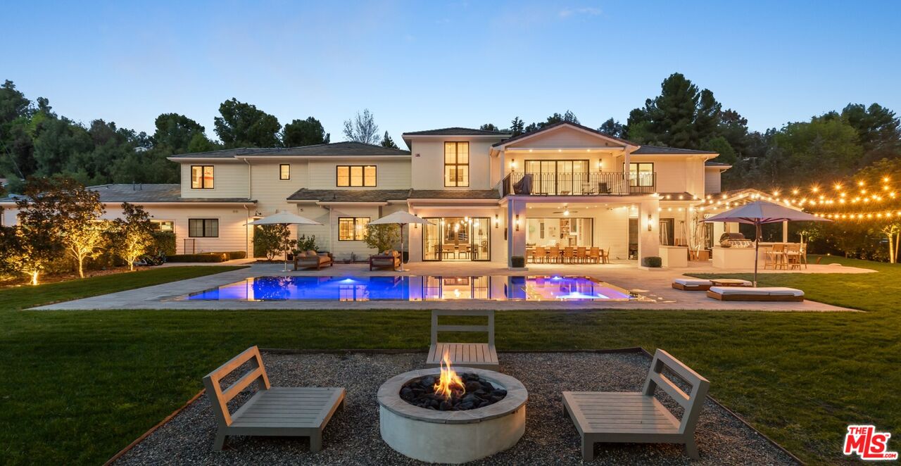 Set within the prestigious enclave of Hidden Hills, this newly built modern farmhouse is a showpiece of contemporary design and effortless luxury. Perfectly positioned on Trophy Row, near the end of Long Valley Road, it shares its coveted address with some of the most iconic estates in the community. From the moment you step inside, you're greeted by soaring 20-foot ceilings and natural light that pours into the grand foyer, setting the tone for the home's seamless indoor-outdoor flow. Spanning 1.15 acres of private, lushly landscaped grounds, this estate was designed for both grand entertaining and intimate retreat. The thoughtfully designed layout features six spacious bedrooms, including two downstairs, along with a private office and a state-of-the-art home theater. Upstairs, four additional bedrooms offer luxurious accommodations, including the primary suite -- a true sanctuary with his and hers closets, a cozy fireplace, stunning primary bath with steam shower, and a private terrace offering breathtaking views. Designed for the modern entertainer, this home is rich in amenities, including a bespoke powder room, a climate-controlled wine cellar, a Control4 smart home system, and a chef's kitchen with a walk-in pantry and maid's quarters. Outside, the resort-style backyard boasts a pool, spa, multiple fire pits, a built-in barbecue, a full outdoor kitchen with a sink, and a custom pizza oven, creating the ultimate setting for both relaxation and celebration. A statement of sophistication and style, this Hidden Hills masterpiece is an unparalleled offering in one of the most sought-after locations in Los Angeles.Interested in this Listing?