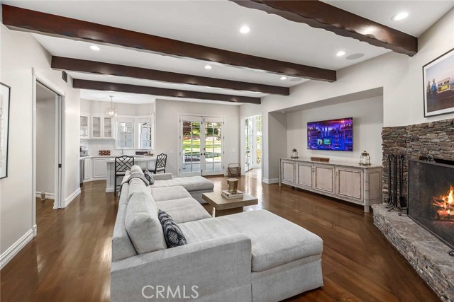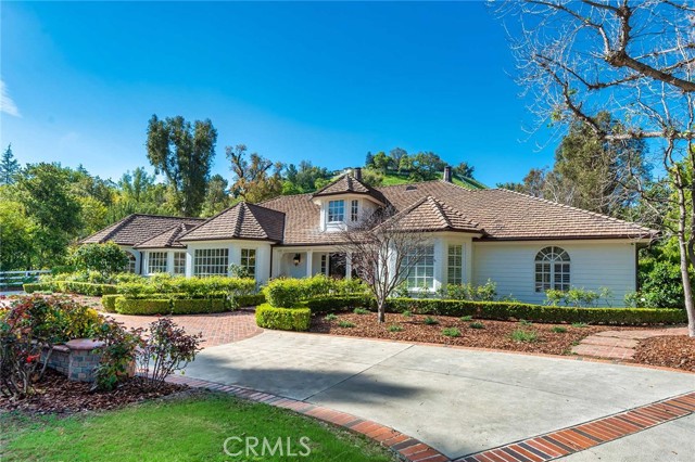 This immaculate and very nicely upgraded estate residence is in a prime central location, and sited on one of the best cul-de-sac streets in all of Hidden Hills. Highlights include a chef's center island kitchen with stainless steel appliances and adjoining, sunny breakfast room, a spacious family room with open beam ceiling, wood burning fireplace, wet bar, and big picture windows overlooking the grounds, plus a large game/media room, big gym, custom office, and formal living & dining rooms, each with custom ceiling detail, all highlighted by wood and stone floors throughout. There are a total of six bedroom suites, including the first floor primary suite with wood burning fireplace, onyx bath & dual custom closets. There is also a guest house with kitchen & bath. The very private grounds include a sparkling pool & spa, large grass yard, barbecue center, multiple patio areas, fruit & shade trees, a circular driveway, and garages for four cars, with an additional car lift included. This lovingly cared for home has much to offer.Interested in this Listing?