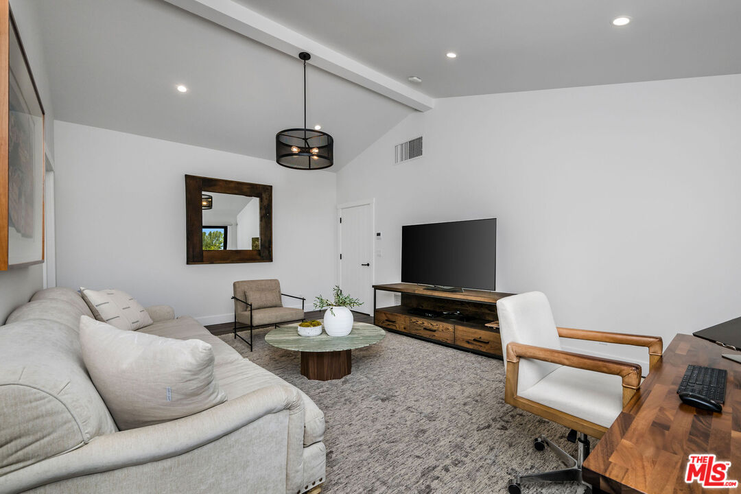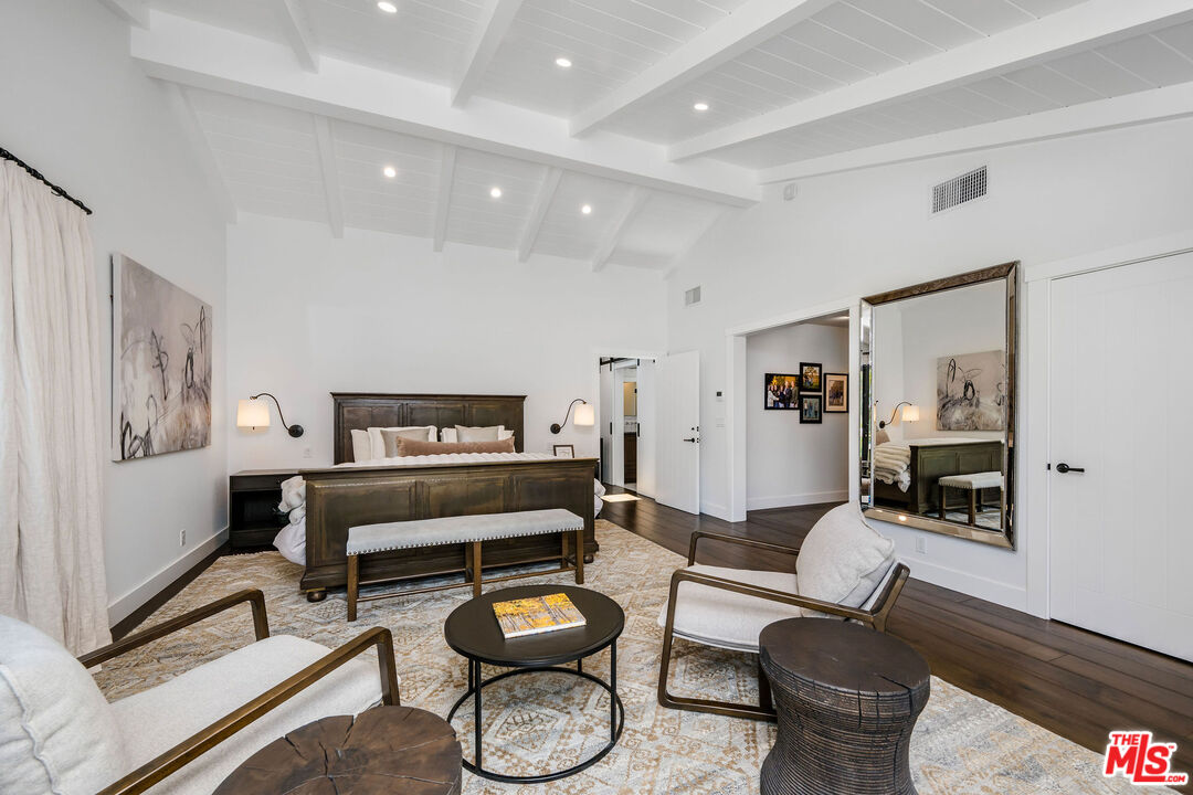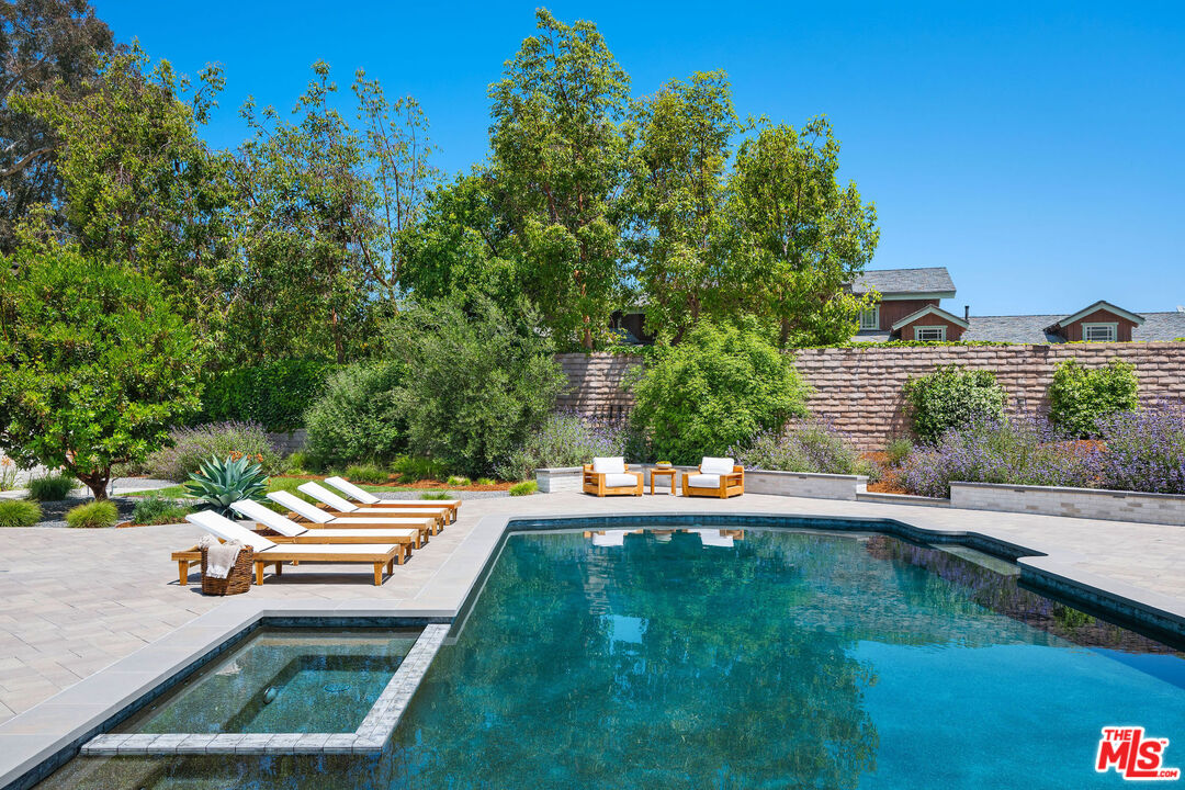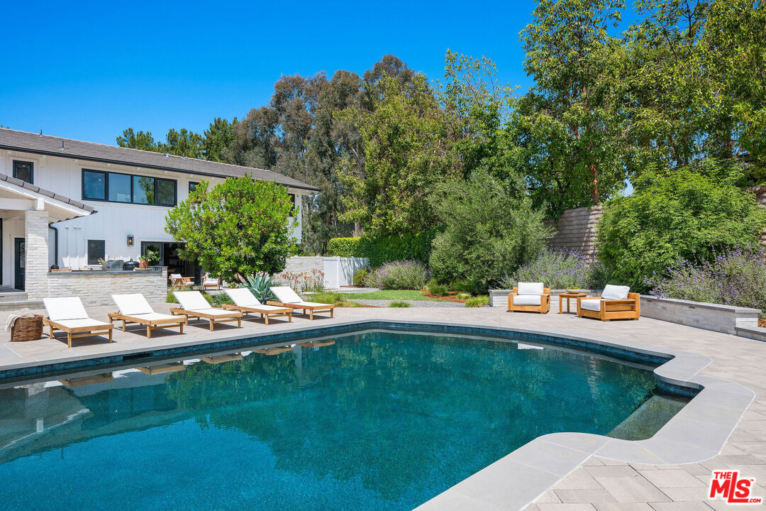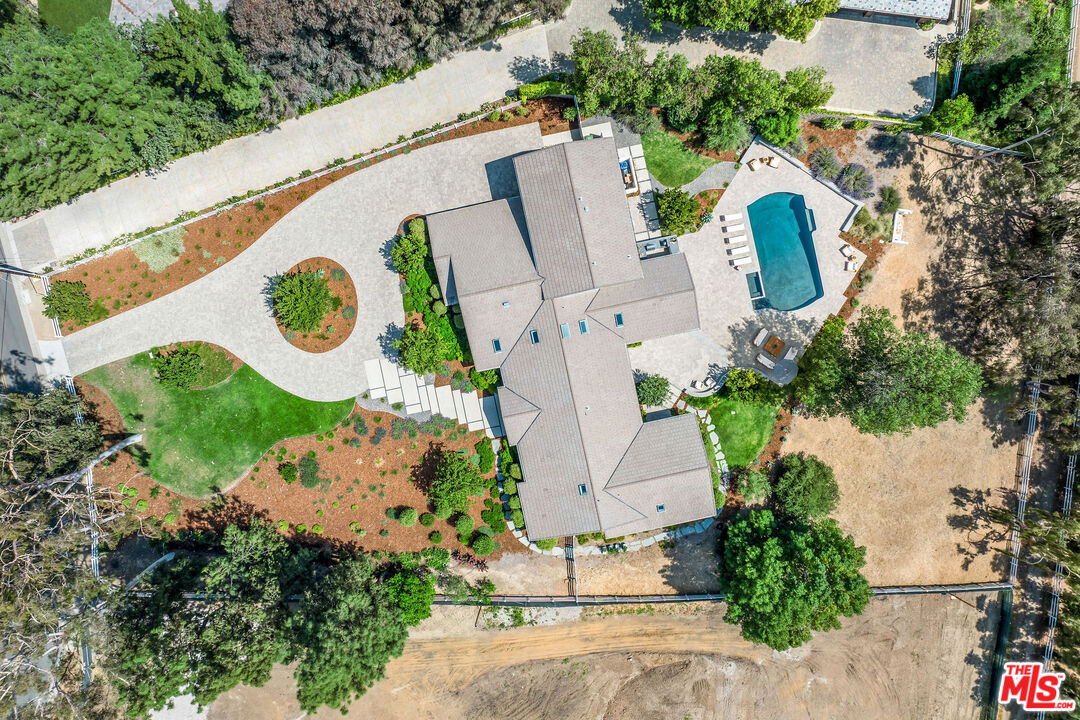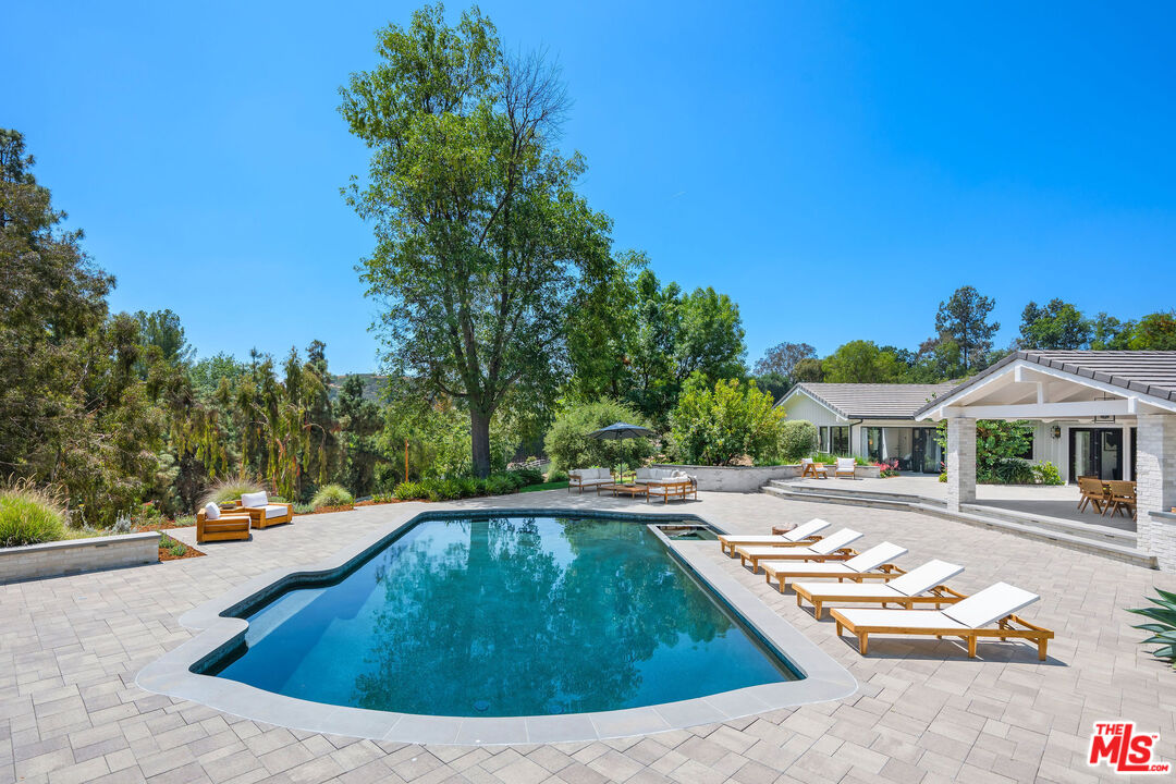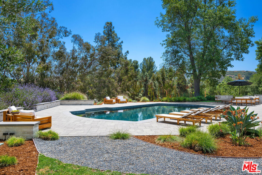 This quintessential Hidden Hills estate is like no other. An outlier in all of the best ways, this property has retained its 1960's pedigree while offering all of today's luxuries in an earthy, California palette. One of its many unique features is that it lives like a single story with only two of its six en-suite bedrooms on the second floor. Situated on one of Hidden Hills most sought after streets on a flat lot, this property ushers you in with its long circular driveway and beautiful native landscaping. Upon entering, you'll notice the sophisticated materials used to transform this home into a sanctuary for everyday living and entertaining. Designed by Jessica Risko Smith to capture luxurious comfort as well as simplicity, this home offers understated elegance throughout. Featuring Oregon oak flooring, the elegant living room flows out to the yard through European tilt-turn doors. The spacious family room has gorgeous vaulted ceilings with skylights and leads out to a covered al fresco dining area. The spectacular kitchen also has vaulted ceilings and skylights as well as dual marble topped islands. The perimeter soapstone countertops and cabinetry are framed with European tilt-turn windows with views to the front. A walk-in pantry and high-end Miele and SubZero appliances elevate the space. Adjacent family and dining rooms offer seamless flow for entertaining. Three en-suite bedrooms with stunning baths as well as a stackable laundry closet lead to the main level primary suite. The primary suite features cathedral ceilings, dual walk-in closets and doors leading to the patio. The spa-like primary bath has curated details such as an oak dual vanity with center storage, marble flooring, soaking tub and large shower. Additional highlights include a 500 sq ft office/flex space which opens to the yard, a spacious mudroom with prep sink and full laundry, powder room and beautiful pool bath with shower. Two additional vaulted-ceiling bedrooms are located upstairs, each ideal as guest suites or additional primary suites. Outdoor living is just as impressive, with a Pebble Tec pool and spa, a built-in BBQ with soapstone counters, a covered patio, and beautifully landscaped grounds. The 1.25-acre lot also includes a flat area suitable for a barn, ADU, tennis court, or other structure. This home is both high-performance and highly comfortable. Every detail has been thoughtfully considered to support a lifestyle that is elevated, and beautifully in tune with its surroundings. Every system - from foundation to roof - were upgraded, creating a property that blends modern function with timeless design. All located in prestigious Hidden Hills with its top tier security, numerous community amenities, horseback riding arenas and trails, and Blue Ribbon schools.Interested in this Listing?