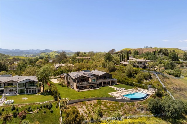 Perched on a pristine 1.6-acre lot in the prestigious Ashley Ridge enclave of Hidden Hills, this newly constructed estate is a masterpiece of modern luxury and design. From the moment you step through the custom front door, you're welcomed into a world of refined elegance. A breathtaking two-story foyer crowned by a full glass ceiling floods the interior with natural light, setting the stage for the home's extraordinary ambiance. The expansive open floor plan is designed for both grand entertaining and effortless daily living. At its heart is a chef s dream kitchen featuring a large center island with counter seating, a spacious breakfast area, and an adjoining butler s pantry equipped with a separate catering kitchen. The kitchen flows seamlessly into a spectacular great room with sliding glass walls, a two-sided fireplace, and an adjacent living lounge complete with a stylish seating bar and a glass-enclosed, temperature-controlled wine display. Additional highlights include a formal dining room, a sunlit private office with picture windows, a state-of-the-art home theater with acoustic fabric walls, a large game room, and an oversized gym and spa area featuring a steam shower and sauna. Upstairs, a dramatic vaulted den with open-beam ceilings and a full wall of glass overlooks the beautifully landscaped grounds. With six generous en suite bedrooms two on the main level and four upstairs this home offers both comfort and privacy. The opulent primary suite is a true sanctuary, complete with a fireplace, two luxurious bathrooms (each with a soaking tub), custom walk-in dressing rooms, and a private balcony showcasing sweeping views of the city lights and rolling hills. The resort-style backyard is equally impressive, featuring a stunning zero-edge infinity pool and spa, over 2,000 square feet of covered outdoor living space with a fireplace and full barbecue kitchen, and expansive lawn areas perfect for recreation or entertaining. This trophy estate delivers a rare blend of architectural brilliance, top-tier amenities, and an unbeatable location on one of Hidden Hills' most coveted streets.Interested in this Listing?