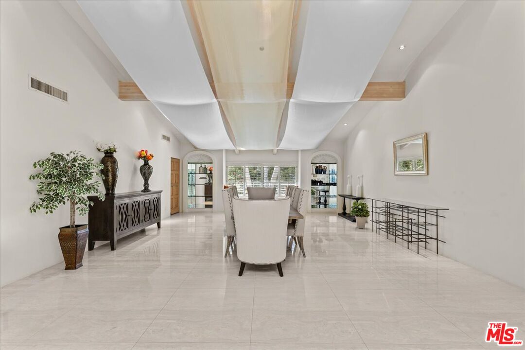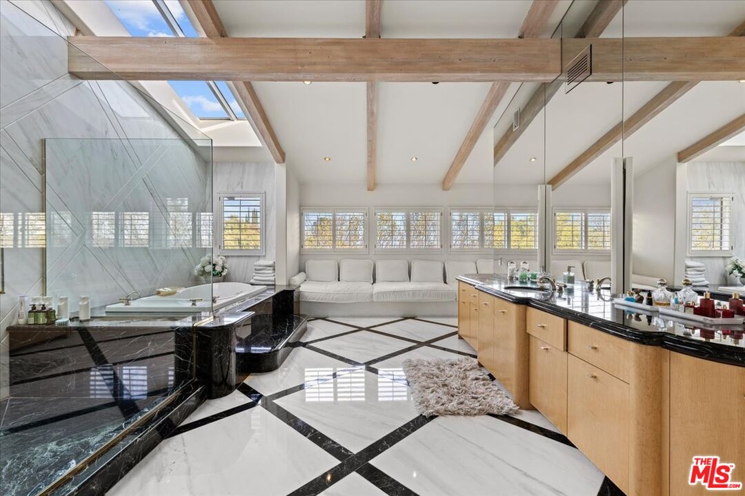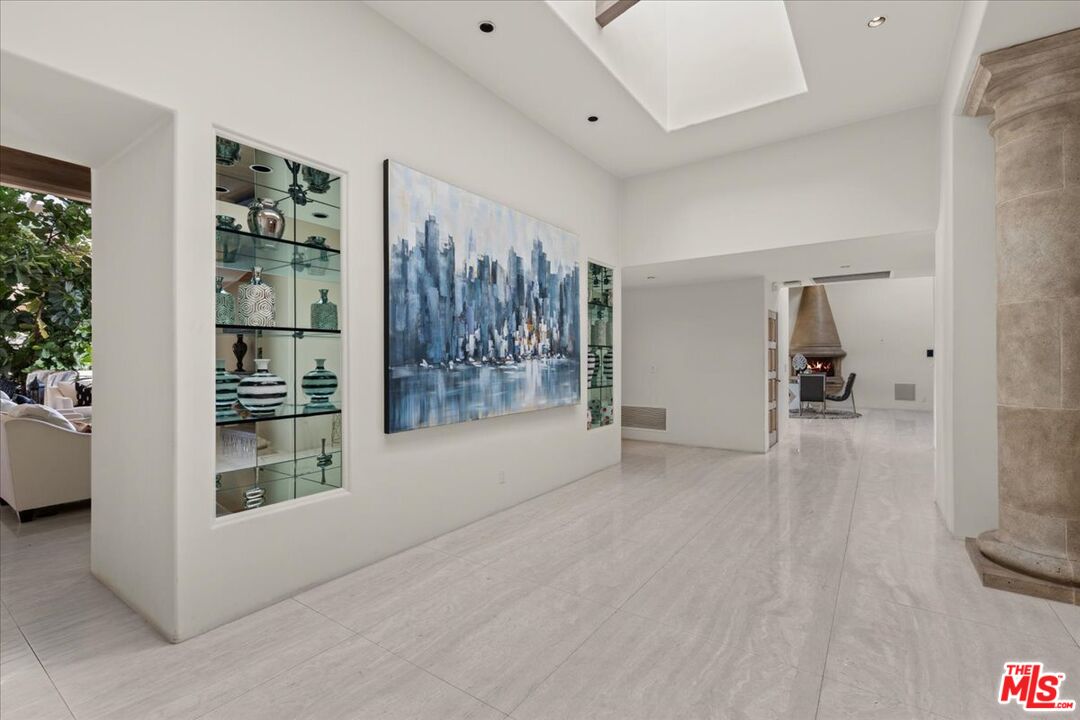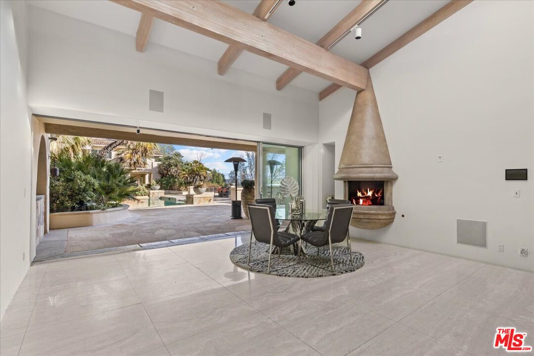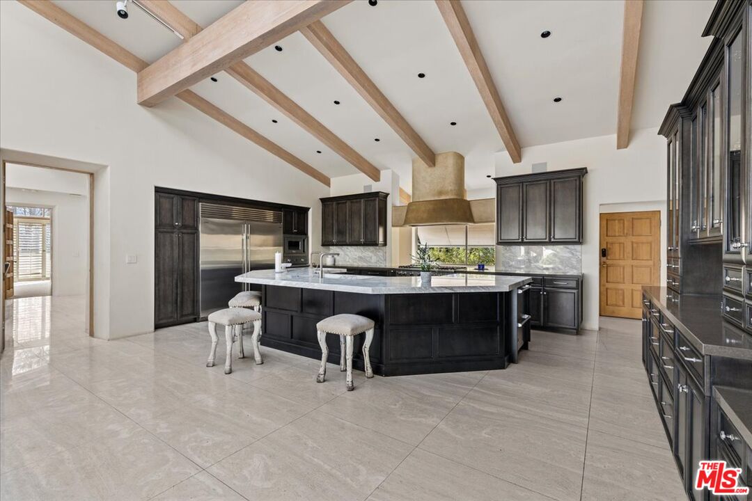 Sited on nearly an acre and a half in the exclusive Ashley Ridge enclave of guard-gated Hidden Hills, this 16,000 SqFt custom designed estate is complete with impeccable details and a backdrop of canyon vistas. A private circular driveway and manicured lawn are canopied in mature trees, welcoming you to the middle of a three-peak architectural build through a grand arched doorway. Bespoke wooden ceilings laid in oak beams contrast the sleek limestone flooring to frame walls of glass, showcasing an irreplaceable view. The craftsmanship of the highest regard detail each room through grand open skylights, perfectly spaced and flushed custom lighting, carved wooden doors, built-in shelving, marble fireplaces, and deep green indoor landscaping with gorgeous mature trees bringing a balance of vibrance and life to the home. The open floor plan draws you through to the picturesque windows lining the rear wall, featuring an artisan bar seating five in length, with a sink, refrigerator, temperature-controlled wine storage, and marble countertops. To your right, the chefs' kitchen and breakfast corner is bathed in natural light from a center peak skylight and brought to life by dark wooden cabinetry and island paneling, matching stone countertops and backslash, and a built-in floating fireplace curated in the same clay as the kitchen hood above the 7-range burner stove. Top-of-the-line stainless steel Viking appliances, dual ovens, a warmer tray, and dual sinks are all built in to create both a luxurious and functional space. The main level is complete with a formal dining room, a lounge with a wet bar and fireplace, an ornate mahogany office/library, and two en-suite bedrooms. Ascend upstairs to the royal primary wing offering gorgeous wooden flooring and beams, a fireplace, a separate lounge room with a kitchenette, a custom double-sized walk-in closet, and a spa-like bath finished in marble flooring, bright windows, an open skylight, a relaxing sitting tub and glass standing shower. Outside, the upper deck is anchored by a sparkling pool and spa, lush foliage, a fire pit and veranda balcony, and a separate covered loggia with a seating area with a TV, fireplace, and a full outdoor kitchenette, cooktop, and Viking grill. Explore down the stairs to a grand flat yard space, a full-sized basketball court, a wooden walkway to the side yard with raised beds for gardening plants and vegetables, and a playground, all overlooking the Santa Susana Mountain Range. The owner worked for over two years closely with the Architectural and Design firm, Iqosa, to develop creative yet meticulous plans totaling 19,000 SF should the new owners like to explore a reimagined project in both architecture and interior decor. The refreshed plans include 9-bedrooms, 2-service quarters, a full theater, gym, spa, and a redesigned chef kitchen all submitted and approved with the city of Hidden Hills and HOA. This sophisticated estate is boasting of exclusivity, design, and quality while being equipped with amenities for both families and an entertainer and sited in one of the safest, most coveted school districts and communities in the country.