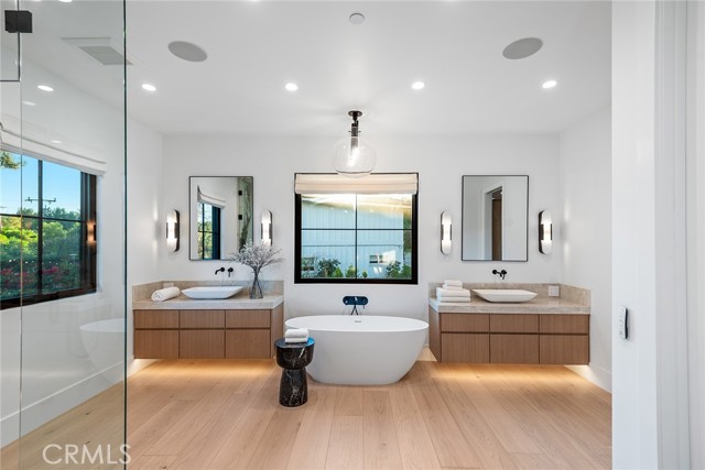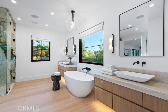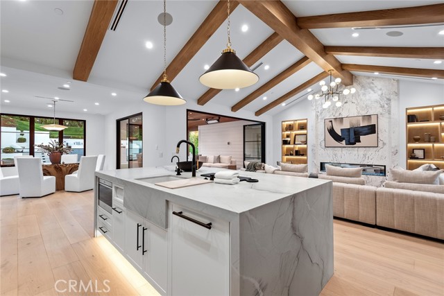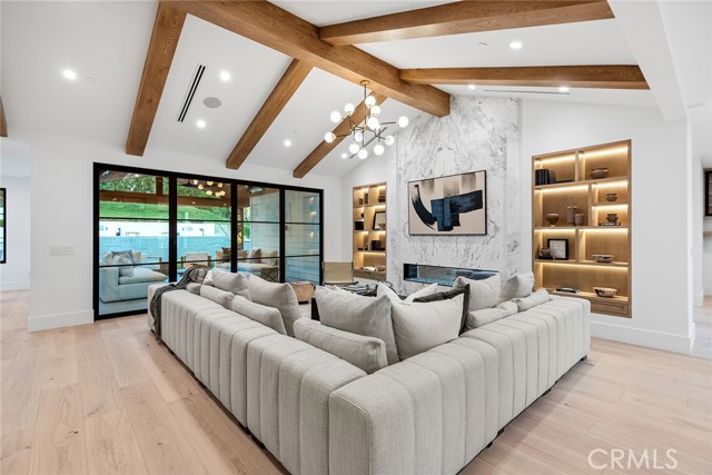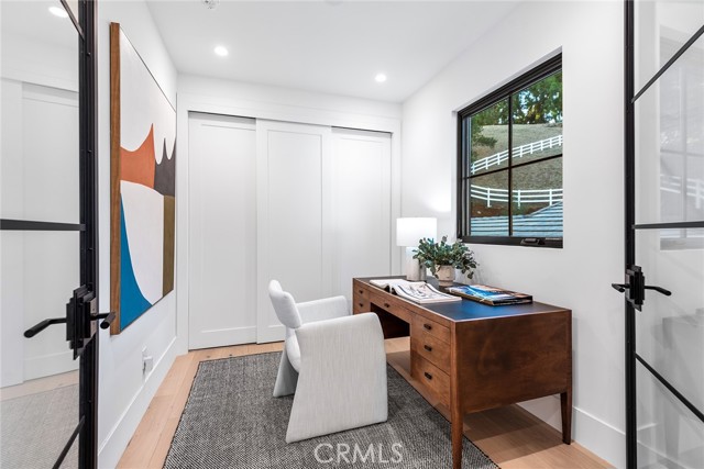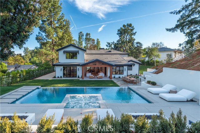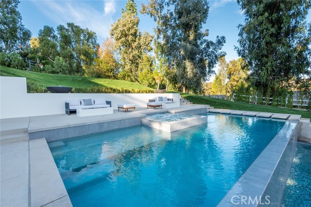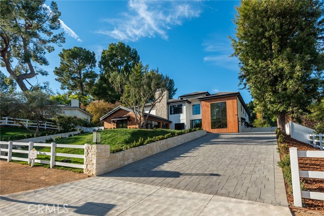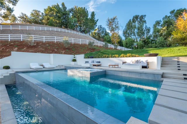 This beautiful brand new estate is nestled on a prime, quiet cul-de-sac in the heart of Hidden Hills and is sited on a very private 1.27-acre lot. Offering 6,002 square feet of quality living space, the seamless, open floor plan is flooded with natural light, with every detail carefully designed for comfortable living and modern convenience. Highlights include a gorgeous, center island chef's kitchen, plus prep kitchen (with Lacanche Range, and Wolf/Sub Zero appliances), opening to the large family room with two-sided fireplace, plus a luxurious home theater with acoustic upholstered walls & Dolby Atmos immersive sound system, a full wet bar with a 156 bottle refrigerated wine wall, casual living & dining rooms for easy entertaining, a custom office, an exercise room, and a second upstairs study. There are four en suite bedrooms, each beautifully finished. The primary suite is an expansive retreat, featuring a sitting area with fireplace, a spa-like bath with soaking tub , large glass encased steam shower, and loads of closet space. Additional features include vaulted ceilings, European Oak floors, skylights with solar powered shades, a Control 4, smart home automation system that allows you to control lighting, temperature, security & entertainment with ease, and a convenient mud room located at the entry to the three car garage. Step outside to discover a beautiful oasis. The grounds offer a raised, salt water infinity pool that cascades like a fountain, a large covered patio with fan & ceiling heaters, perfect for outdoor dining and entertaining, a built-in barbecue center, two fire pits, sports court, fruit & olive trees, an herb garden, loads of grass & play areas, and lush privacy landscaping with additional room for a future vineyard or orchard, all combining to create the feeling of a peaceful retreat. The home also offers easy access to the entry gates and nearby schools & shopping, and is close to the community center with pool, tennis courts, and recreation area. It's very rare to find a new home of this size and scale in Hidden Hills, so don't miss this one!Interested in this Listing?