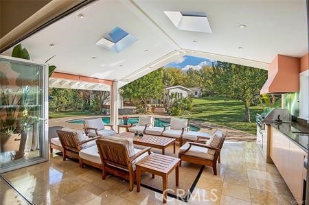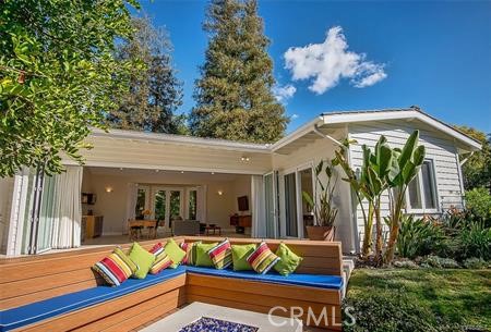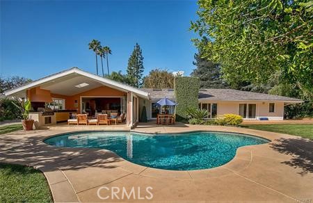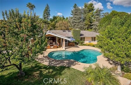 Enjoy this nicely updated and wonderfully serene one-story home that is nestled on a gorgeous, over one acre lot. This home includes a full guesthouse with its own kitchen, den and bathroom, plus there is a small barn with turnout at the rear of the property. The main residence features a light, bright, and wide open floor plan, perfect for casual entertaining. Highlights include a great master suite with stone bath and walk-in closet, large bonus room with wet bar, office/library, large family room opening to the center island kitchen, and sunny breakfast room with floor to ceiling glass accordion doors opening to the covered patio with a complete barbecue center. The grounds include a sparkling pool, lots of grass and mature privacy landscaping.Interested in this Listing?