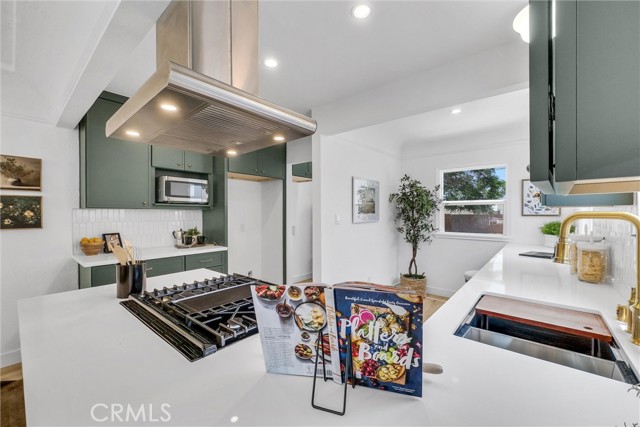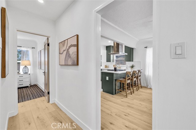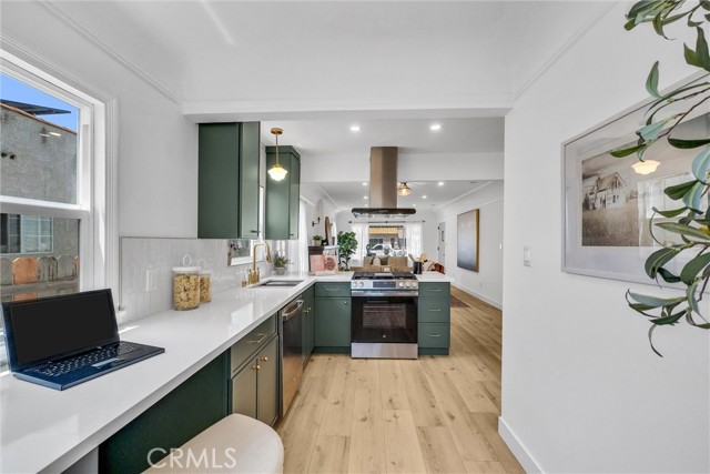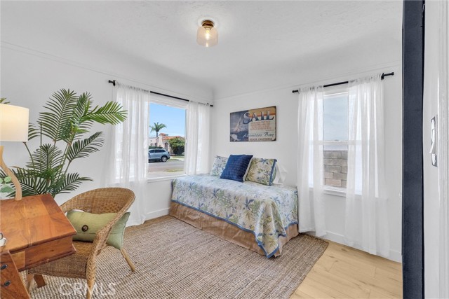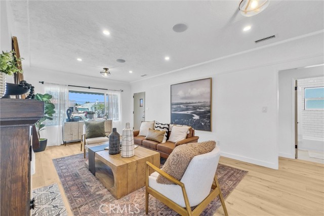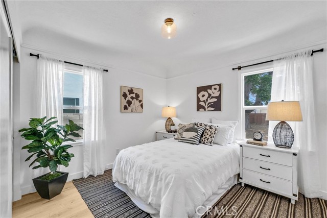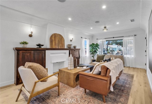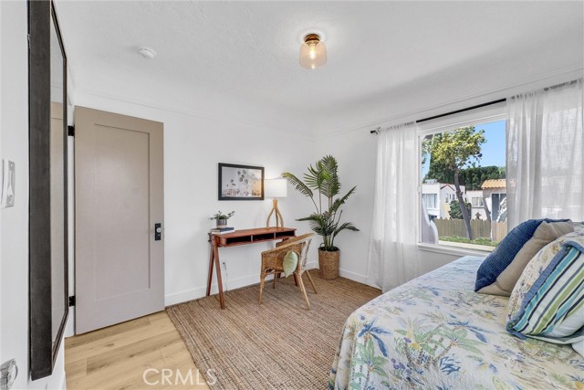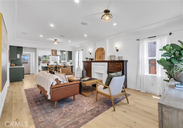 Welcome to this beautifully restored 1928 Spanish bungalow nestled on a picture-perfect street in North Long Beach. Set on a generous 5,284 sq ft lot, this 2-bedroom, 1-bath gem blends timeless character with thoughtful modern upgrades. From the moment you arrive, the Saltillo tile entry and original front door with vintage hardware set the tone for the warmth and craftsmanship found throughout. Inside, original cove and tray ceilings create a cozy, inviting atmosphere, while the spacious living room is bathed in natural light from dual-pane windows. Period details like built-in cabinetry, a mock fireplace with sconces (and TV plug), original moldings, recessed lighting, and ceiling speakers add both charm and functionality. The open-concept kitchen is a showstopper, featuring Cypress green shaker cabinets with antique brass hardware, white quartz countertops, a stylish tile backsplash, LED recessed lighting, a large breakfast bar, and new stainless steel GE appliances. A built-in desk area makes it ideal for remote work or study. Both bedrooms are generously sized with coved ceilings, original shaker doors, restored hardware, and ample closet space. The bathroom is a perfect blend of vintage and modern, with white beveled tile tub surround, matte black fixtures, a rain shower with wand, a green vanity with quartz top, and original white hex tile flooring with yellow rosettes. The home has been upgraded with new white oak LVT flooring throughout, new baseboards, an energy-efficient HVAC system, full electrical rewire with 100-amp service, copper plumbing, and a newer composition roof. The service porch includes stackable laundry hookups and a newer water heater. Fresh interior and exterior paint, new landscaping, and a sage green fabric awning complete the picture. Step into your private backyard oasis with lush new sod, sprinklers, and plenty of space for entertaining, gardening, or even building your dream ADU. The oversized one-car garage is fully finished with new paint, washer hookups, a brand-new garage door, and Genie opener. Located in a quiet, friendly neighborhood with easy access to shops, schools, parks, and the beach, this home isn t just a place to live it s a place to thrive. Come fall in love and make it yours.