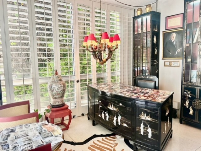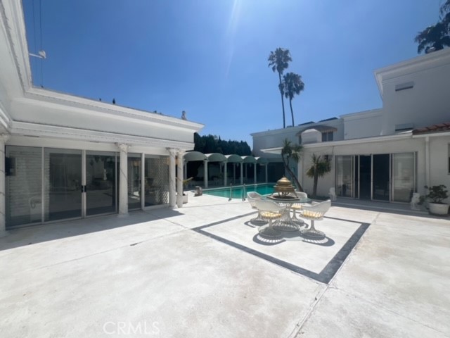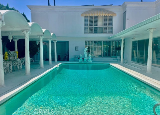 WELCOME HOME to this spectacular one of kind custom built property located overlooking Recreation Park golf course. This very unique home is a well designed combination of Mid Century Modern and traditional elegance and very upgraded finishes including terrazo flooring, marble countertops, numerous finished white columns, two marble fireplaces, gold plated door knobs, stainless appliances in kitchen, custom wall finishes pluse solar panels. Over 5000 s.f. of spacious living and entertainment areas including an expansive living room with marble fireplace, large great room with marble fireplace & bar area, formal dining room, separate office, well appointed kitchen with center island and numerous cabinets plus built in desk and a first level bedroom suite. All built around access and views to the large patio area with pool and entertainment room with wine storage, built brick barbeque and dining area. Up the grand curved staircase are 3 bedrooms including a very spacious primary suite with attached large balconey that looks out to the golf course, a primary suite bathroom finished in terrazo and marble with large sunken tub and two separate vanities. Lots of closets including a large walk in cedar lined closet. Down the hall is another bedroom suite with golf course views. closets and bathroom with an oversized round terrazo shower. The middle bedroom has a wall of windows with golf course views and balcony. A third bathroom boasts walk-in closets and a round terrazo sunken bathtub plus a large vanity sink area all finished in white marble. There is a 5th bedroom/bathroom studio above the garage with separate outdoor access. And the garage is spacious and easily accomodates 2 cars, laundry area and lots of storage. This 5000+ s.f. home sits on an oversized 11,000+s.f. lot and has been owned by the same family for over 60 years. Some furnishings are available for sale.Interested in this Listing?
