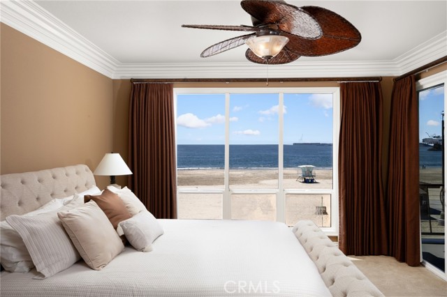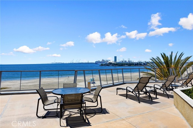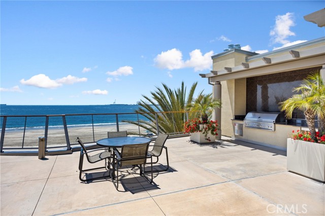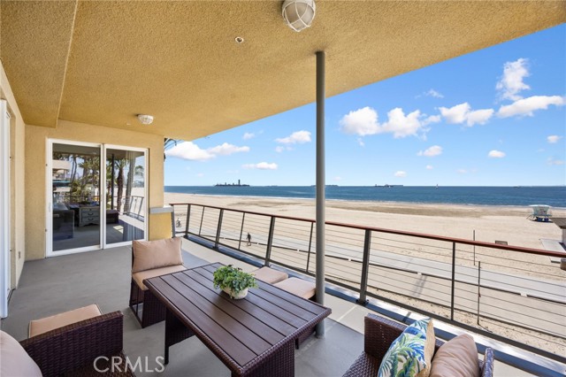 Experience elevated coastal living in this rare corner-end residence in the highly coveted Meridian Community, ideally located along the iconic Long Beach boardwalk. Enjoy panoramic, unobstructed ocean views from the comfort of your own home. Inside, refined finishes abound including travertine flooring, crown molding, plantation shutters, and custom cabinetry. Sophisticated touches enhance the open-concept living and dining area and feature two private balconies, a rare and desirable feature within the community. The gourmet kitchen is perfectly appointed for any culinary enthusiast, boasting marble countertops, soft-close drawers, custom cabinetry, and a full suite of premium appliances including refrigerator, dual dishwasher, gas range/oven, built-in microwave, and trash compactor. Designed with relaxation and entertainment in mind, the living room is equipped with surround sound, gas fireplace, and flows seamlessly into the indoor and outdoor spaces, which is ideal for enjoying the sweeping oceanfront views. The spacious primary suite is a private retreat, offering direct access to the main balcony and a beautifully designed en-suite bathroom featuring a soaking tub, dual vanities, a floor-to-ceiling marble walk-in shower with frameless glass doors, and two walk-in closets. Two generously sized guest bedrooms include mirrored sliding door closets and share a full hallway bath. Additional features include a laundry closet, media closet, and abundant built-in storage with custom closet organizers throughout. Enjoy being just steps from the beach and only minutes from the shopping, dining, and nightlife of 2nd Street and everything that Long Beach has to offer.Interested in this Listing?
