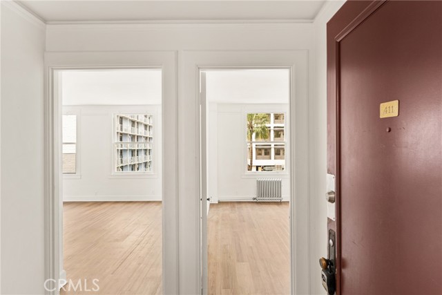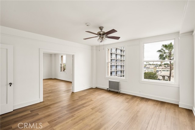 Nestled on the desirable 4th floor of the historic Cooper Arms Building, this updated corner unit offers ocean views and a beautifully refreshed interior. Fresh paint throughout and brand-new laminate flooring enhance the bright, airy feel, while large windows bring in abundant natural light and frame serene views of the Pacific and the lively East Village Arts District. The updated kitchen features quartz countertops and plenty of cabinet space, blending style with functionality. A built-in office nook creates the perfect space for working from home or managing your day-to-day tasks. A set of charming French doors leads to the bedroom, which includes a dressing area and an attached bathroom, combining comfort with a touch of classic elegance. As a corner/end unit, this home shares only one wall, providing added privacy and quiet living. Beyond your front door, the Cooper Arms welcomes you with its grand community living room, ideal for relaxing or socializing. Residents also enjoy access to a tranquil garden area, perfect for enjoying the ocean breeze, as well as convenient on-site laundry facilities. The building is secure, professionally managed, and rich with historic charm. Located in the heart of the East Village, this exceptional residence is just steps from the Downtown Promenade, beach paths, and some of Long Beach s best dining, shopping, and entertainment. Don t miss the chance to own this beautifully updated, move-in-ready unit in one of the city s most iconic buildings!Interested in this Listing?