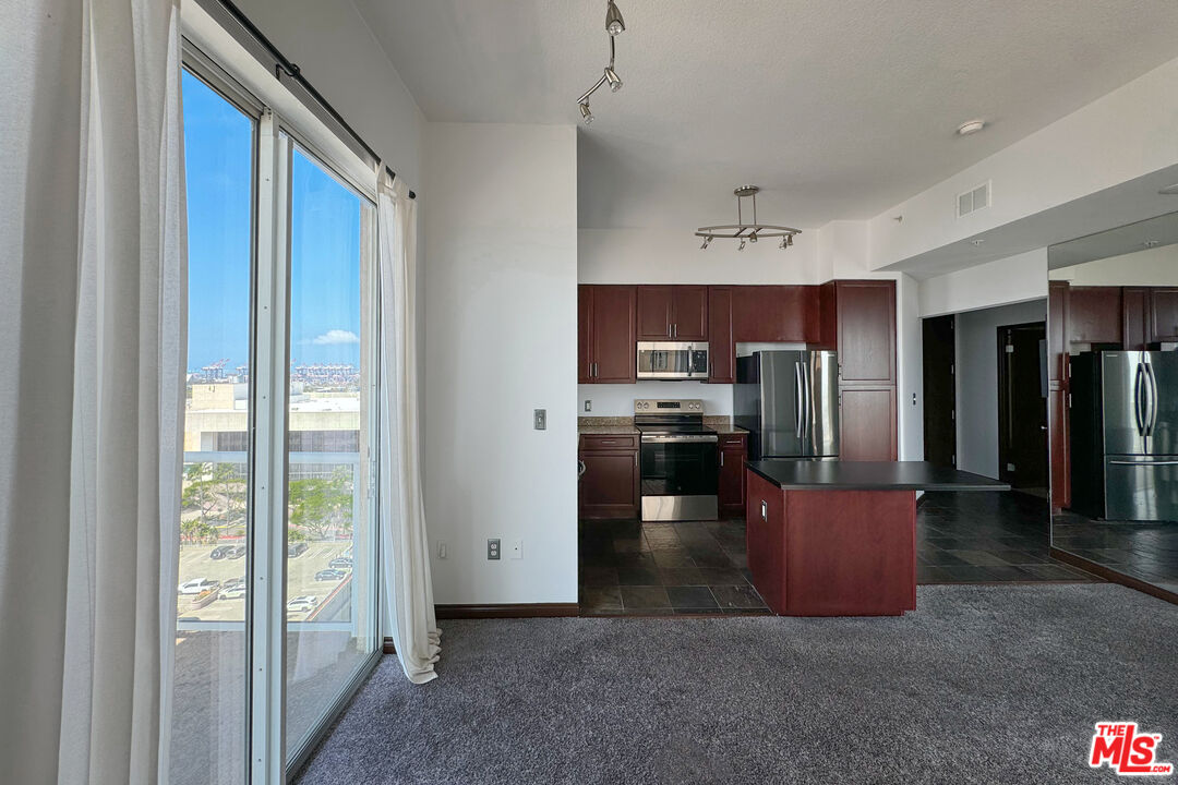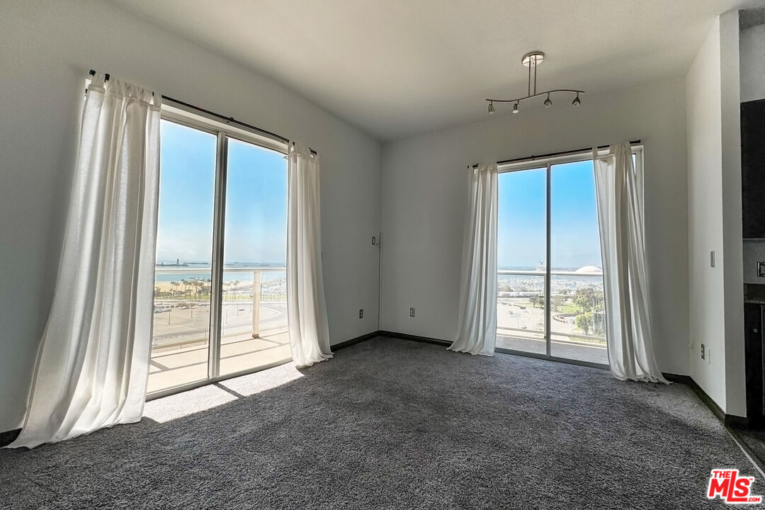 This unfurnished 1-bedroom, 1-bathroom apartment offers 600 sq ft of stylish, modern living in a high-rise that blends coastal charm with city convenience. Step out onto the balcony to take in sweeping views of the ocean, marina, and harbor just moments from Long Beach's lively waterfront. Inside, the bright living area is filled with natural light from large windows framing city and ocean vistas. The kitchen pairs dark wood cabinetry with stainless steel appliances and a breakfast bar for both function and style. The spacious bedroom features a mirrored closet and wide windows overlooking the water. The bathroom includes a bathtub/shower combo, round mirror, and hallway laundry for added ease. Building amenities complete the resort-like experience: a pool and hot tub with ocean views, a wooden sauna, and a full gym with cardio and weights. You'll also enjoy access to a modern lounge, a quiet work space, and your own private 1-car garage with built-in storage.Interested in this Listing?