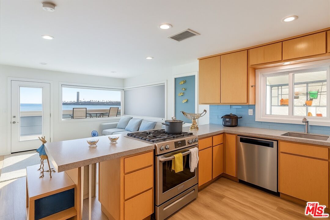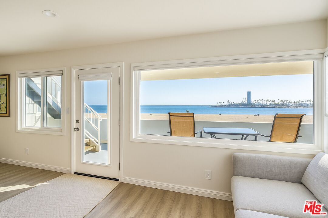 A rare opportunity nestled just steps from the sand at 26 5th Place on coveted Alamitos Beach, this bright 1-bedroom, 1-bathroom retreat offers 863 square feet of breezy coastal living. Airy and bright windows flood the open-concept living area with natural light and frame views of swaying palms and the Pacific beyond. A sleek, modern kitchen complete with quartz countertops, stainless steel appliances, and ample storage flows seamlessly into the living and dining space, making entertaining effortless. The spacious bedroom offers ample closets and storage and easy access to a spa-inspired bathroom, where a glass-enclosed shower and stone-topped vanity evoke seaside serenity. Step outside to your private balcony, ideal for morning coffee or sunset cocktails. Then wander down the gated path to the beach's golden sand. With community laundry, central heat, and one dedicated parking spot, comfort meets convenience at every turn. Experience laid-back Long Beach luxury in this turnkey ocean-view gem.