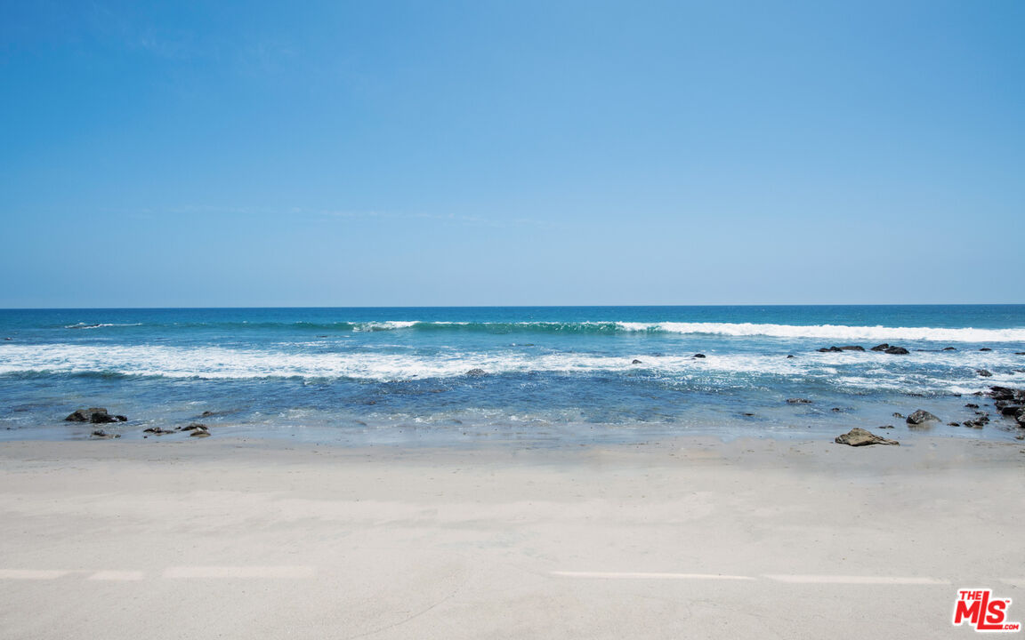 Here is the perfect beach getaway on coveted Malibu Road: skylights, picture windows, full-width deck, and steps to the sand. You'll find sunrise-to-sunset views from here to Catalina, plus great beach-home styling: plank and beam wood ceilings, Saltillo tile floors, and a bright, open layout. Escape, relax, and entertain in true indoor-outdoor Malibu style in this lovely single-level home. A gated courtyard entry offers tantalizing ocean views, and the front door opens to expansive vistas from the living/dining/kitchen great room and the deck just outside. Perfect for comfort and congenial gatherings, the space has a fireplace and a chandelier dining area. French doors open onto the wraparound oceanfront deck, which offers room for entertaining, lounging, and pergola-shaded al fresco dining. The kitchen is lovely and bright, with white tilework, brick detailing, superb appliances, and a huge picture window looking out at the ocean. The home's three bedrooms are light-filled and peaceful, with large windows. Additional features include central heating and air conditioning, an outdoor shower, and a two-car garage. Watch for dolphins, seabirds, and even whales from your deck, or step down to the sand for a morning or evening stroll. This is beachfront living at its best.Interested in this Listing?