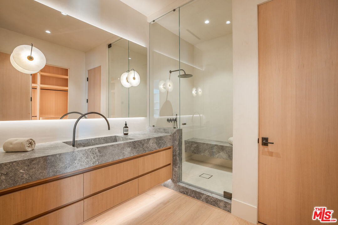 This 2022 estate, reimagined by renowned designer Malgosia Migdal and Fun-Bu Developers, is a single-level masterpiece offering 6,742 square feet of sophisticated living space on 1.55 private acres. Beyond the gates and the long driveway, find lush landscaping , a full tennis court and dual guest houses. Inside the four-bedroom main home, European plaster walls, French white oak floors and exquisite -designer lighting elevates every room. The living area features a box-beam ceiling, a fireplace and a wall of glass that opens to the outdoor entertaining area. The chef's kitchen boasts Miele appliances, leather-finished stone counters and custom rift-cut cabinetry. The primary suite stuns with a cove ceiling, ocean views, a fireplace, dual walk- in closets and a spa-like bath. Additional amenities include a theatre, a stunning pool and spa an outdoor kitchen and pizza oven. A lower-level fire pit and seating area is a serene-space to take in the panoramic ocean views amidst greenery.Interested in this Listing?