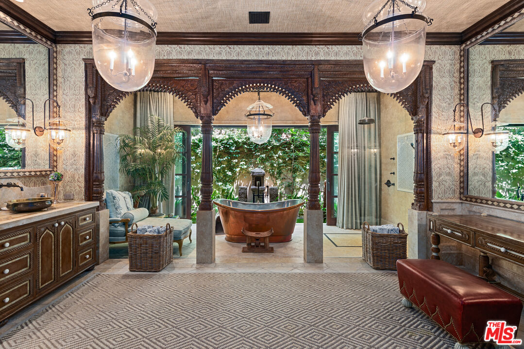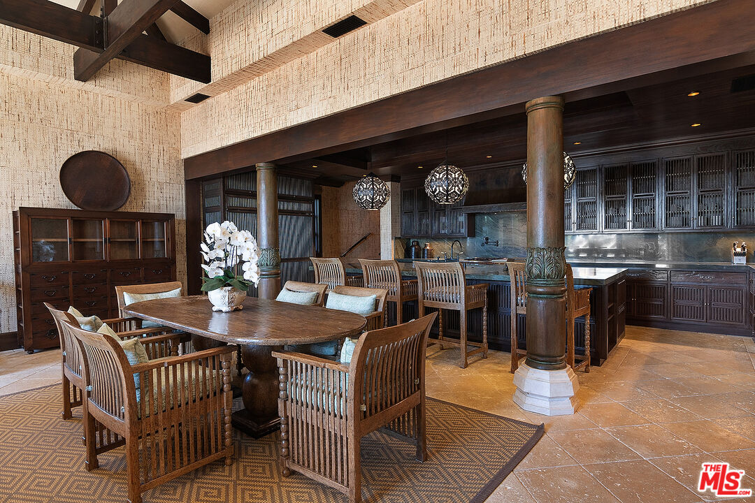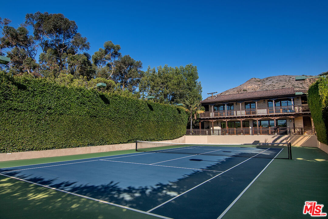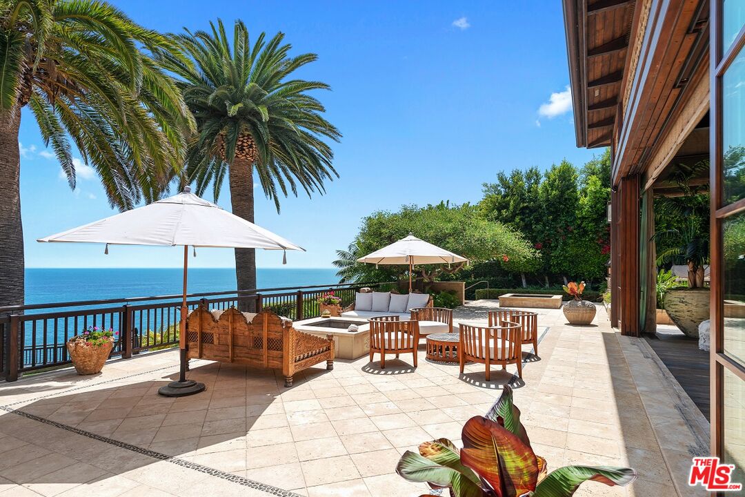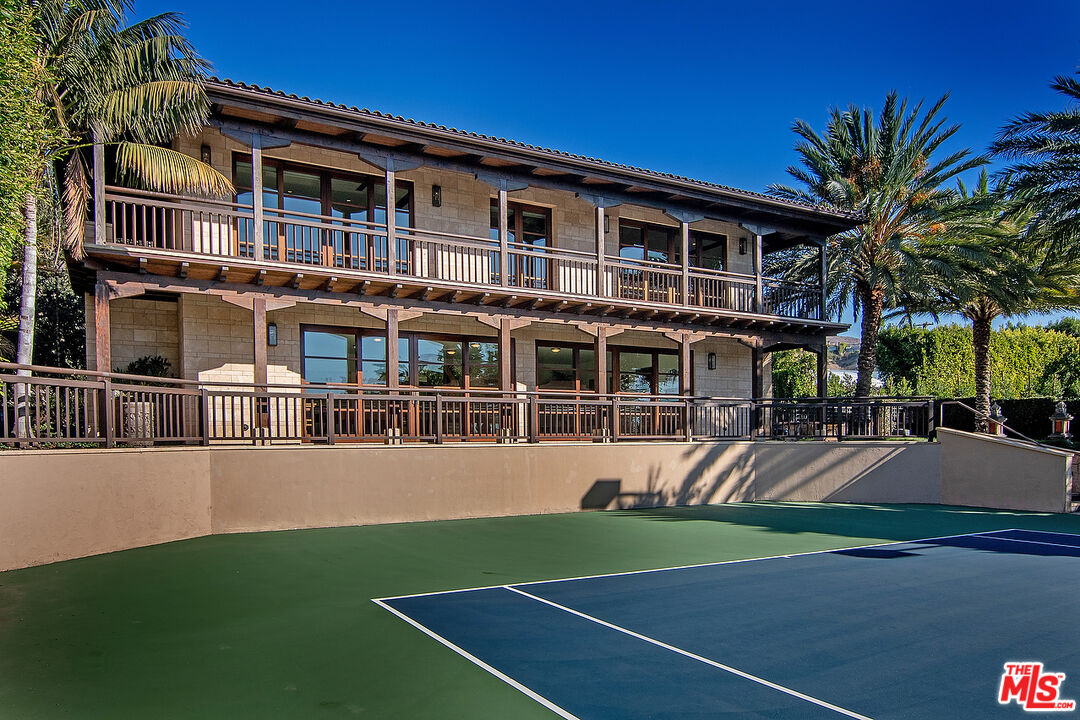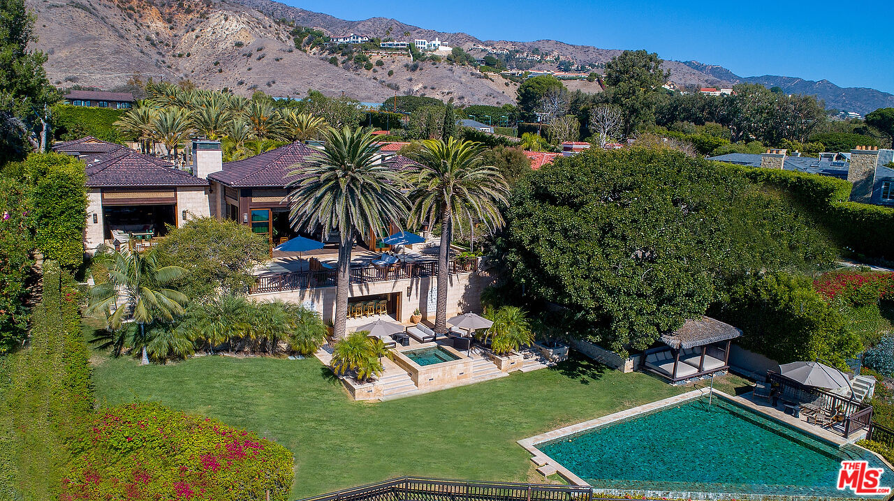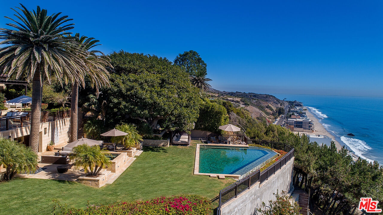 With breathtaking views, Bali-inspired design, and every contemporary comfort, this magnificent estate is a serene sanctuary for exquisite living and impressive entertaining. The private, gated property of over 1.2 acres extends from PCH to Malibu Road, perfectly landscaped and commanding expansive ocean views. A long palm-lined drive leads past a two-story, two-bedroom guesthouse, a lighted north-south tennis court and pavilion, and a fountain, waterfall, and gardens before arriving at the enormous motor court and four-car garage. A dramatic gateway and long, serene palm-lined reflecting pool lead between the wings of the U-shaped house to the gorgeous double-door entry. With interiors designed by Martyn Lawrence Bullard and stunning sight-lines to the ocean, the house is detailed with ornate wood carving, very tall beamed ceilings, wood and stone floors, and full-width exterior doors that vanish to offer seamless flow between indoors and out. The entry steps down to the formal living room, which includes a generous dining area, a pair of facing fireplaces, and a wall of glass that opens onto a roomy patio with a fireplace, stunning ocean view, and a nearby fountain and barbecue island. Adjoining the living room is a spectacular ocean-view great room that includes a family room with fireplace, dining area, and a gourmet kitchen with a huge stone-topped island with seating, deeply recessed tray ceilings, beautiful cabinetry, and a pantry. One wing of the house has two bedrooms and a laundry room. The other wing features a majestic ocean-view owner's retreat with high wood beamed ceilings, beautiful wall coverings, wood floors, and a wide glass doorway opening to a tranquil covered patio. A hallway leads to a luxurious bath, two very large closets/dressing areas, and, at the end of the hall, a resplendent Bali-inspired library/study with high coved ceilings, a wall of built-in book shelves and cabinets, a fireplace, and doors to the patio and to a private sitting area. The home's lower level features a party-perfect bar room highlighted with ornate metalwork that encloses a large wine storage area. The bar extends into a spacious tiered home projection theater. A long hallway leads to a second powder room, a changing room, and another bar, which opens to the lower patio, spa, sitting areas, and lawns, as well as the infinity ozone pool, patio, cabana, and private steps to Malibu Road and access to the beach/ocean. With Crestron electronics and full-house water filtration, this remarkable estate is a livable legacy.Interested in this Listing?