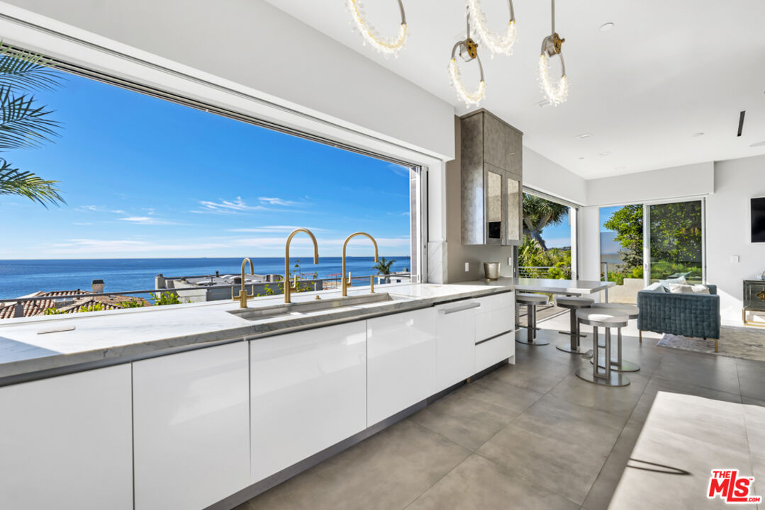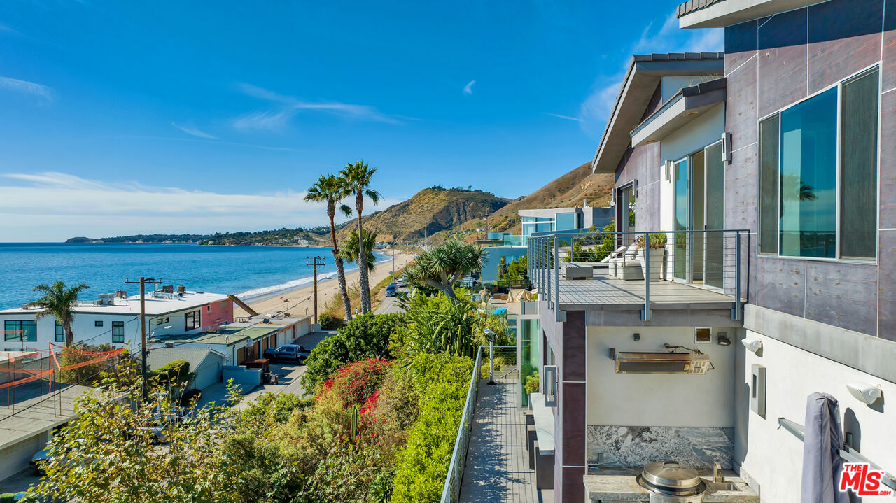 Available for sale or lease long term $30k/month, or summer $40k/month. Newly constructed Coastal beach home completed in 2020 with luxury upgrades & designer finishes. Stunning panoramic ocean and whitewater views overlooking Santa Monica Bay ( The Queens Necklace) Palos Verdes Peninsula & Catalina Island to the East and Point Dume to the West. This Malibu Road home gem, AKA (Bayshore Dr) sits on a private enclave consisting of only 13 homes with easy access to the beach. This developer's own weekend residence is available for sale or lease starting now. Features include a Chef's Kitchen w/Miele Appliances, 48" range w/ stainless steel hood, built-in combination steam oven, warming drawer, coffee maker, high gloss cabinets, pocket windows w/ serving bar & stools open from the kitchen looking out to this artistic view of Point Dume. Commercial grade glass Elevator, state-of-the-art movie theatre w/135' screen, Reclining Leather chairs, outdoor infinity glass pool/spa w/ fire-pit looking through the cascading waterfall. Built-in EVO for the professionals who love to cooke and grille. Crestron system set up for the techies, 2 car garage is finished for car collectors plus plenty of additional outside parking, built-in cabinets and storage area, refrigerator, security cameras. Newly installed wine and tasting room. jaw dropping sunrise and sunset views that you will want to experience every day. Close to the Country Mart, hiking trails tennis, surfing , famous Soho house, Nobu and all Malibu has to offer. Also includes solar panels.Interested in this Listing?