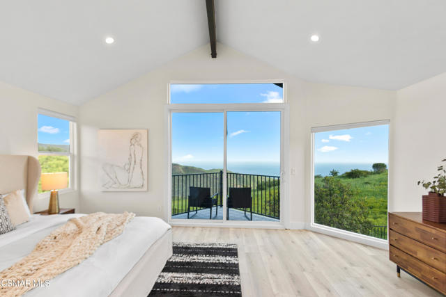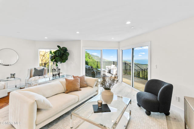 This exceptional Malibu mountain escape offers a tranquil sanctuary where modern comfort meets the beauty of nature. Nestled atop a scenic mountain, the one-of-a-kind home boasts breathtaking, unobstructed panoramic views of the Pacific Ocean, Santa Monica mountains, and lush surroundings, all framed by expansive windows that invite the outdoors in. The sale also includes the adjacent lot, offering flat usable space and endless possibilities - from a pool or guest house to a play area, garden, or additional parking. Upon entering the home, you're welcomed into a bright space bathed in natural light. The designer kitchen, featuring new cabinets, quartz countertops, and brand new Whirlpool stainless steel appliances, seamlessly transitions to a warm and inviting living area. Here, sweeping ocean views and a stunning custom wood accent bar create the perfect setting for relaxation and entertaining. Step through sliding glass doors onto an expansive deck where you can bask in the warm Malibu sun, listen to the birds in the rustling trees, and at dusk, watch the sky explode into sunset colors before stargazing in the crisp mountain air. On misty mornings, you may even find yourself immersed in a surreal cloudscape. Designed with a unique multi-level floor plan, the home offers a seamless yet distinct flow between living spaces. The third level features a primary bedroom, a striking hexagon-shaped office/bonus room, and two secondary bedrooms, all with stunning views from every window. The luxurious top-floor primary suite serves as a private retreat, complete with a spacious walk-in California Closet, a spa-like bathroom, and a private balcony offering prime, unobstructed ocean views. From here, step onto the rooftop deck, where 360-degree vistas of the ocean and mountains create a breathtaking backdrop. This home has been completely reimagined with top-to-bottom upgrades, making it feel brand new. Recent improvements include a new roof, fresh stucco, dual-pane windows and sliders, all new interior and exterior doors, and brand-new drywall with fresh paint throughout. The plumbing system has been entirely redone, including a new seepage pit, main line, drains, water lines, sinks, toilets, and fixtures. Electrical upgrades include a 220-amp main panel, new wiring and receptacles, and LED recessed lighting with dimmable features throughout for customizable ambiance. The garage is EV-charger ready with a 220V outlet. Comfort is ensured year-round with a new split HVAC system and a 50 gallon Bradford White electric water heater. A fire sprinkler system provides added safety. Additional upgrades include luxury vinyl flooring, custom railings, modern bathroom vanities with quartz countertops, and a laundry room featuring brand-new LG front-loading washer and dryer. Outdoors, enjoy drought-tolerant landscaping enhanced by resort-style lighting, new fencing, a spacious new deck, and updated concrete work. The garage is fully upgraded with a brand-new door, fresh epoxy flooring, and recessed lighting -- perfect for a clean, functional workspace. Thoughtfully designed by One Eleven Designs, this home is a rare gem that embodies modern luxury, the serenity of nature, and the essence of Malibu living.Interested in this Listing?