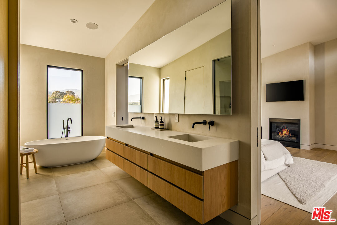 Unbeatable opportunity to own a brand-new modern home in Point Dume, complete with a coveted private beach key! Don't miss your chance to join one of Malibu's most desirable communities with exclusive access to Little Dume Beach. Built in 2022, this stunning contemporary estate offers a beautifully designed four-bedroom, four-bathroom main house, plus a separate one-bedroom guest apartment. Thoughtfully crafted with impeccable style and high-end finishes, the home seamlessly blends indoor and outdoor living, creating an ideal setting for both relaxation and entertaining. Step inside to be greeted by a sun-drenched foyer, soaring floor-to-ceiling windows, and elegant white oak floors. The open-concept layout flows effortlessly, connecting the chef's kitchen, spacious dining area, and dramatic double-height living room centered around a sleek gas fireplace. The kitchen is a dream for culinary enthusiasts, outfitted with top-of-the-line Thermador appliances, a wood-paneled automatic double-door refrigerator, a wine fridge, modern Pitt burners, and ample prep space for hosting. Outside, a private oasis awaits. Lounge by the sparkling pool, soak in the spa tub, or unwind on the LPE wood pool deck. Gather with friends around the sunken seating area and outdoor fireplace, or enjoy al fresco dining at the built-in grill and stone dining table. The first floor includes a stylish guest suite with an en-suite bath and direct access to the yard and pool. Upstairs, two additional guest bedrooms, each with a private bathroom and patio, share a cozy family room with a built-in study area boasting breathtaking mountain views. The upstairs patio and deck offer even more opportunities to take in stunning ocean vistas. The primary suite occupies its own private wing, featuring a spa-like bathroom with a soaking tub, steam shower, and dual sinks. A gas fireplace adds warmth to the space, while a spacious private deck overlooks the pool with glimpses of the ocean and coastline. For added flexibility, the detached guest apartment includes a living area, kitchenette, bathroom, and a loft-style bedroom, perfect for visiting guests or extended stays. A two-car garage and a generous motor court complete this incredible estate, offering ample parking and convenience. This is more than just a home, it's the ultimate expression of the Malibu lifestyle. Don't miss out on this rare chance to own a piece of paradise!