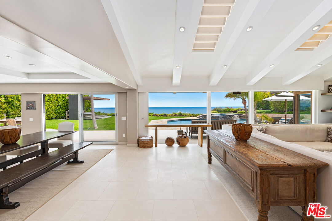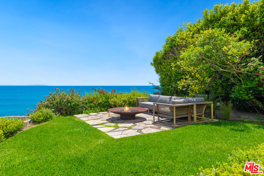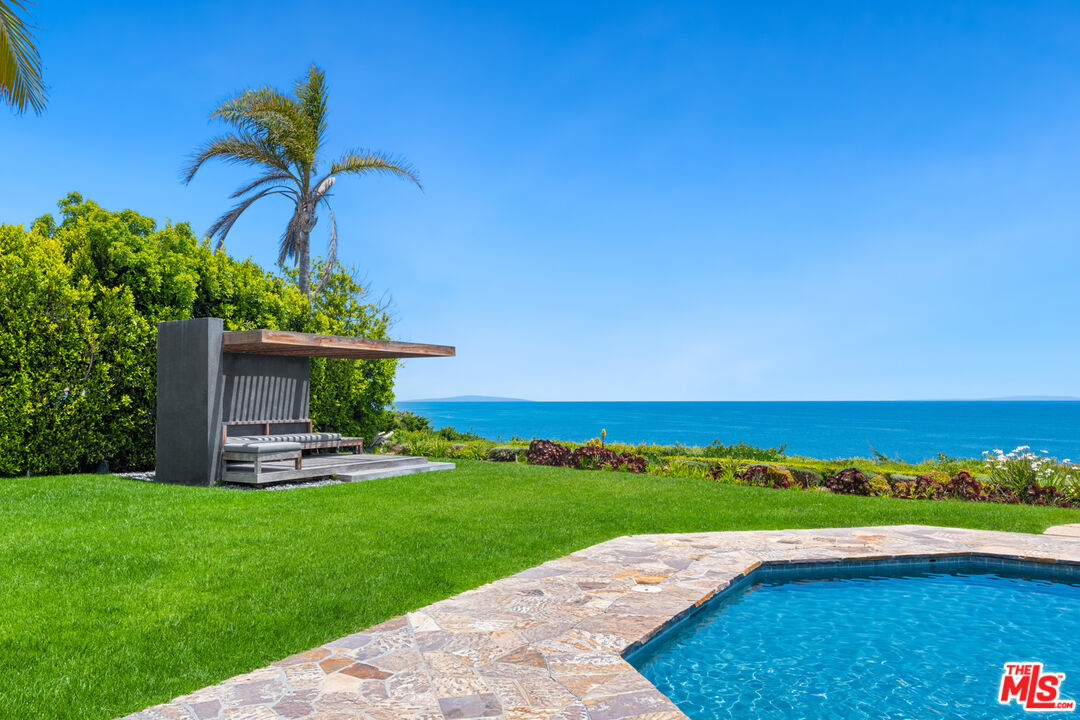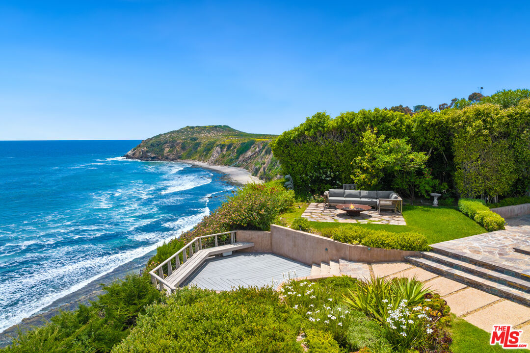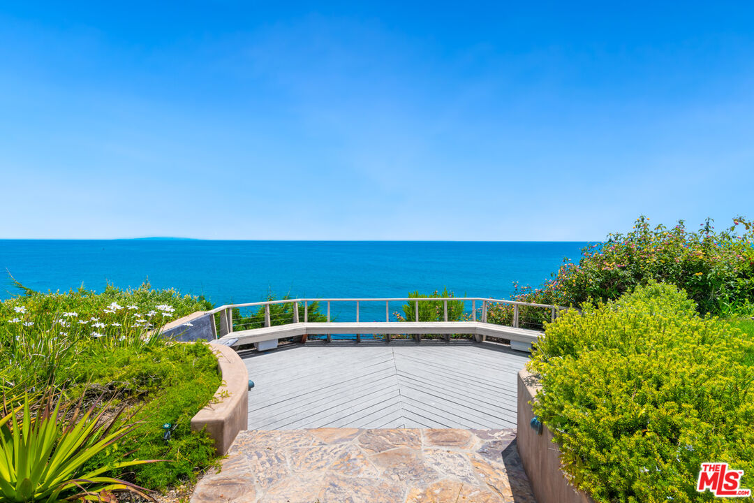 Exceptionally private and awash with natural light, this gated Point Dume blufftop estate provides over an acre of indoor-outdoor living with absolutely spectacular ocean, island, and Queen's Necklace views. Surrounded by expansive lawns and manicured landscaping, the single-level home has a large swimming pool and a huge entertaining deck overlooking the shoreline and the sea. Gracious, open interiors with high ceilings, many skylights, generous built-ins, picture windows, and wraparound walls of glass offer wonderful sight lines to the pool, gardens, and views. Furnished for elegant comfort, the main living area flows seamlessly between the large living room with a fireplace, the dining area with a tray ceiling and service bar, the spacious media room/library with a wall of book shelves, and the marvelous chef's kitchen. Equipped with top-quality appliances and an island with bar seating, the kitchen enjoys backyard, pool, and ocean views, and opens to the patio for poolside al-fresco dining. The home's four bedrooms include a private guest suite with kitchenette and bath. The primary suite is a tranquil, ocean-view retreat with a walk-in closet and an amazing spa-like bath complete with skylights, gorgeous stonework, a spectacular garden-view sauna, and enormous windows facing the pool and ocean views. In addition to the huge front lawn, with a garden bench and swing-set, the home's resort-like backyard is the perfect setting for large and small gatherings, dining, recreation, and undisturbed relaxation. With its amazing views, the backyard centers around the large waterfall pool and spa with a flagstone pool deck. There is a partially covered patio lounging area, a pergola with built-in couches, a step-up seating area with a fire pit, a barbecue, an outdoor shower, and a stunning blufftop entertaining deck with benches and views, views, views. Additional features include a mud room, a two-car garage with a washer and dryer plus an extra refrigerator and freezer, guest parking for six cars, and lifestyle amenities such as a full-house sound system and camera security, plus a coveted beach key.Interested in this Listing?