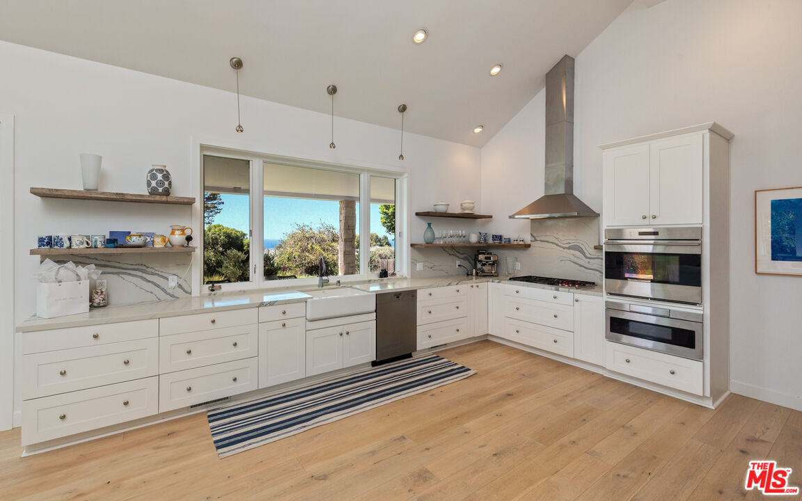 Located on approximately 1.2 landscaped acres in Malibu Park, is a beautiful ocean view modern farmhouse cottage. a gated driveway and lush landscaping provides security and privacy. The main house was extensively remodeled in 2018 with White Oak flooring, top of the line appliances including a Wolf stovetop, Sub Zero refrigerator, and a Miele dishwasher. The main house has two bedrooms and two bathrooms. There is a separate guesthouse that includes another bedroom and bathroom. In addition there is a detached studio. This unique property has extensive ocean views with peeks of white water. Beautifully landscaped with lawns and gardens. Also included is a fire pit to enjoy the night air along with a jetted hot tub, both with amazing ocean views. The 50 ft long covered deck provides a great place to lounge and dine year round. Home has had fire hardening features added to include Metal roofing, Concrete siding, dual pane tempered glass windows, ember resistant vents, and non combustible gravel and stone patio areas. Walking distance to Malibu High School and Zuma Beach make this a very desirable location.Interested in this Listing?