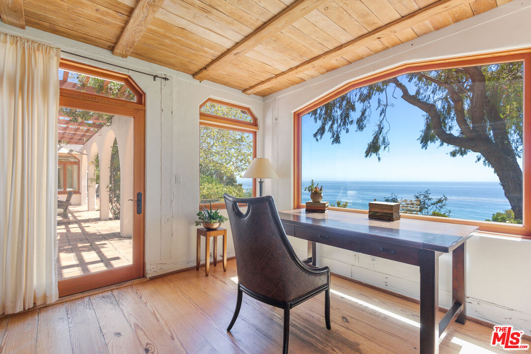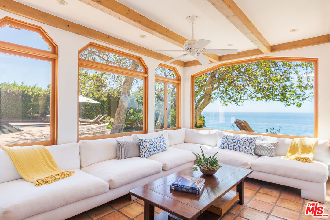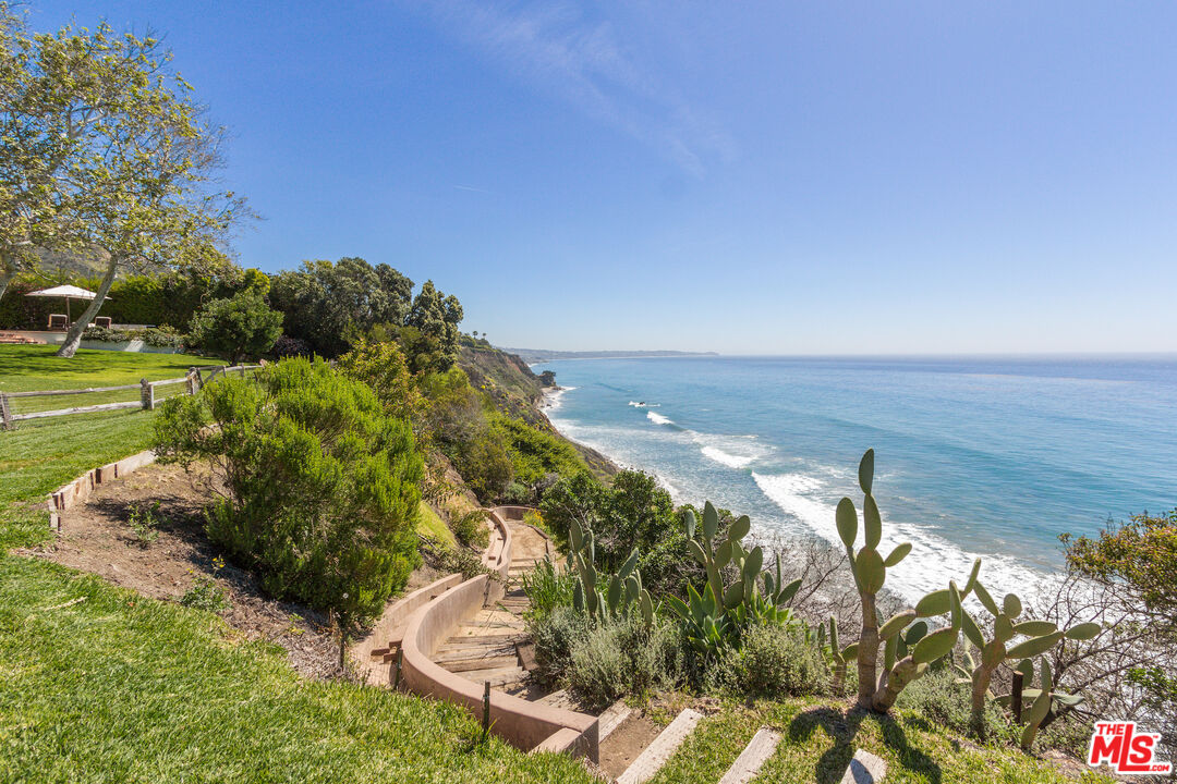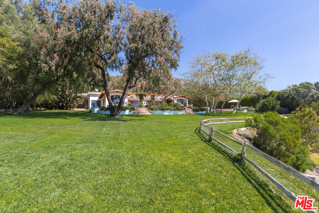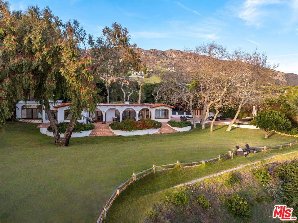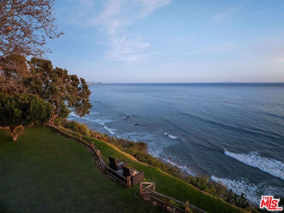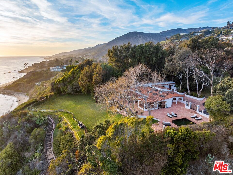 Presenting one of the largest and most impressive oceanfront parcels ever offered in Malibu, this sprawling, mostly flat 2.6-acre estate offers unparalleled grandeur, privacy, and natural beauty. Majestic views stretch across Point Dume, Palos Verdes, distant islands, and the shimmering coastline, framed by mature trees and meticulously manicured lawns that capture endless sunsets. Nestled on the serene Encinal Bluff, this rare parcel boasts exclusive beach access down a private stairway and over 75 feet of lush, grassy oceanfront lawn, a perfect blend of seclusion and coastal splendor. Included are fully approved City of Malibu permits and architectural plans by renowned designer Richard Landry for a new 7,912-square-foot, five-bedroom, seven-bath estate. The existing residence, a quintessential California Spanish-style masterpiece, sits at the end of a long, tree-lined driveway, exuding timeless elegance. Designed for seamless indoor-outdoor living, this single-level home features soaring ceilings with exposed beams, expansive windows, Saltillo tile, hardwood floors, exquisite cabinetry, and signature Malibu tile accents. The main house includes four bedrooms, highlighted by a luxurious primary suite with its own fireplace, walk-in closet, beautifully tiled bath, and private backyard entry. A separate guest house, thoughtfully designed with three bedrooms, two-and-a-half baths, a living room, dining area, kitchen, and laundry, adds versatility and comfort. This iconic property stands as one of Western Malibu's most coveted treasures, blending rare scale, architectural pedigree, and an unrivaled coastal setting.Interested in this Listing?