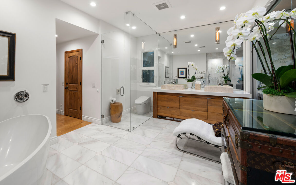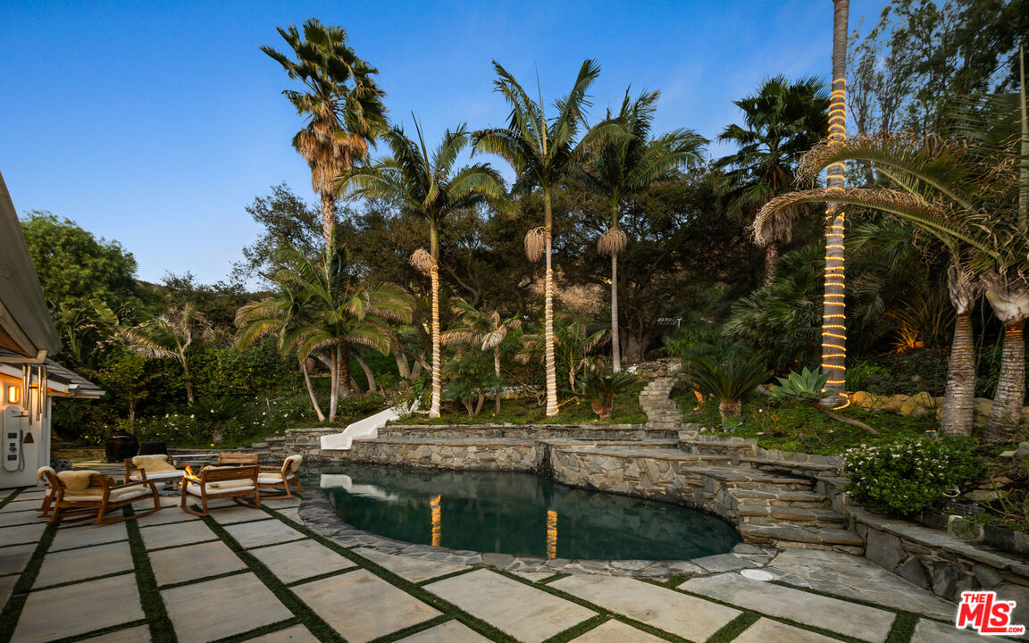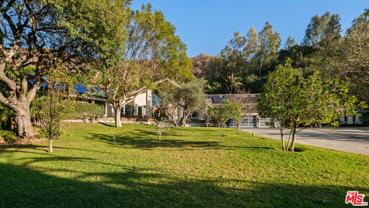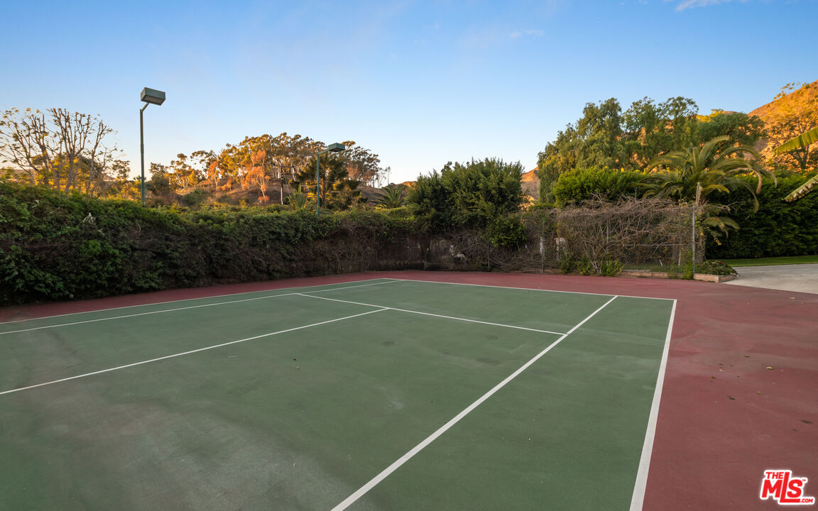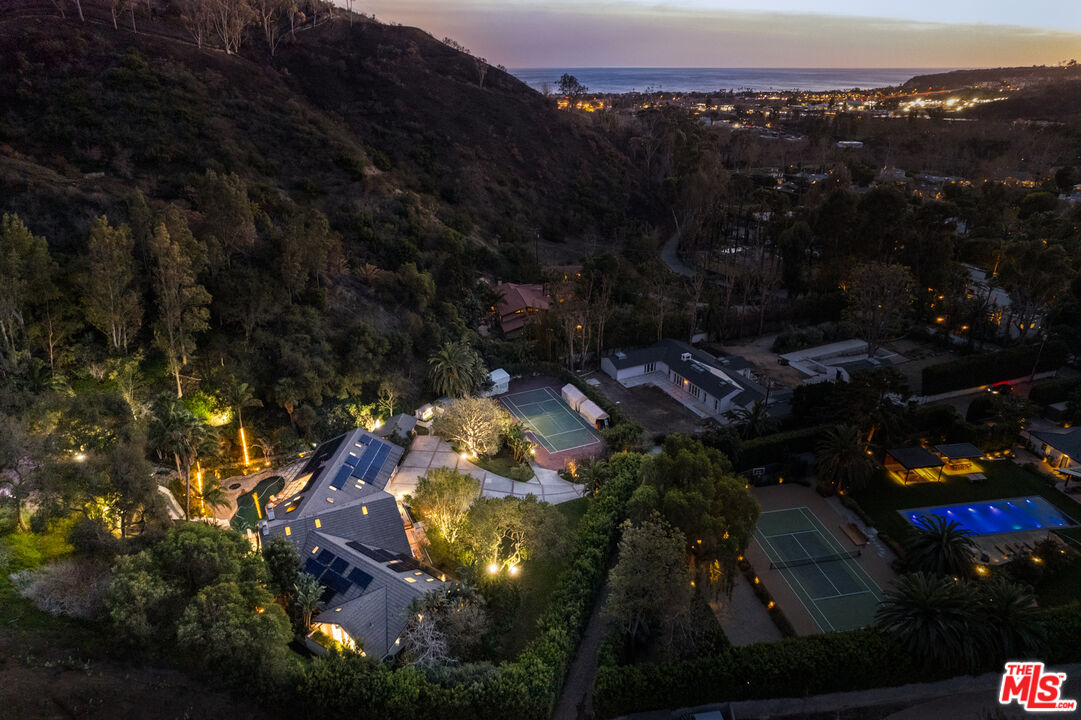 Tucked away in the exclusive, gated Serra Retreat of Malibu, this exceptional single-story estate offers the perfect blend of luxury, sustainability, and privacy. Completely remodeled with energy efficiency in mind, the home is powered by solar energy, equipped with two Tesla chargers and backup batteries, and set on approximately 2.5 acres of beautifully landscaped grounds. Designed for both relaxation and entertainment, the property features a stunning pool with mood lighting, a spa, a waterslide, and a professionally lit north/south tennis court. A separate guest suite adds to the estate's versatility, while a beautifully designed wine cellar enhances the home's sophisticated charm. The lush, park-like setting is illuminated for evening ambiance and boasts a private well for irrigation, nurturing more than 50 fruit trees, 25 palm trees, and an array of tiered exotic gardens and meandering walking paths. Inside, natural light floods the home through numerous skylights, highlighting the newly installed roof, windows, and LED lighting. Every bedroom enjoys direct access to the pool or gardens, with private patios or fire pits enhancing the indoor-outdoor experience. The gourmet chef's kitchen is a showstopper, featuring a reclaimed wood island, an 8-burner Copper Blue Star range, a glass-front fruit and vegetable refrigerator, dual dishwashers, and sleek Caesarstone countertops. A stylish powder room boasts a one-of-a-kind petrified wood sink, while the serene primary suite offers two custom closets and a sliding barn door leading to a private office. This gated sanctuary is a rare offering privacy, sustainability, and resort-like living in one of the area's most coveted enclaves.Interested in this Listing?