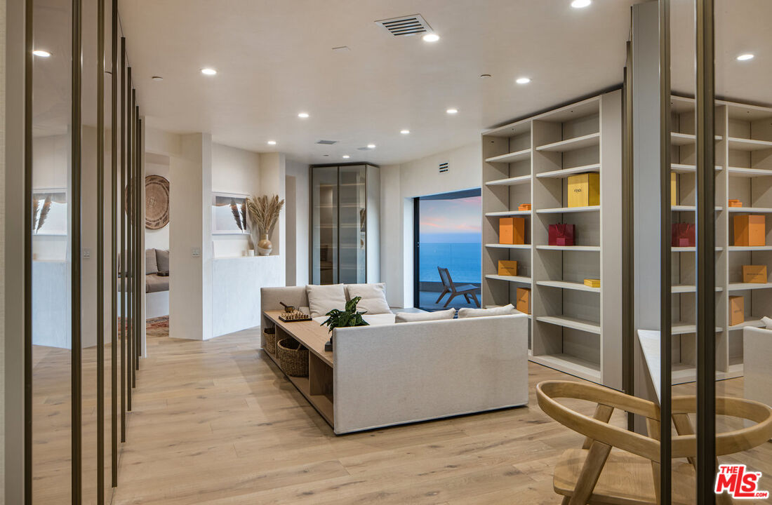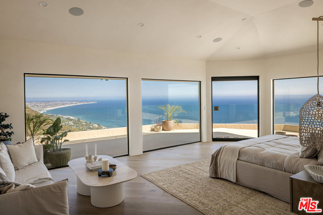Perched majestically on an ultra-private Malibu blufftop peninsula, this newly renovated masterpiece offers a breathtaking panorama of the coastline, stretching from the iconic Point Dume to the serene shores of Point Mugu. Encompassing over 9,000 square feet of bespoke living space, this 6-bedroom, 6-bathroom sanctuary redefines luxury, combining artistic elegance with architectural brilliance in every meticulously crafted detail. As you step inside, you're greeted by an atmosphere of refined simplicity, where custom warm white finishes harmonize with exotic hardwoods, reflecting the natural light that dances off the Santa Monica Mountains and the vast Pacific Ocean. Each room is a canvas, meticulously curated to evoke a sense of tranquility and sophistication, with expansive windows that frame the endless ocean vistas. Entertainment and relaxation are seamlessly woven into the fabric of this estate. The sprawling deck invites you to bask in the sun-drenched glow beside the shimmering pool, or to rejuvenate in the luxurious infrared or Swedish sauna, followed by a plunge into the refrigerated Cold Plunge Tub. Culinary delights await at the outdoor wood-burning or gas pizza oven, perfect for alfresco dining under the stars, while multiple firepits provide cozy gathering spots to savor the breathtaking sunsets over Malibu's enchanted coastline. Indulge in cinematic excellence within the state-of-the-art home theatre, where immersive entertainment experiences are designed for you and your guests. The dedicated game room, complete with options for ping pong, backgammon, and poker, creates a playful ambiance where memories are made - all within steps of the poolside paradise. Ascend to the entire top floor, a 4,000-square-foot primary suite that is nothing short of regal. This private haven exudes comfort and style, featuring a spa-inspired ensuite bath with a large steam shower, hair washing and makeup stations, and awe-inspiring ocean views. Greet the day on your expansive wraparound deck, lounging on a deep sofa beside a fire pit, coffee in hand, as the sun rises over the horizon. As evening falls, retreat to the adjacent closet lounge, where you can sip whiskey or tequila by the fire while watching the sun set in a blaze of color. The master suite also includes a pajama lounge, perfect for family movie nights, and a vast ocean-view gym where you can stay active in luxury. For those needing a tranquil workspace, the panoramic glass office and lounge provide a serene environment for both creativity and productivity. This primary floor experience is truly fit for royalty, offering a lifestyle of unparalleled grandeur and comfort. Privacy reigns supreme in this exclusive gated estate, where serenity and seclusion are guaranteed. With no neighbors within a five-iron's distance, you can enjoy absolute peace, yet remain just minutes from the conveniences of Vintage Market, Malibu Brew Pub, Starbucks, and the pristine sands of the Malibu beaches. Every facet of this residence is designed to elevate your lifestyle, offering a blend of entertainment, relaxation, and coastal elegance that knows no bounds. Experience the pinnacle of Malibu living in this extraordinary sanctuary, where luxury is not just a promise but a reality, and every moment is a celebration of the sublime.