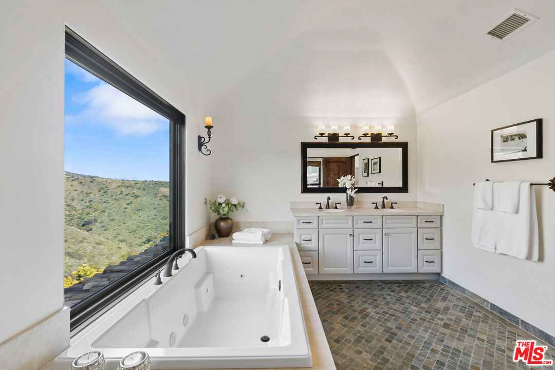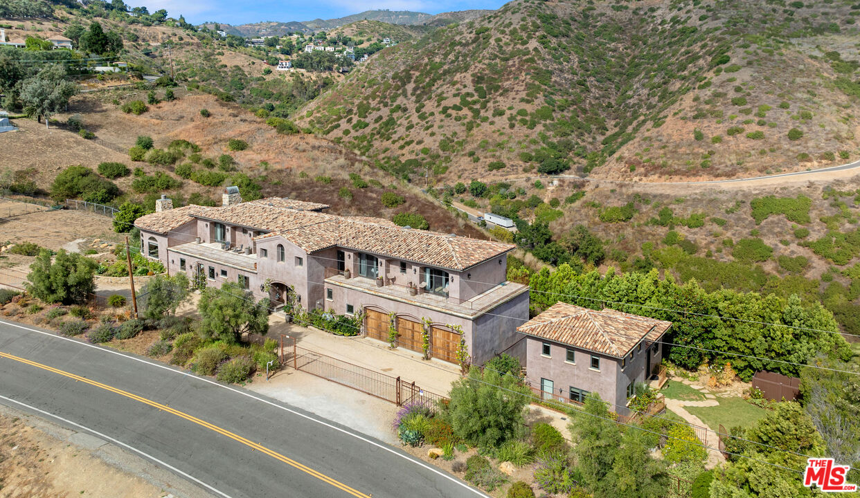 A private Malibu Tuscan estate on over five acres, 4800 Latigo Canyon Road features spectacular whitewater ocean, mountain, and canyon views and gorgeous architecture. This 8,558 square foot, five-bedroom main home offers travertine and alder floors and a chef's kitchen with a Wolf range, double ovens, and a large center island opening to the family room. Enjoy the formal living room with a fireplace and magnificent views of Point Dume. The primary suite includes an expansive balcony, double walk-in closets, a spa tub, and an oversized glass mosaic-tiled shower. Opportunities for recreation and leisure abound with a spacious gym, theater room, detached 2 bed 2 bath guest house, infinity pool, and spa. A three-car garage offers convenience and possibilities for further development on the grounds are endless with room for a tennis court, orchard, vineyard or putting green. Just moments away from the beach, enjoy a Malibu lifestyle of beauty within this unique retreat.Interested in this Listing?