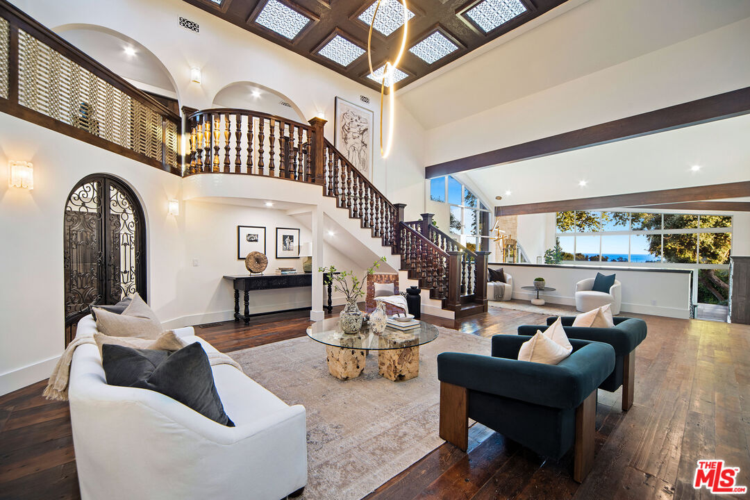 A magnificent gated estate, nestled in one of Malibu's most sought-after beachside neighborhoods, Ramirez Canyon. Located just moments from the renowned Paradise Cove Beach, this home sits on a sprawling one-acre lot surrounded by mature oak groves and tranquil creeks, offering an idyllic blend of privacy and natural beauty. Behind the secondary private property gates, you'll find a haven of expansive open spaces designed for both relaxation and entertaining. The property features lush, flat grassy areas and multiple entertaining patios and ocean views. This elegant residence encompasses 4 bedrooms and 4.5 bathrooms, with seamless indoor-outdoor flow that highlights several vistas and is flooded with natural light throughout the day. The grand entrance sets the tone for a sophisticated living experience, while the open-concept living room, family room, and kitchen offer impressive high ceilings and floor-to-ceiling windows that frame the ocean and landscaped surroundings. The well-appointed kitchen and adjacent family room invite effortless entertaining, while the extensive patios provide a perfect setting for outdoor gatherings or serene relaxation. A large motor court driveway accommodates ample guest parking, complemented by an attached 2-car garage for added convenience. Enjoy exclusive access to Paradise Cove Beach with a private "parking pass" option, adding a touch of convenience to your coastal lifestyle. Embrace the epitome of coastal elegance and privacy with this exceptional Malibu estate where luxury meets nature in perfect harmony.Interested in this Listing?