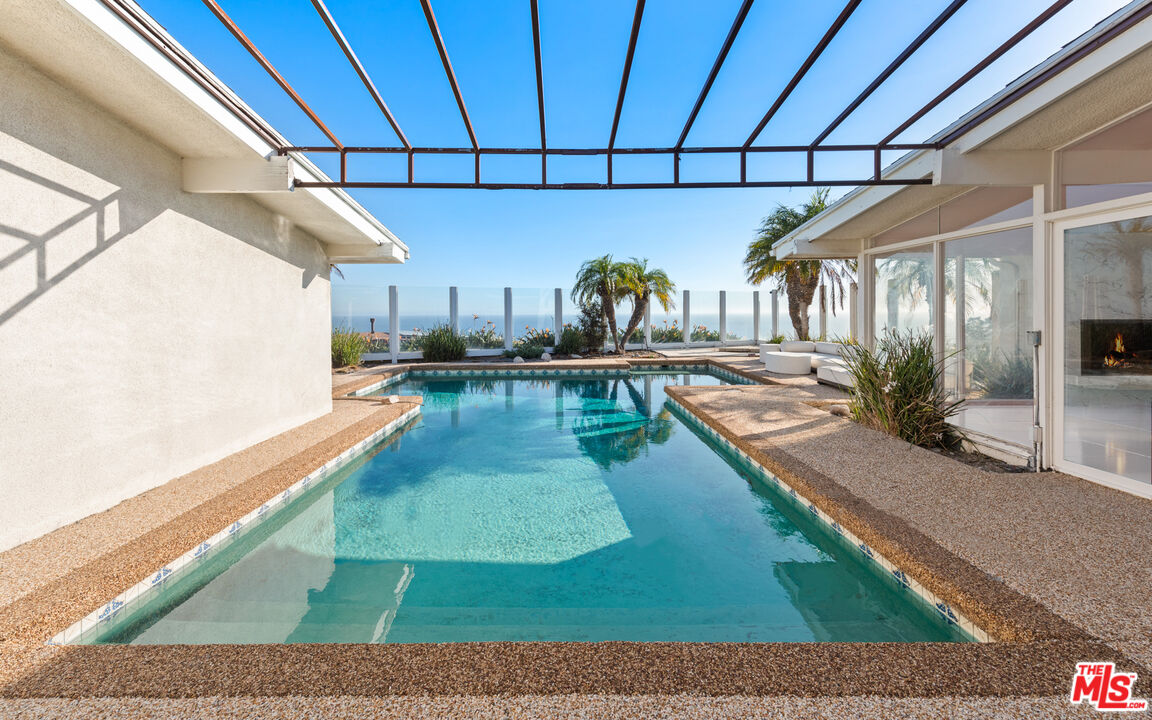 The perfect opportunity to own this ocean view Malibu mid-century coastal retreat situated just a shell's throw from Beach Beach and Zuma beach. The light at PCH and Trancas located just minutes from the home transports you to two of the best beaches in southern California. Complete the current remodel to achieve a luxurious modern residence with panoramic ocean and coastline views. There has been a complete transformation underway on the kitchen, flooring, bathrooms and cabinetry throughout elevating the mid-century design to a new level of luxury. Sparkling white tile floors mirror the whitewater of the ocean waves. The home showcases a luxurious modern residence with expansive glass walls focused on the sweeping views. The residence includes four bedrooms, three and a half bathrooms with an additional office or bonus room with courtyard entry. The ocean facing residence features a large pool for lounging, dining and enjoying the sunsets. Pack your putter for the rear yard putting green. Additional amenities include access to the private Malibu West Beach Club offering Broad Beach access, tennis courts, a clubhouse, and social programs. Conveniently located near the Trancas Canyon Park and Trancas Village featuring Trancas Market, popular restaurants, Starbucks, a surf shop and more local shops. This home truly captures the essence of the Malibu lifestyle.Interested in this Listing?