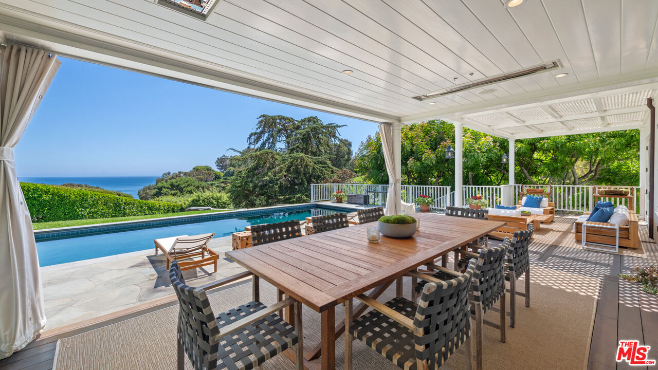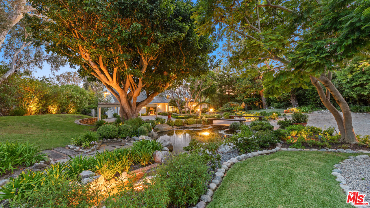 Nestled at the pinnacle of Point Dume's most coveted street lies this extraordinary private estate. Secluded behind gates, atop a majestic ocean bluff, architect Peter Choate's masterful design reveals a seven-bedroom, six-bathroom residence on 1.5+ acres. With pristine beauty this unparalleled sanctuary boasts orchards, gardens, a pool, and a private door to exclusive Little Dume Beach Access. Upon arrival, guests are greeted by majestic coral trees and cascading bougainvillea leading to the 100-foot driveway, lined with mature eucalyptus trees and pots of illuminated white roses, with a bridge over babbling brooks and serene ponds. The farmhouse-inspired facade in fresh white, complemented by a slate tile roof and copper accents, exudes elegance. Inside, panoramic views of the ocean, Catalina Island, and lush orchards captivate. Oak wood floors and French doors enhance the seamless indoor-outdoor lifestyle. The chef's kitchen dazzles with white cabinetry, a Wolf six-burner range, Sub-Zero refrigerator, wine refrigerator, and honed Calcutta marble countertops. Nautical-inspired brass fixtures illuminate the space, complementing a charming eat-in nook with a curved built-in bench. The gracious living room features a wood-burning fireplace and beamed ceilings, opening to an outdoor paradise. Manicured lawns, specimen trees, and landscaped orchards surround a pool, a bluestone gas firepit, with ocean-view decks that provide an idyllic setting for entertaining. Upstairs, the tranquil primary suite boasts dramatic ocean views, 11-foot ceilings with wood beams, and a gas fireplace. Four additional bedrooms offer unique features such as Juliet balconies and dormer windows, each capturing breathtaking vistas. This estate epitomizes the coveted Point Dume lifestyle, blending unparalleled luxury with natural beauty and exclusive amenities offering a rare opportunity to embrace coastal living at its finest. Additional highlights include a laundry room, guest suites with garden views, a sunlit conservatory and property generator. This rare wonderland promises an unparalleled Malibu experience.Interested in this Listing?