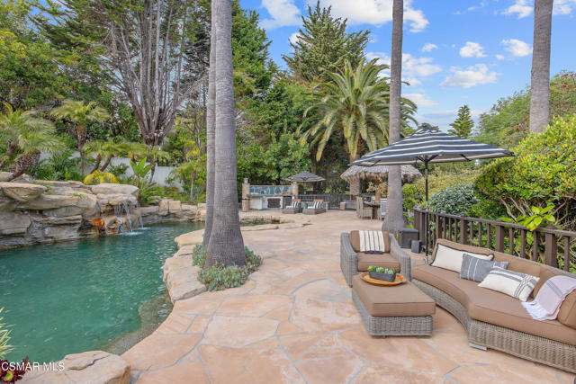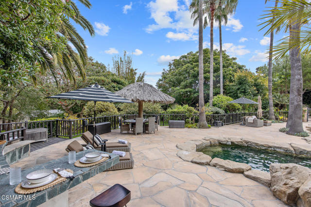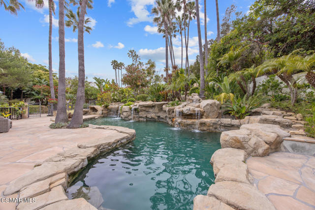 Welcome to this exquisite Malibu estate, a private retreat featuring 3 spacious bedrooms and 5 luxurious baths. Set behind a gated circular driveway and surrounded by over 40 majestic palm trees, the home offers an unparalleled sense of privacy and natural beauty.Inside, gorgeous hardwood floors flow throughout an open-concept layout. The gourmet kitchen is a chef's dream, complete with granite countertops, a central island with seating, and high-end appliances. The large family room, anchored by a cozy fireplace, seamlessly connects to the formal dining area--perfect for both casual and elegant gatherings.Custom folding doors open to an expansive patio, ideal for outdoor entertaining in a lush, serene setting. The home also includes a dedicated office and a separate library with built-in bookshelves, providing refined spaces for work or reading.The private primary suite is a true retreat, featuring French doors that lead to the patio, a generous walk-in closet, and a spa-inspired bathroom. Relax in the marble steam shower or enjoy the dual vanities designed for both luxury and function.A rare find in Malibu, this estate combines elegance, comfort, and exceptional outdoor living. Nestled in the heart of Malibu's coveted Point Dume enclave, this breathtaking single-story estate sits on 1.15 acres of impeccably landscaped grounds, offering the ultimate blend of luxury, privacy, and coastal charm. Open-concept layout with vaulted ceilings, walls of glass, and seamless indoor-outdoor flow. Elegant finishes, serene, light-filled living spaces create a warm and sophisticated atmosphere throughout. Every room is designed to capture natural light and maximize the stunning views of the surrounding lush gardens.The property's exotic yard feels like a private tropical resort, with swaying palm trees, cascading waterfalls, and tranquil pathways winding through vibrant landscaping. A sparkling pool and spa take center stage, surrounded by inviting lounge areas and an outdoor kitchen perfect for entertaining under the stars. A detached guest house offers luxurious accommodations for visitors or a private office or studio, blending harmoniously into the verdant setting. Whether you're hosting gatherings or enjoying a quiet morning coffee by the pool, the backyard is a paradise of peace and beauty.Just a short walk away, the iconic Big Dume and Westward Beach invites you to experience the best of Malibu's coastline, from surf to sand, tide pools to trails. The home's location on the bluff ensures easy access to world-class natural beauty, while maintaining a sense of secluded serenity. Award winning Public Malibu Elementary school is one block away. California distinguished Public Malibu High school and Middle school have been beautifully renovated and are less than 3 miles away, with bus service. Shopping and restaurants are less than a mile away. This rare Point Dume offering combines timeless design with resort-style amenities in one of California's most desirable neighborhoods, making it a true Malibu gem.Interested in this Listing?