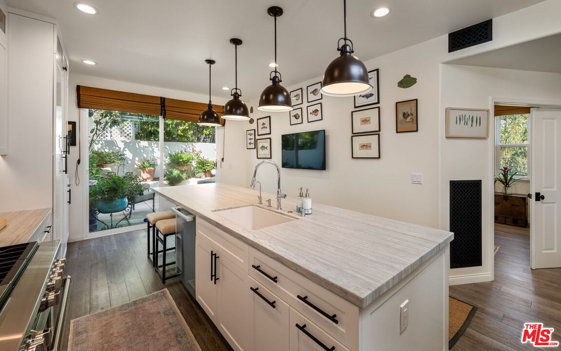 This exquisite, recently updated end-unit three-bedroom residence sits on one of the best locations in the desirable Pointe gated community. The very special home, which is also available furnished or partially furnished, has ocean and Queen's Necklace views and incredible expansive vistas over an open lot next door. Southern exposure and large windows provide natural light throughout, and there are multiple outdoor spaces, including a tranquil, oversized patio with lush foliage. On the first level, a cozy living room has a fireplace and ocean views, and there is a separate dining area perfect for entertaining. An expansive gourmet kitchen opens to the romantic patio and features a Wolf gas range, Sub-Zero built-in refrigerator, Miele dishwasher, and custom lighting. The first-floor guest suite has its own bath. There are two bedrooms upstairs, including a primary suite with a vaulted ceiling, spa-like bath and a private balcony with an ocean view. There is also a sizable secondary bedroom suite with a balcony. Additional features include a home battery backup system with portable solar panels, multiple storage areas, a large utility/laundry room, and a private two car garage. One of Malibu's most desirable secure communities, The Pointe features a community pool, spa, gym, and tennis court (with pickleball lines).Interested in this Listing?