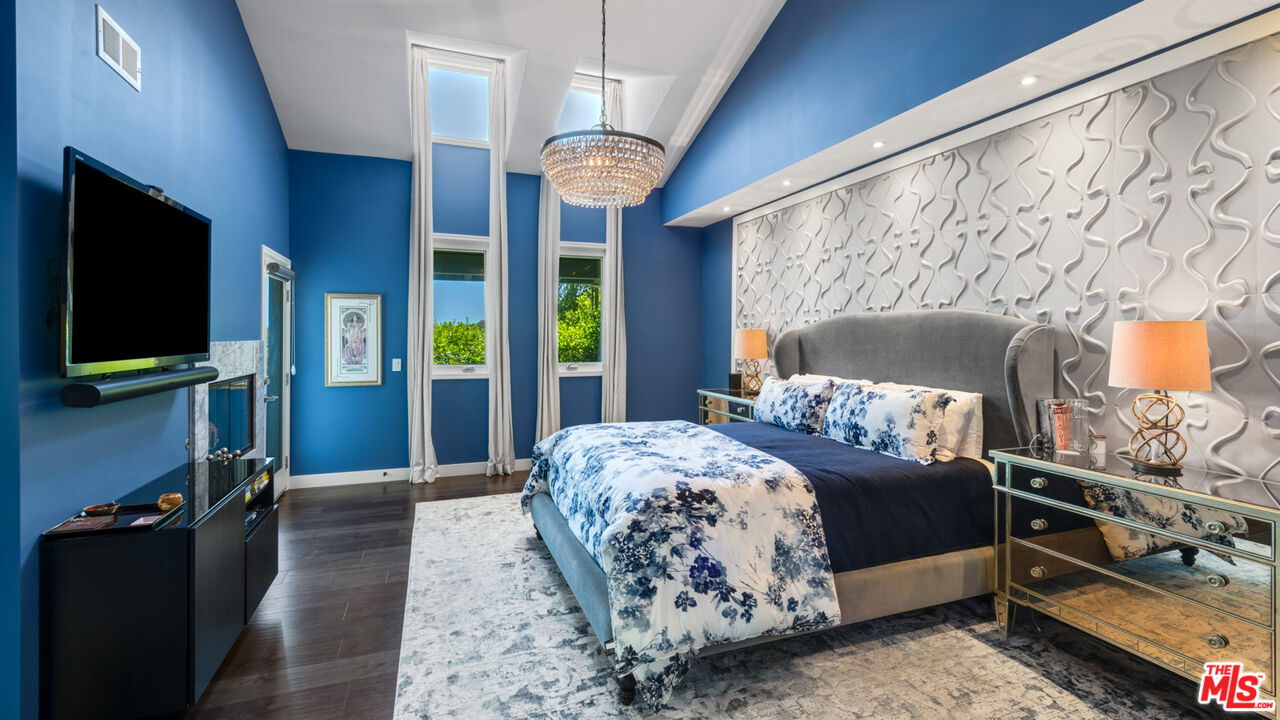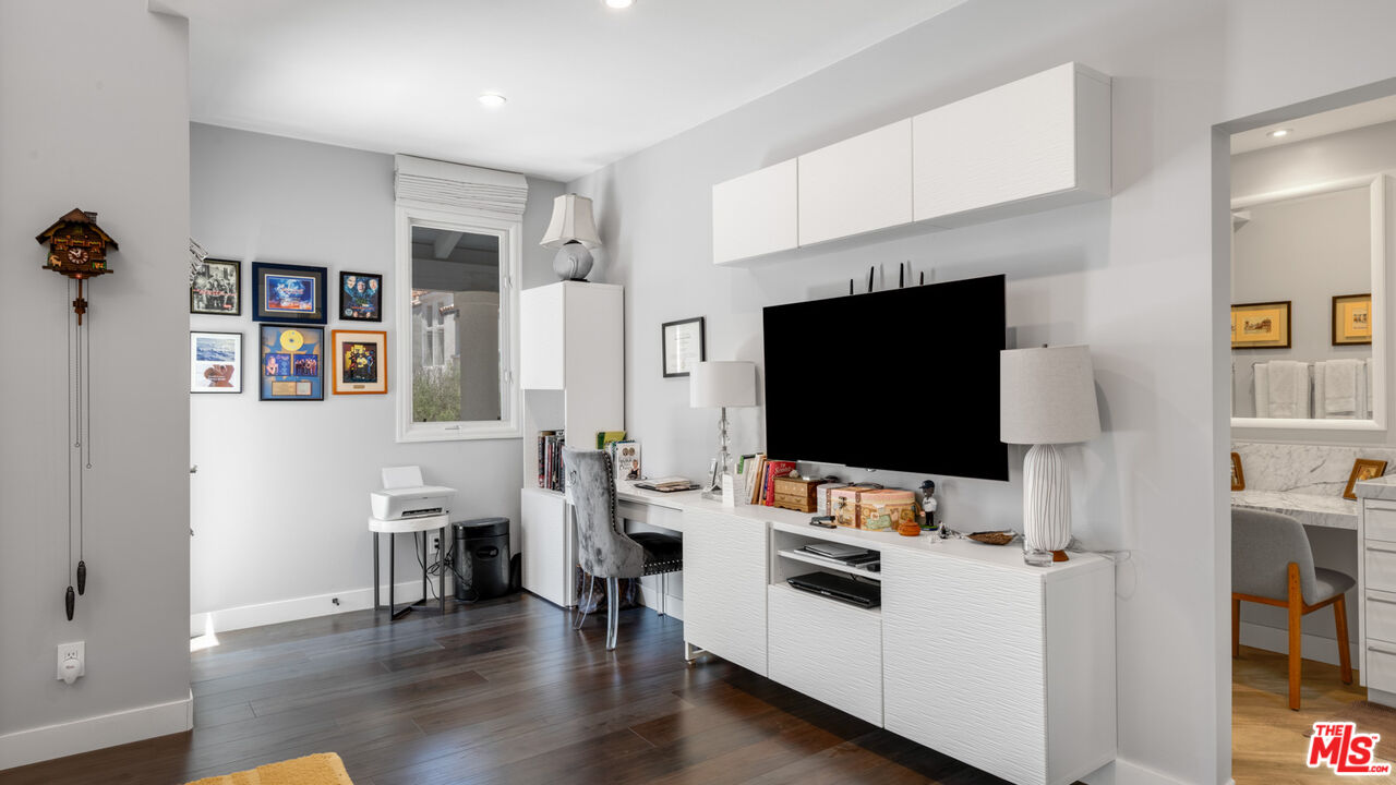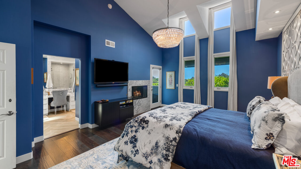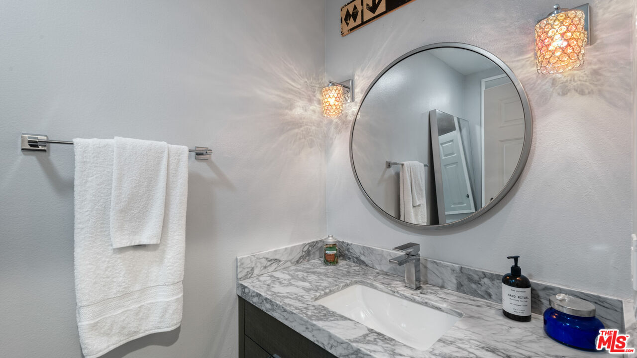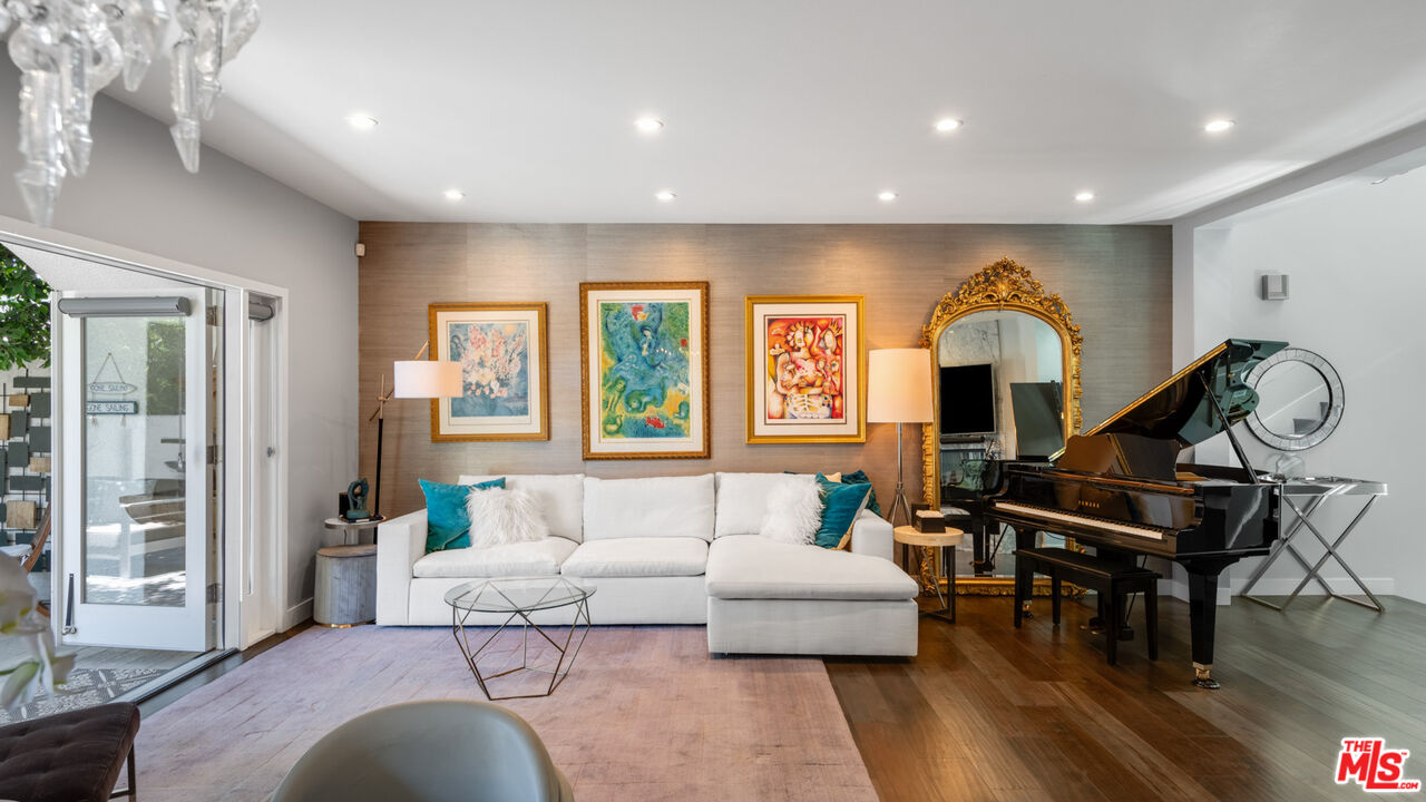 With its statuesque palms, gated archway entry, and private garden, this elegant Portico townhome offers cosmopolitan sophistication in a bright, Mediterranean setting. Exceptional detailing, such as hardwood floors, gorgeous Carrara marble countertops, and custom lighting suggest sparkling gatherings and and memorable evenings in the beautiful living areas and garden patio. Chandeliers and solar-powered skylights illuminate the entry hall, where there is a powder room and access to the laundry room and garage. The living/dining great room, a half-flight up, is a tranquil space, with a marble-hearth fireplace, built-in glass shelving, and French doors that open onto the entertainer's patio, where there is a pair of fountains and a barbecue bar, as well as seating around a fire table. Adjoining the dining area is the beautiful, top-quality kitchen, with more glass shelves, marble countertops, fine tile work, and generous custom cabinetry. One flight up is an en-suite bedroom with high, chandelier ceilings, built-in cupboards and desk, walk-in closet, marble bath with herringbone tile floor, and a wraparound sun porch. On the top floor is the primary suite, which has vaulted ceilings with 18-foot-high windows, a beautiful wall treatment, soffit lighting, another marble fireplace, a walk-in closet with impressive built-ins, and a marble and tile bath with a double sink and vanity. A door from the suite opens onto a covered porch, with Catalina and peek-a-boo ocean views and room for lounging. The unit has a two-car garage with generous storage, central air conditioning, security system, and drip irrigation in the patio garden. The much-admired Portico community, convenient to Point Dume Village and nearby beaches, has a large, gated and heated pool, and sauna, plus an outdoor kitchen and bar area and a spacious dining pavilion.Interested in this Listing?