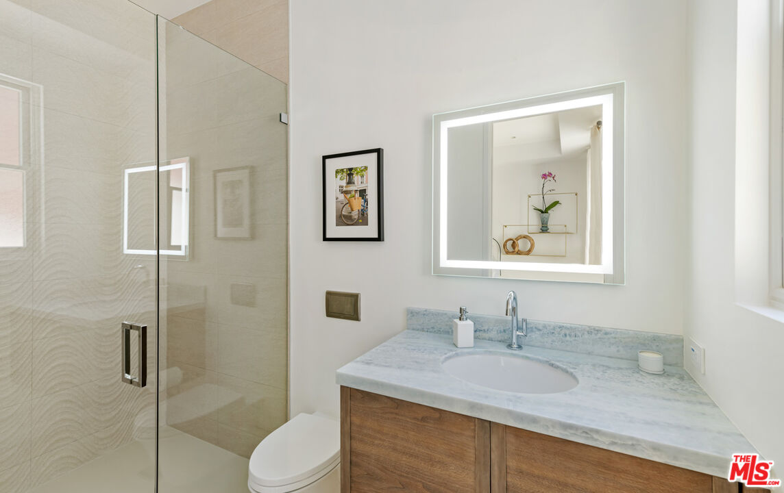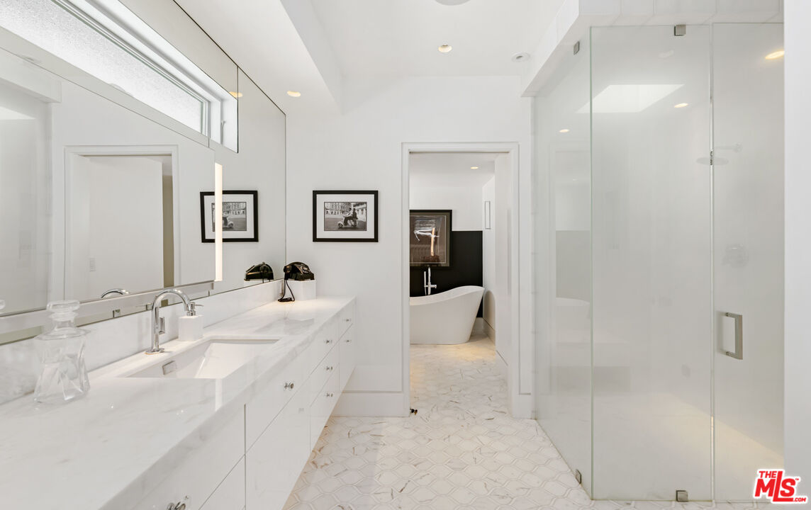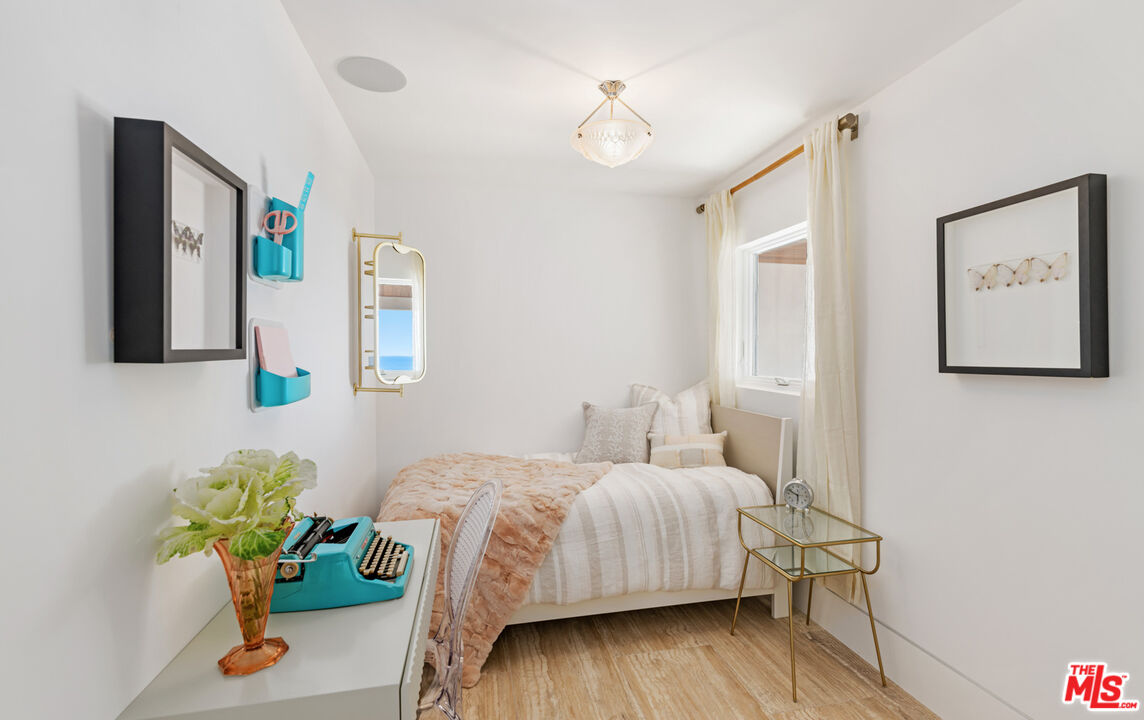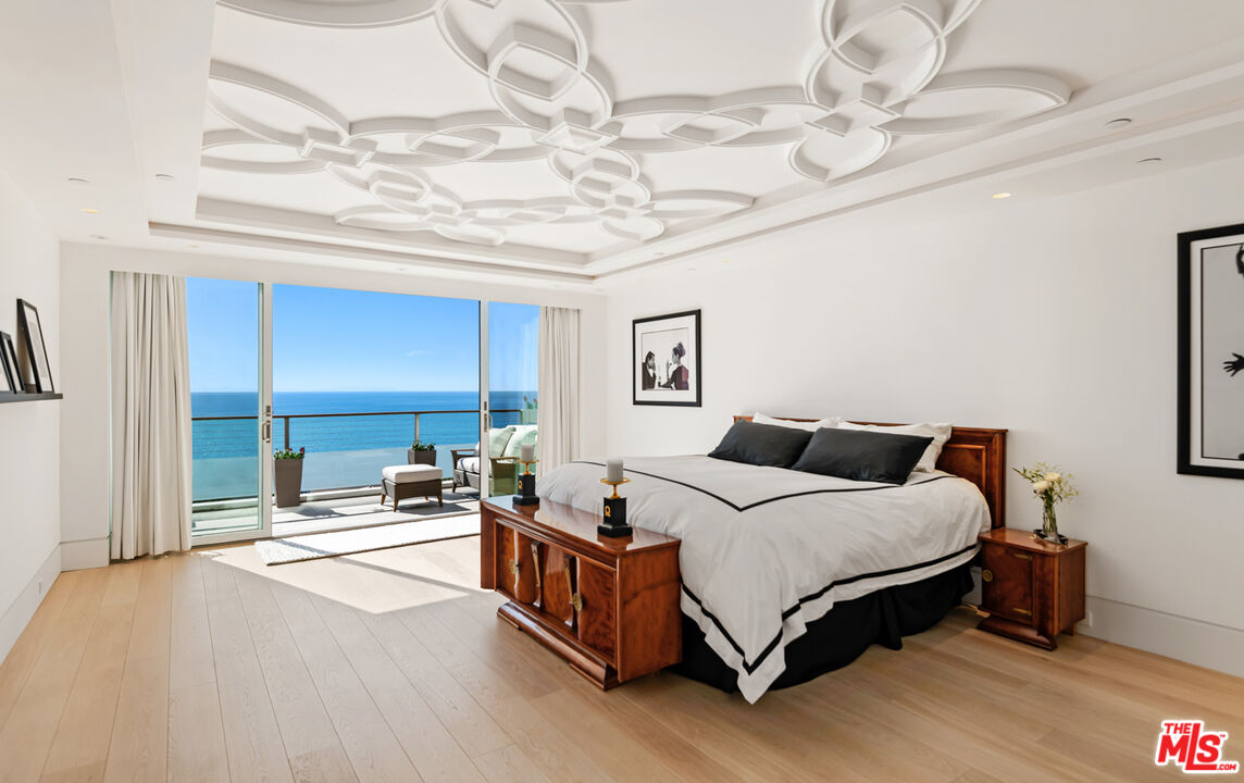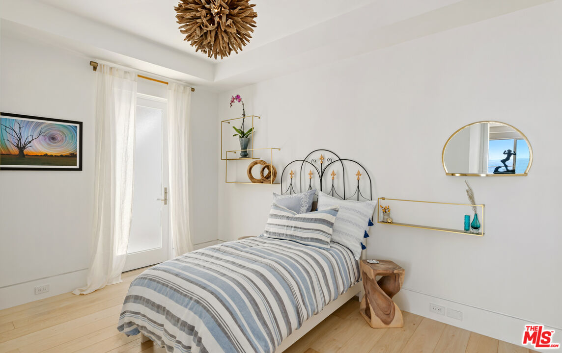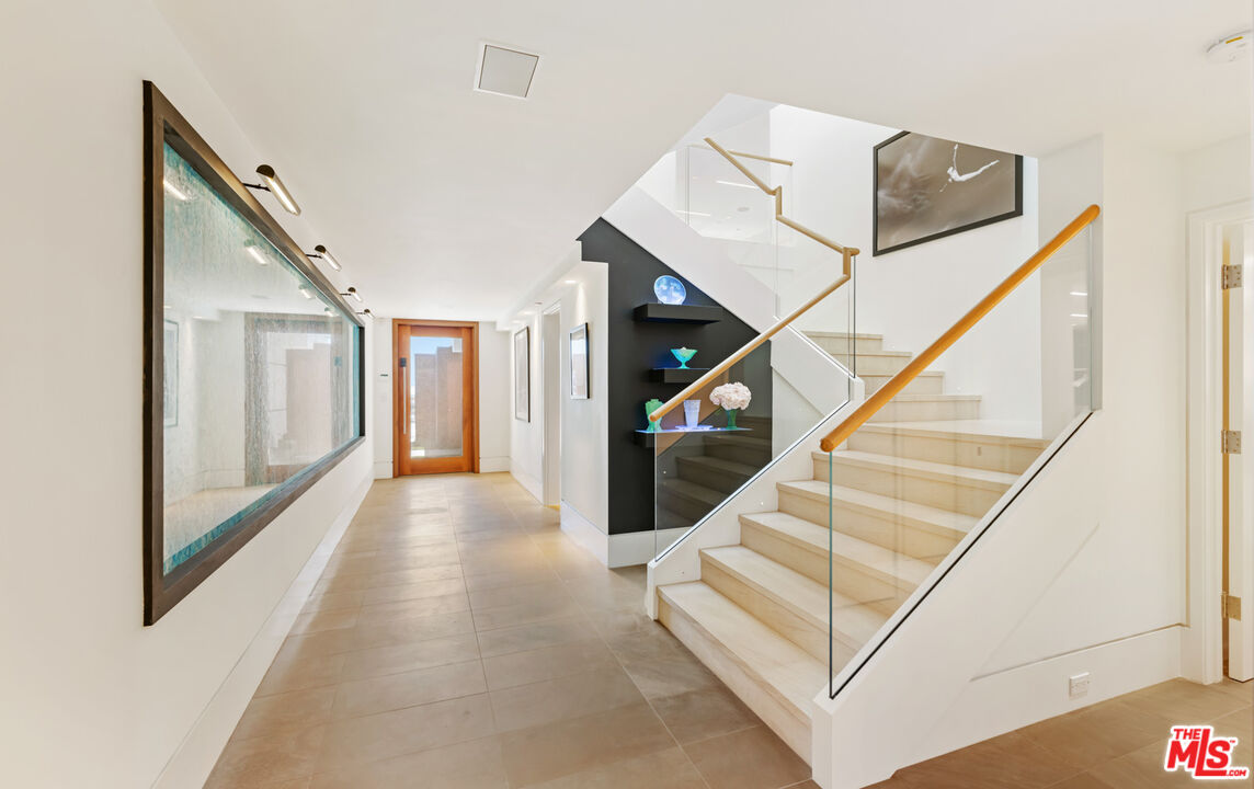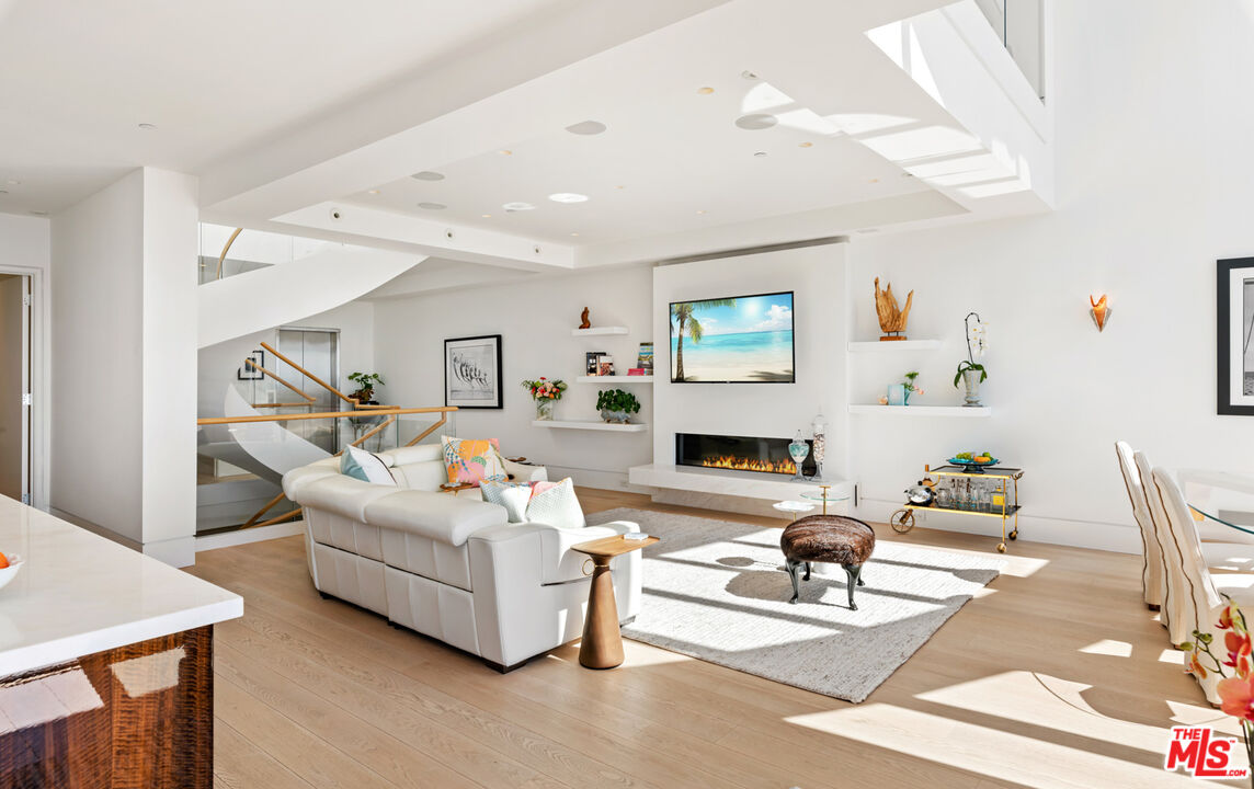 On the market for the first time, this open and airy contemporary residence is a study in dramatic lines and breathtaking 180 ocean views. One-half of a new duplex, with three balconies and a private commercial elevator serving all levels, the home is exquisitely finished with European white oak throughout, exceptionally high ceilings, and walls of glass to take in the full sweep of the Queen's necklace, Palos Verdes, Catalina, and the ever-changing ocean panorama from sunrise to sunset. On the entry-level is a large foyer, where one wall features an illuminated Brazilian gemstone display. Also on this level is a full bath, a mud room with storage closets, a huge laundry room with a dog-washing station, and access to the three-car garage, where there is additional storage. Up one floor, by way of the elevator or the handsome limestone stairs, the central space is wide and open, currently used as an office, complete with a separate entry. With travertine floors, a powder room, a separate office/bonus room, a kitchenette, and a bedroom, this level has a covered balcony with sensational views and ample room for dining and socializing. The spectacular custom spiral staircase begins on this level, with curved glass panels, bent wood rail, stair lights, and overhead, a 9-foot by 12-foot retractable glass roof/skylight that opens fully.One floor up, the home's main living area is a spacious ocean-view living/dining/kitchen great room with a wide balcony for al fresco dining, lounging, and entertaining. The living area has high, tray ceilings with recessed lighting, illuminated display shelving, and a striking quartzite fireplace. The dining area, with double-height ceilings, is flanked by two stories of bow windows. The kitchen is designed to a chef's requirements, with a huge quartzite island and countertops, bar seating, top-of-the-line appliances, museum-glass cabinets, breakfast nook, and walk-in pantry. Also on this level is a powder room with Calacatta Gold marble floor-to-ceiling wall and an en-suite guest bedroom with a separate entrance. On the top floor, the spiral staircase opens onto a roomy loft-style mezzanine and, beyond that, the primary suite. This stunning sanctuary features a dual tray ceiling with dimensional plasterwork and soffit lighting, oak floors, dual custom closets, dual spa-style baths, and a private lounging balcony with spectacular views. Among the home's many additional amenities are three-zone air conditioning, heated bathroom floors, remote-controlled shades, a private fragrant rose garden, an enclosed yard at the back, and smart-home systems throughout. With the easy access of Sunset Mesa and the expansive views of coastal living, this elegant modern residence is designed for lively entertaining and non-stop comfort.Interested in this Listing?