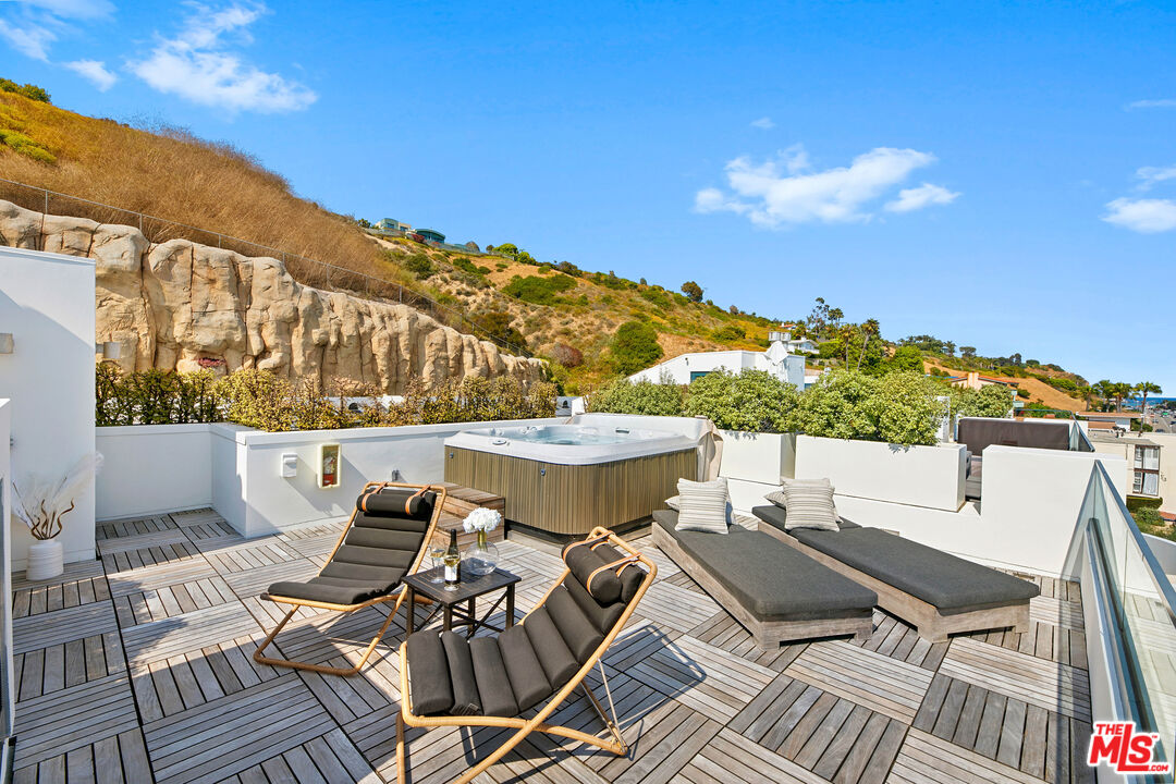 Indulge in the quintessential Malibu coastal lifestyle at this breathtaking ocean view property nestled within the highly sought-after Residences at Carbon Beach, just a short stroll from the renowned Billionaire's Beach. Introducing Residence #2, perfectly situated among 8 exclusive residences, offering the finest amenities and features. Revel in expansive ocean views from every living space, balcony, and the luxurious rooftop terrace featuring an 8-person spa and plenty of room for a built-in barbecue and entertainment space. Radiating with contemporary elegance, soaring ceilings, and abundant natural light, the main floor presents an open layout ideal for seamless entertaining and elegant everyday living. The charming breakfast nook seamlessly transitions into an impressive chef's kitchen featuring marble countertops and top-of-the-line appliances. This kitchen is equipped with two dishwashers, an additional prep sink, and a wine refrigerator. The living room showcases stunning views, expansive walls for art, and sliding doors that open to a private balcony, perfect for indoor/outdoor entertaining. Ascend to the second level, where the primary suite features a private balcony with ocean views and a spa bath that also overlooks the ocean. In addition to the primary suite, there are two generous sized bedrooms with en-suite bathrooms, a spacious sitting room, and a laundry room.Enhanced with modern conveniences, the residence features a nest control system and a private elevator. A gated garage entry leads to the lower level, offering private dual 2-car garages for this residence and a bonus room upon entering the unit from the garage. Embrace the ease of dining at nearby acclaimed restaurants such as Nobu, Tramonto, V's, Soho, and Malibu Farm at the Pier, all within your neighborhood. Now is the time to make this beautiful property your own and call Malibu your home.Interested in this Listing?