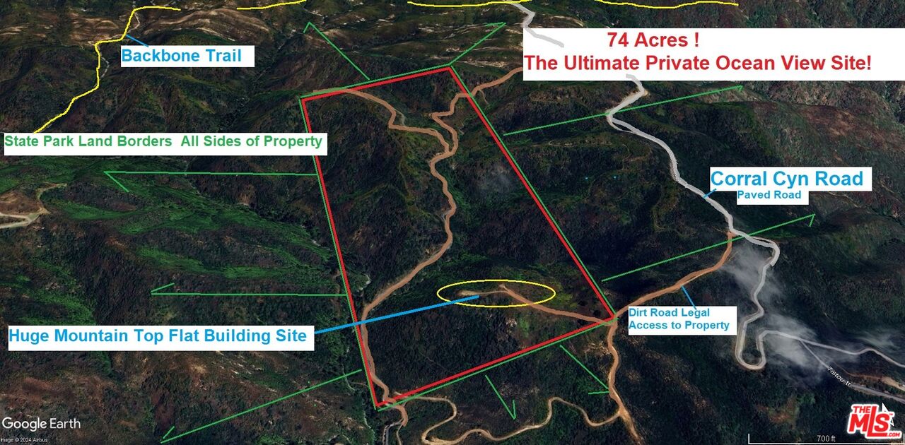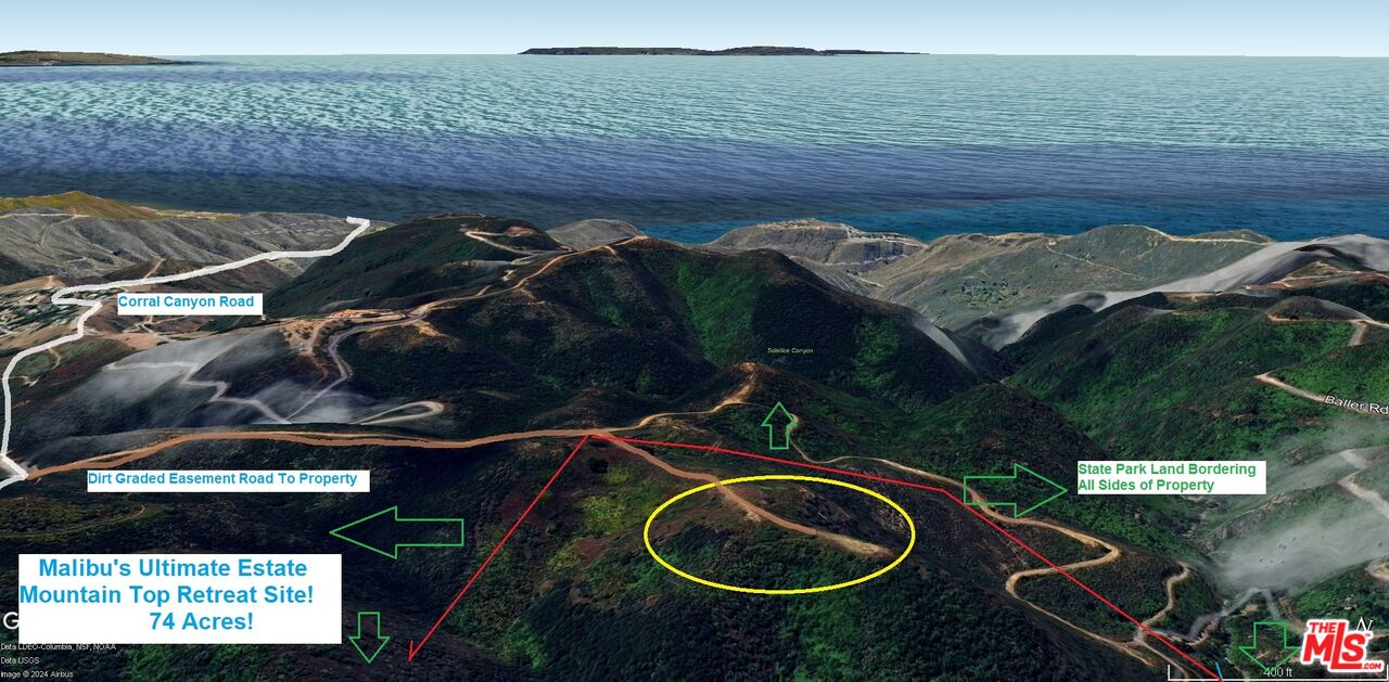 The Ultimate Malibu Mountain Retreat Site -74 Acres ! No One will ever be your neighbor with State Park Land bordering all sides of this property. Closest Neighbors large Retreat Site sold for over $10m. Incredible ocean and mountain views from the flat building site on this property . There is a maintained dirt road to the property off of Corral Canyon to this property offering easy and legal access . If you are looking for the last reasonably price huge estate site or mountain top Castle in Malibu where you are King and Queen of the Malibu Hills .. this is it!Interested in this Listing?