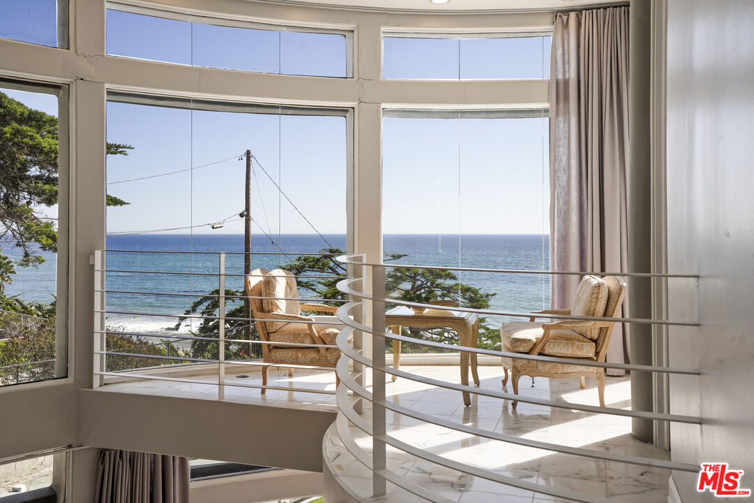 Welcome to Carmel on the beach in Malibu! Whitewater ocean views, framed by Monterrey Pines, highlight this gated, light and bright contemporary 2-story beach retreat. Features 3 ensuite bedrooms all with balconies, 3.5 baths, plus av spacious office. Private drive leading to one of Malibu's most private, wide, sandy beaches. Enter through secure electric gates to a private lane with a gated courtyard. Owner prefers a long-term furnished lease. Will consider a short-term furn., lease with a 3 mo. min. at $25,000 / mo. Generous parking, plus a two-car garage with direct entry into house. Open floor plan with voluminous ceilings, lots of glass, large, ocean view gourmet kitchen with ample cabinet space, stainless steel appliances, separate pantry, adjacent to laundry room. Spacious living room with soaring ceilings, walls of glass, fireplace, plus a cozy den and large dining room, opening to an ocean view patio, overlooking the sand. Lots of closet space throughout. Upstairs boasts a sizable, elegant ocean view primary suite with generous bath and walk-in closet, plus sitting area and ocean view deck. Continue to a large office or playroom with lots of light. Hallway leads to two additional ensuite bedrooms, one with a set of bunkbeds and a secondary main bedroom with beautiful ensuite bath and balcony. Relax and rejuvenate to the sounds of the surf, while watching dolphins frolic below. Available fully furnished long-term or short-term, with a 3-mo. minimum. Quiet and serene location, near Ventura County Line, opposite the Fire Station. Call regarding Pets. *No cats* please, owner is allergic. Renter's Insurance required. Excellent Credit & FICO Score required. Fireplaces are decorative only. Shown by Appt. only, with *24 hr. notice please.Interested in this Listing?