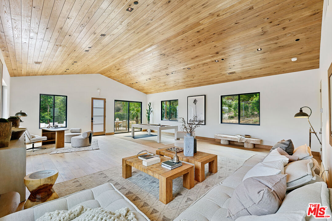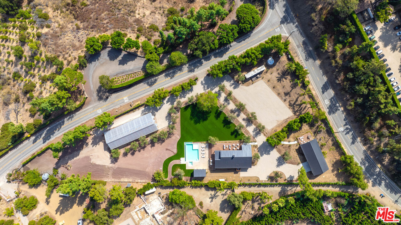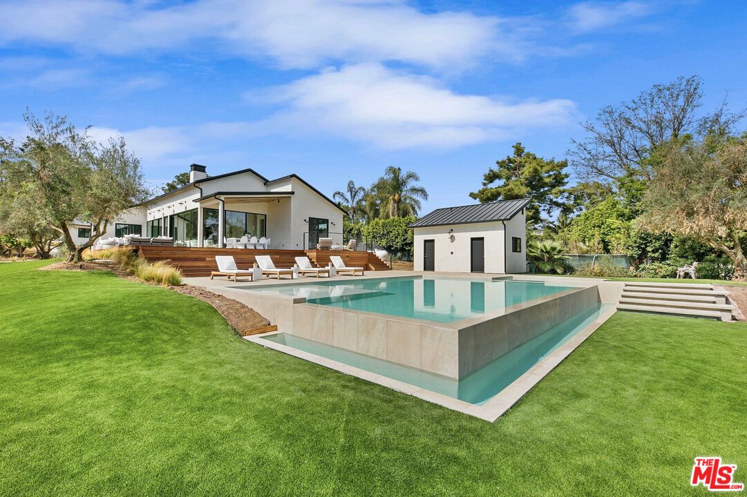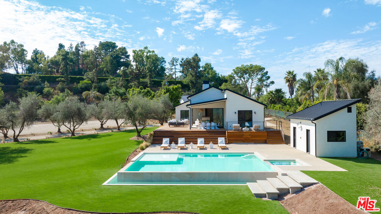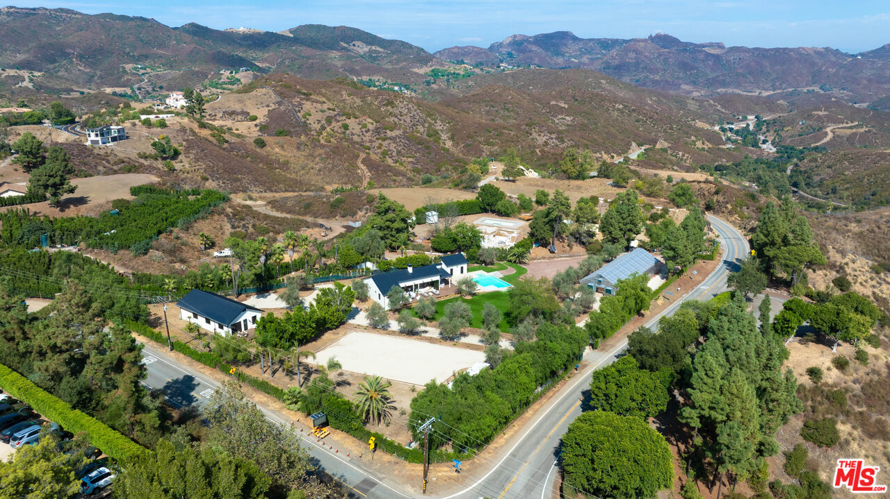 Discover a rare fusion of artistic inspiration, serene luxury, and ultimate privacy on this secluded two-acre ranch in the hills of western Malibu. Reimagined as a modern farmhouse compound, this gated retreat is the perfect live-work sanctuary for creatives seeking space, style, and substance. The main residence boasts soaring ceilings, rich hardwood and porcelain floors, and expansive sliding walls of glass that seamlessly blend indoor elegance with outdoor serenity. This brand new four bedroom home centers around an all-Viking chef's kitchen ideal for intimate gatherings or production catering. Step outside to a stunning wraparound Ipe wood deck, leading down to a sparkling full-sized pool and spa, paired with tranquil cabana/massage room, and manicured grounds on two flat acres. The real magic begins with the approximately 1,600 sq. ft. detached guest structure/studio that is beautifully finished and perfect as a recording studio, editing suite, writing retreat, or VIP guest quarters. For the eco-minded or visionary creative, the professional-grade steel-and-glass greenhouse offers endless possibilities: cultivate your own organic garden, design an art installation, or convert it into a striking display for an exotic car collection. With its own functioning well, full privacy, and quick access to Malibu's beaches and Westlake Village's amenities, this property is more than a home - it's a canvas for your next chapter. Whether you're scoring your next album, shooting an indie film, or simply looking to escape and create, this estate delivers the inspiration, infrastructure, and tranquility to support your vision.