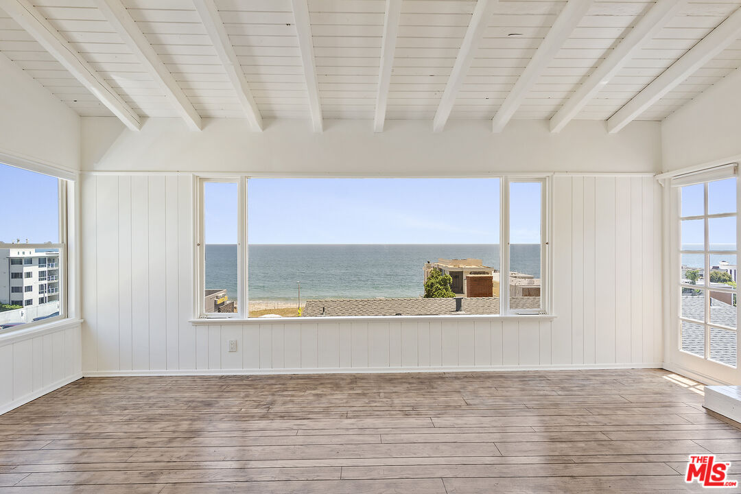 Live the ultimate Malibu Beach lifestyle in this charming coastal home, perfectly perched above the prestigious Carbon Beach. Offering breathtaking panoramic ocean views, this residence showcases whitewater vistas stretching from the Malibu Pier and Catalina Island to the Santa Monica Bay. Step onto the expansive ocean-facing deck and take in the unparalleled sunrise and sunset views, with the soothing sound of crashing waves as your daily backdrop. Inside, the home features an updated kitchen and bathroom, stainless steel appliances, and a versatile storage loft for added convenience. The open-concept living space is light and bright, accentuated by high-beamed ceilings and a cozy gas fireplace, creating a warm yet airy ambiance. Central A/C & heat ensure year-round comfort. Enjoy easy beach access and proximity to Malibu's top-tier dining and shopping. You're just minutes from Nobu, SOHO House, V's, Malibu Farm, and Taverna Tony, as well as Malibu Country Mart, The Malibu Lumberyard, and Whole Foods. With its unbeatable location and mesmerizing ocean views, this Malibu retreat is the perfect place to call home.
