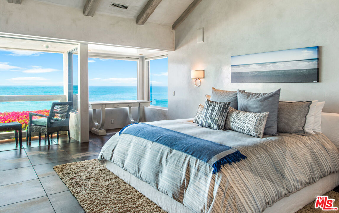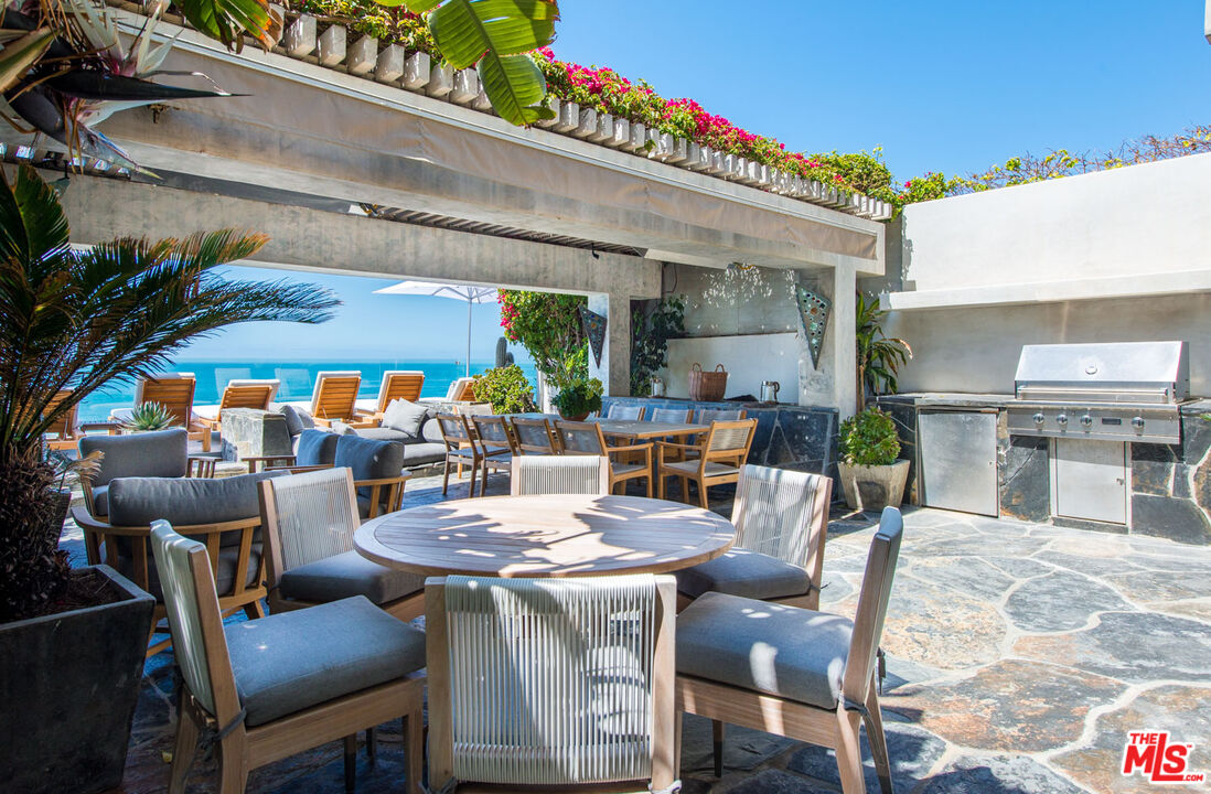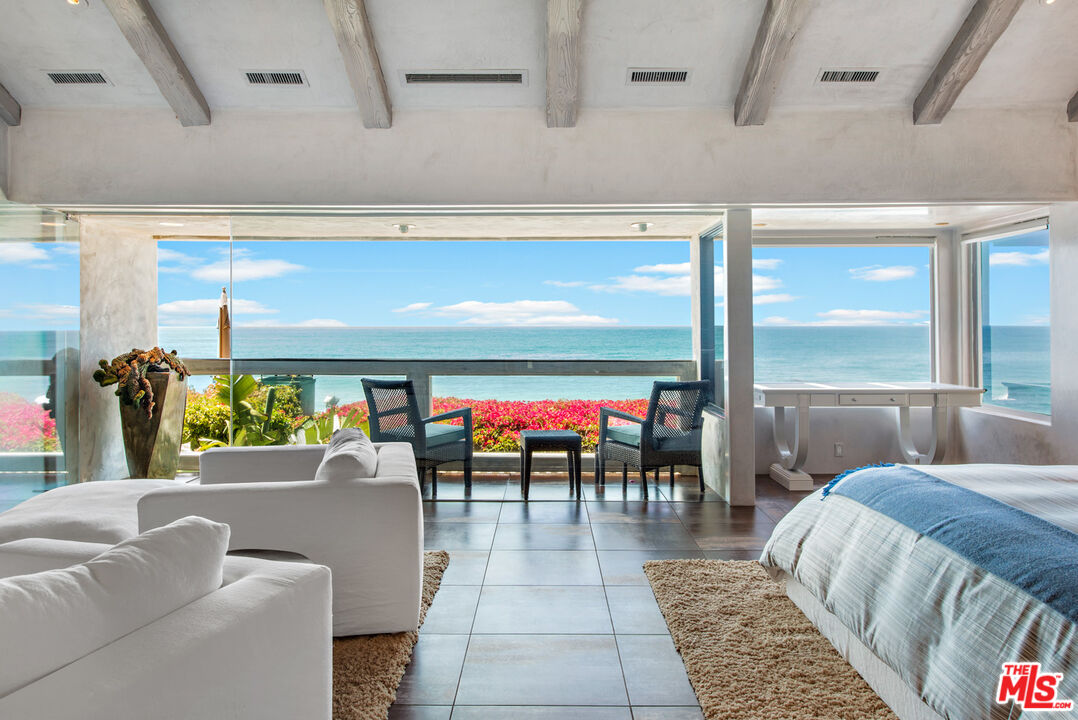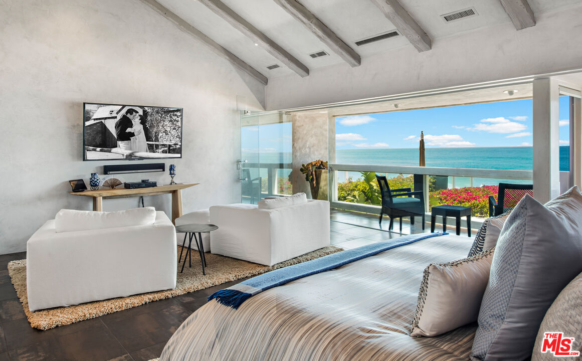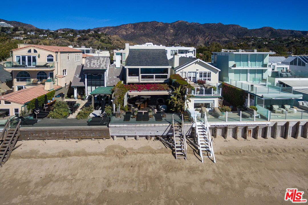 Bold design and modern features coalesce in this newly remodeled three-story beach house. Located in the guard-gated community of Malibu Colony, this 5 bedroom/5 bath home w/custom stone floors, fabric walls, and hand-selected designer elements. Perfect for grand or casual living, the home offers a custom aquarium entry that flows into a sleek, but inviting formal living room and dining area with raised fireplace and floor-to-ceiling wall of glass that opens to a logia covered entertainer's deck with a BBQ island, multiple seating areas and raised wood sun/viewing deck with direct beach access. Black granite, ocean view gourmet kitchen with custom stainless steel finishes and high-end appliances. Intimate family/media room with granite bar area. Gorgeous, ocean view owner's suite with sitting area, high ceilings, and double spa-like baths, plus a third-floor equipped gym that overlooks the suite. Four additional en-suite bedrooms, two-car garage with guest parking. Summer months rent is $145,000 per month (June - September)Interested in this Listing?