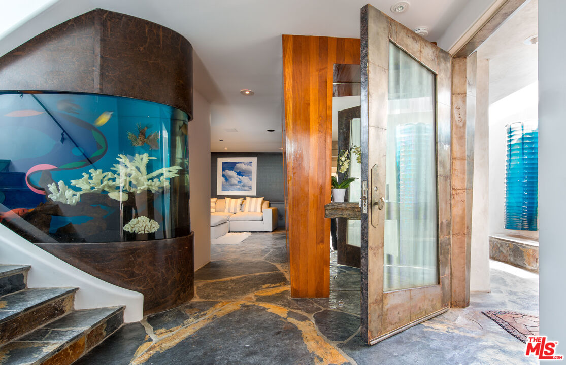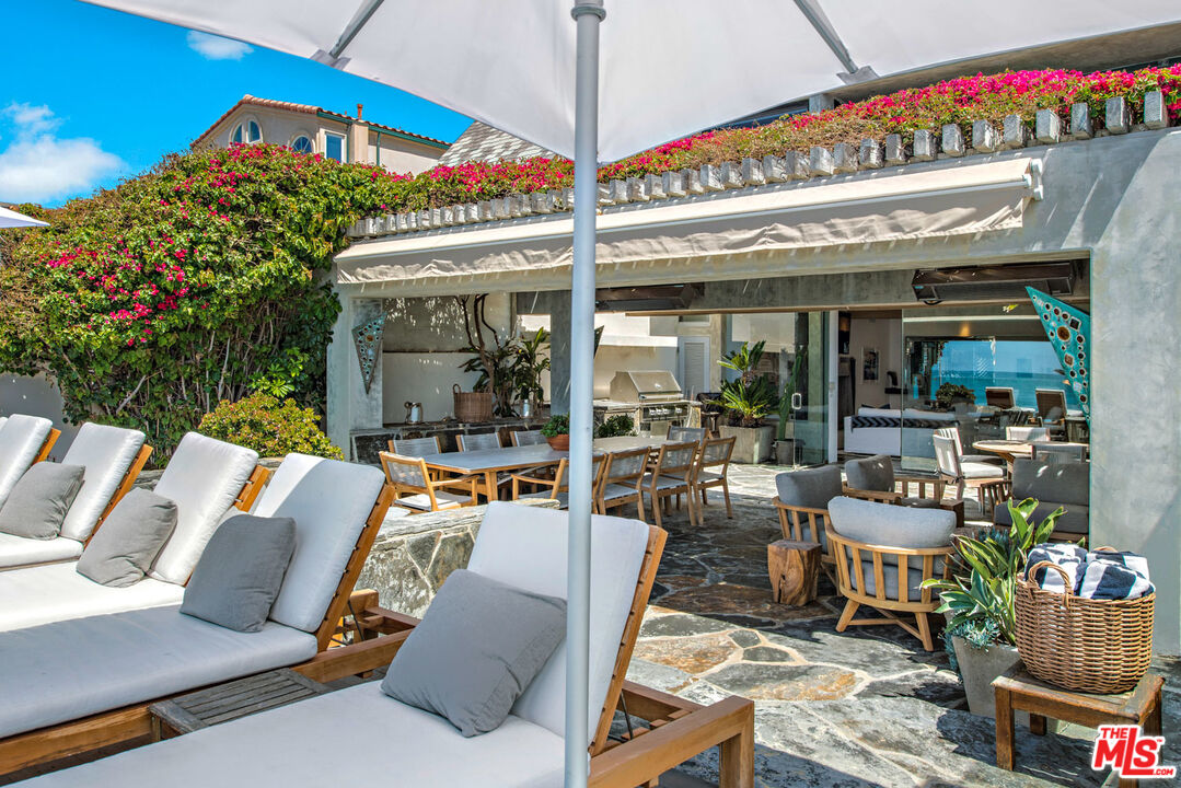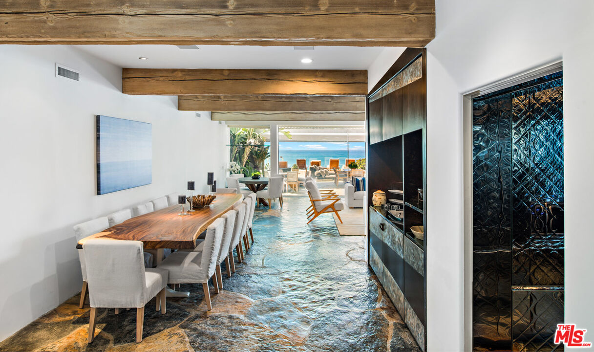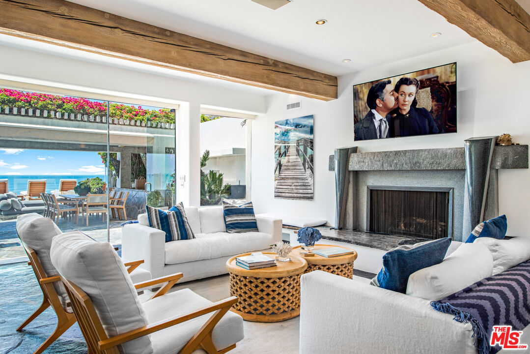 Bold design and modern features coalesce in this newly remodeled three-story beach house. Located in the guard-gated community of Malibu Colony, this 5 bedroom/5 bath home w/custom stone floors, fabric walls, and hand-selected designer elements. Perfect for grand or casual living, the home offers a custom aquarium entry that flows into a sleek, but inviting formal living room and dining area with raised fireplace and floor-to-ceiling wall of glass that opens to a logia covered entertainer's deck with a BBQ island, multiple seating areas and raised wood sun/viewing deck with direct beach access. Black granite, ocean view gourmet kitchen with custom stainless steel finishes and high-end appliances. Intimate family/media room with granite bar area. Gorgeous, ocean view owner's suite with sitting area, high ceilings, and double spa-like baths, plus a third-floor equipped gym that overlooks the suite. Four additional en-suite bedrooms, two-car garage with guest parking. Summer months rent is $145,000 per month (June - September)Interested in this Listing?