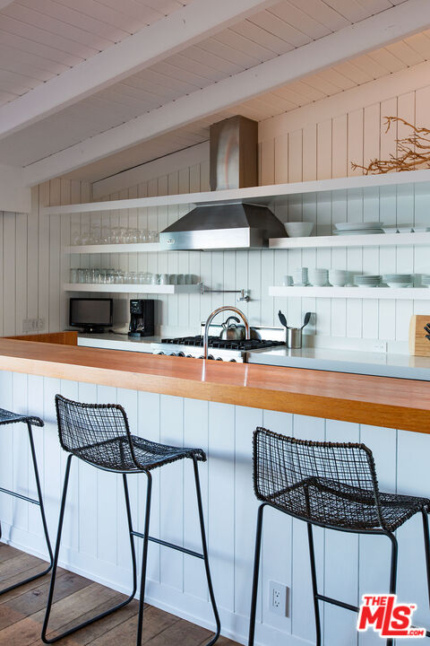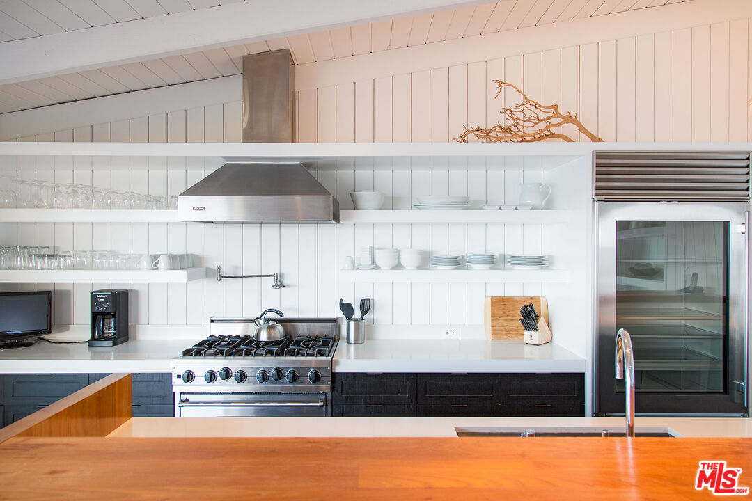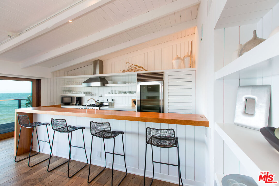 Surfrock at Malibu Road. This beachy-modern designed home sits on one of Malibu's most coveted beaches located off of the Pacific Coast Hwy on Malibu Road. Impeccably decorated with designer furnishings, antique French oak floors, floor to ceiling sliders open to the wrap around deck, top of the line fixtures and finishes, Viking kitchen appliances and a Crestron home automation system. Large master suite with it's own indoor and outdoor showers allowing one to feel part of this amazing oceanside environment, plus an additional guest room and second bathroom with large soaking tub. This home truly offers the beach lifestyle keeping with the true essence of Malibu.