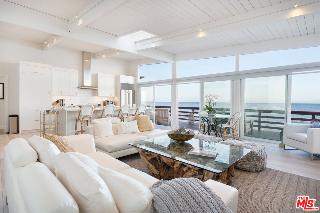 Located on prime section of Malibu Rd beach with 75 feet of frontage lies this classic and recently renovated 3 bed/3 bath mid-century. Offering a seamless harmony of character and sophistication, luxe and leisure, this gem boasts blonde wood floors, sleek finishes, and relaxed furnishings throughout. Natural light abounds enhancing the already welcoming and serene ambience, as do sweeping panoramic ocean views, courtesy of the floor to ceiling glass windows and doors that beckon one out to the expansive deck. Replete with sumptuous outdoor furniture and fire pit, enjoy front row seats and take in breathtaking sunrises and sunsets, passing dolphins and wildlife, amongst the rest of the gorgeous beachscape. To top it all off, a private, quaint, understated and lush back courtyard awaits as does a detached 1 bed/half bath guest house, allowing for optimal flexibility and ease. Epitomizing truly effortless yet luxe coastal living and quintessential charm, this is a perfect soothing seaside retreat, all the while just minutes to Malibu's best shopping, dining, and hiking.Interested in this Listing?