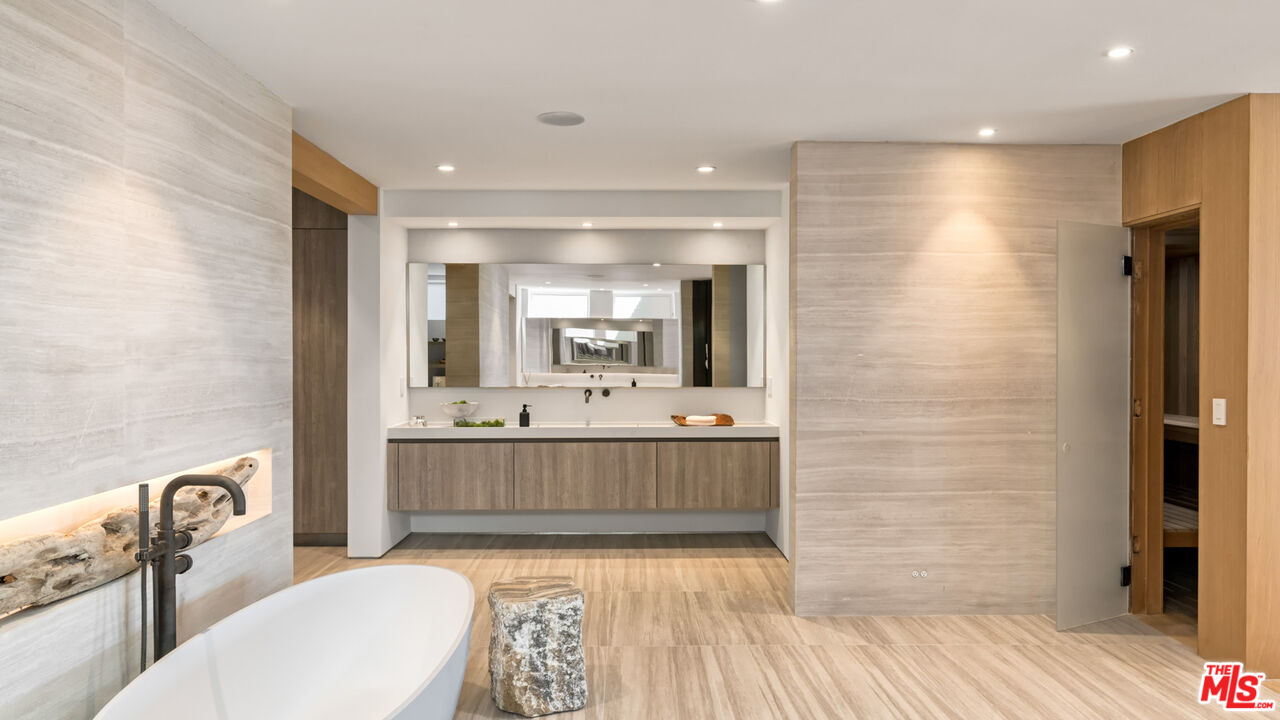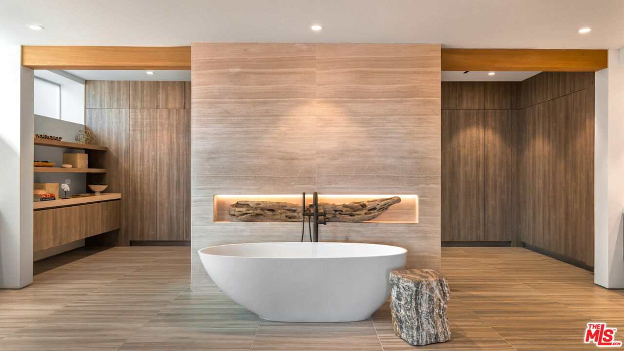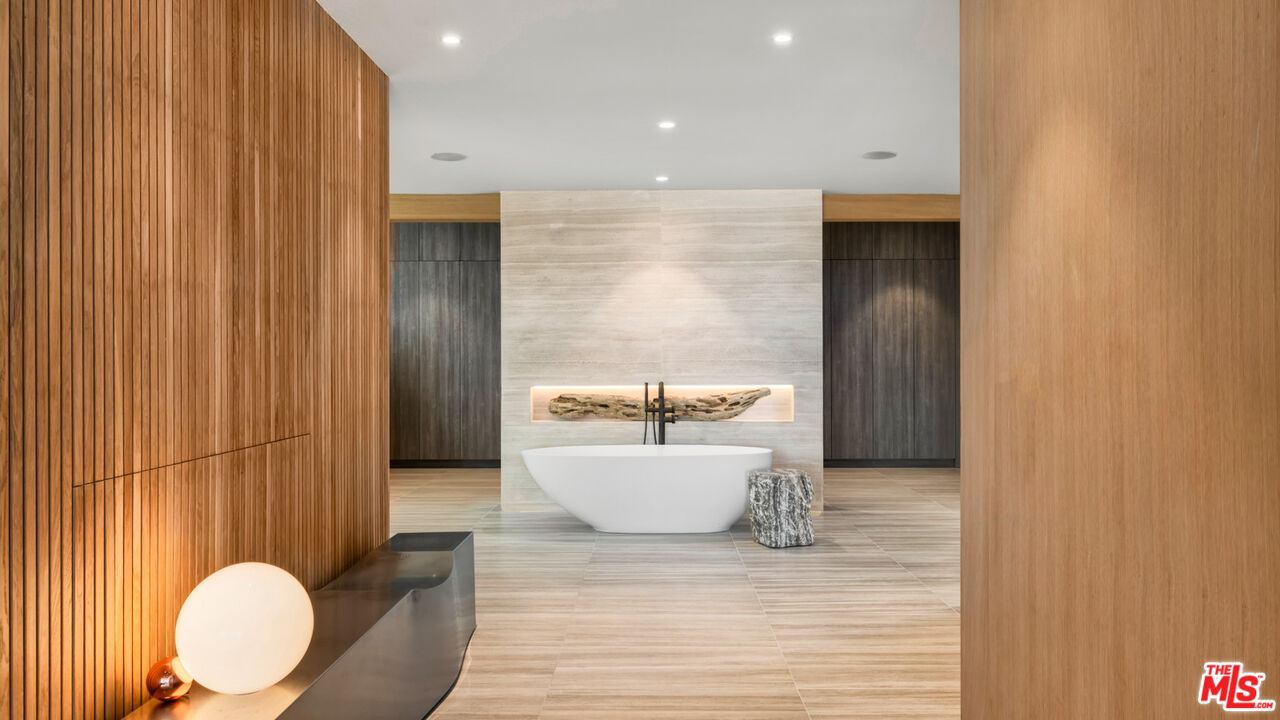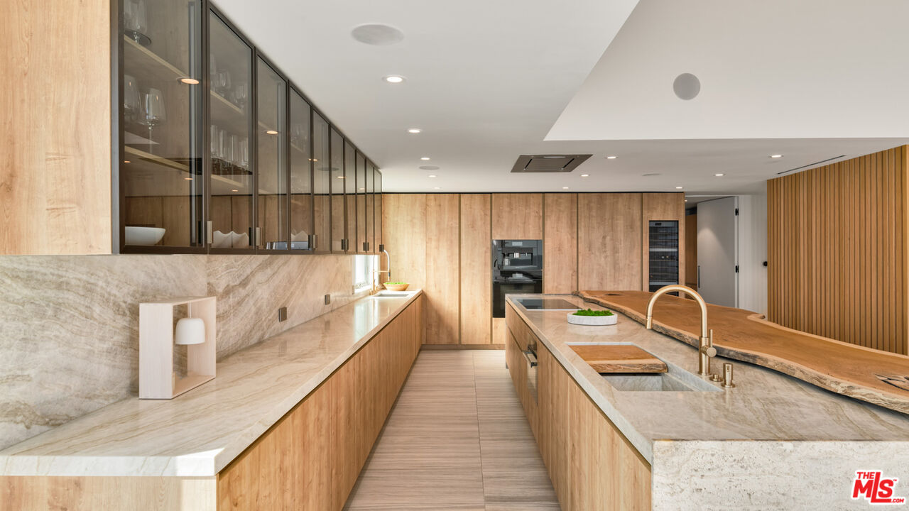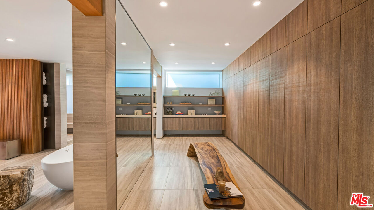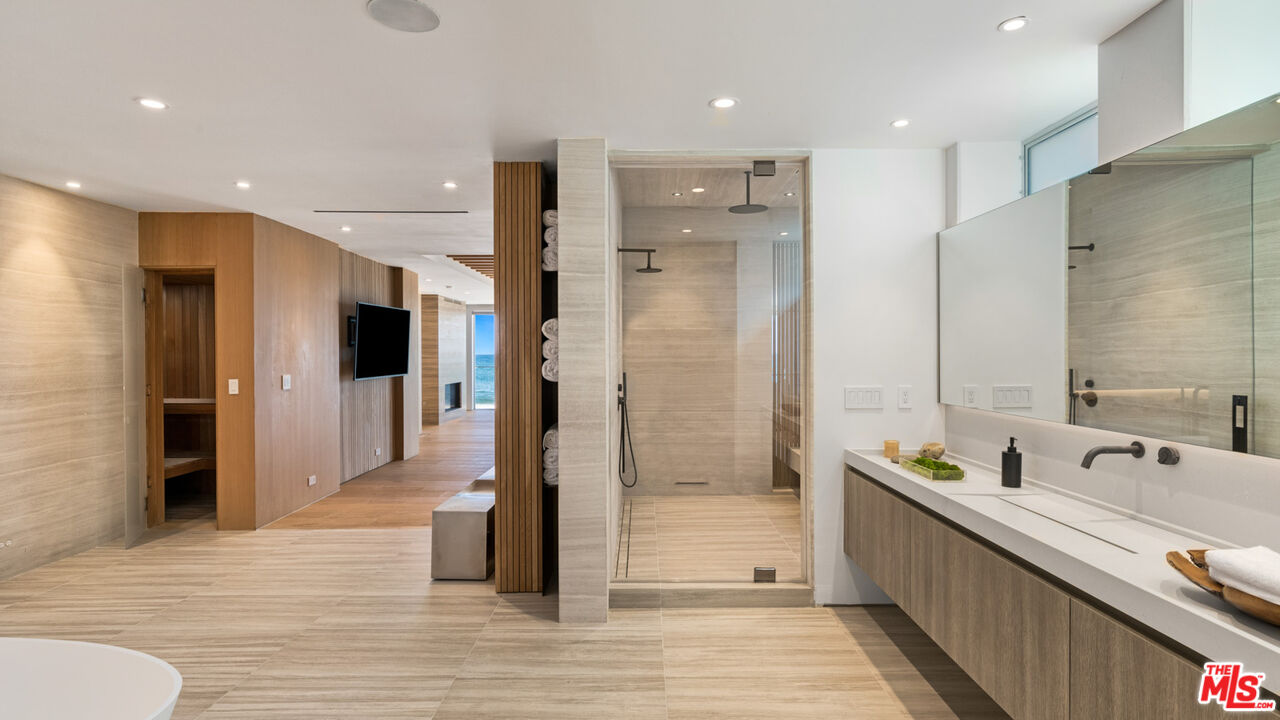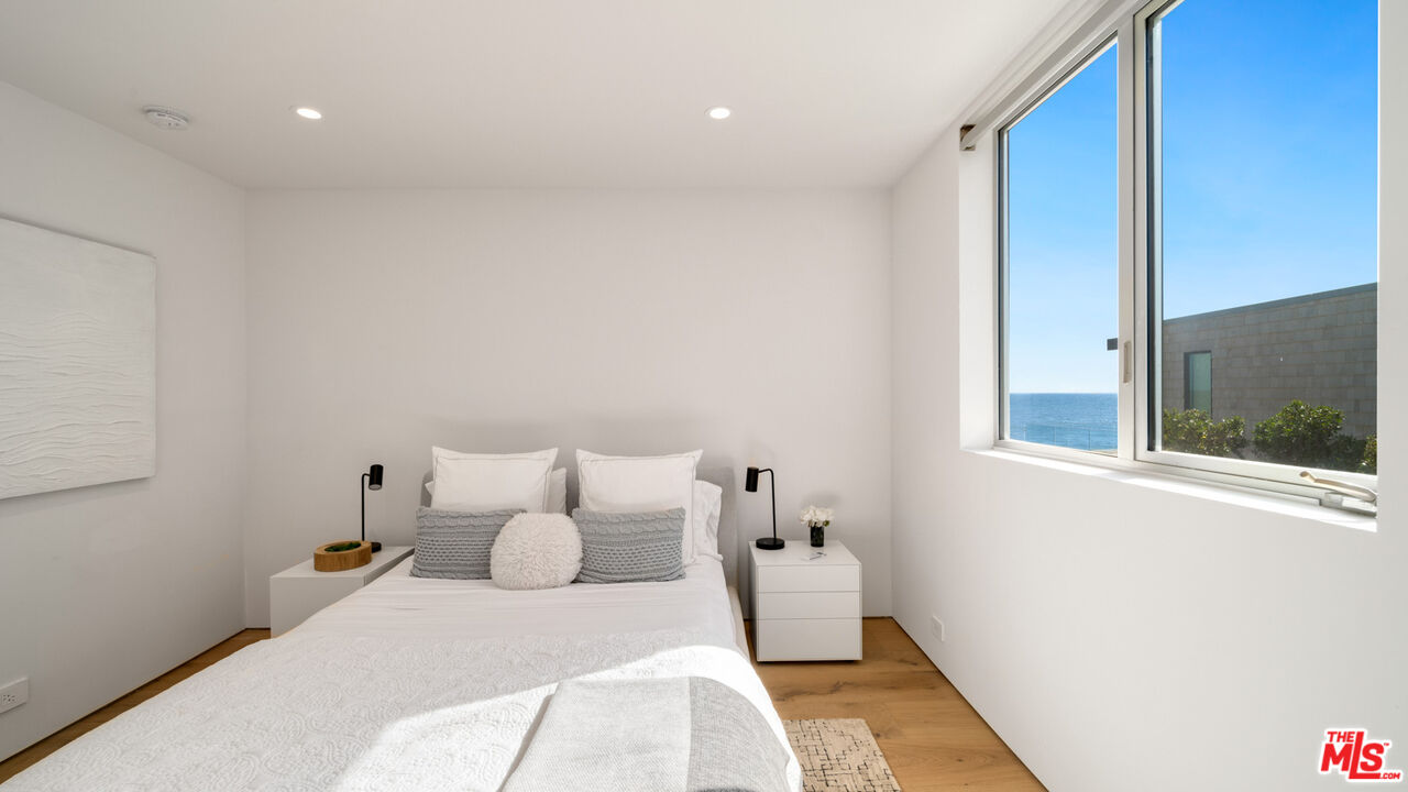 Both a private beachfront retreat and a majestic setting for grand entertaining, this elegant architectural estate is filled with natural light and sensational ocean, island, and coastline views. With approximately 81 feet of beach frontage on prestigious Malibu Road, the residence has been gorgeously updated for comfort, quality, and architectural integrity. Complete with pool, full-width balconies on two levels, walls of glass, and luxurious indoor-outdoor entertaining spaces, this is a year-round getaway convenient to Pepperdine University, beaches, trails, and all the attractions that Malibu has to offer. Gated and private, the home is built around a tranquil ocean-view courtyard, which has an expansive deck, a firepit lounge area, an outdoor kitchen and barbecue, and a waterfall swimming pool and spa. A door from the courtyard provides stairway access to the pristine beach below. The home's bold lines are emphasized by a long, ocean-view hallway with skylights overhead and up-lit glass insets in the floor. Along this hallway is a modernist wet bar with views of both the pool and the ocean, plus bar seating, a stone trough sink, and cabinets and counter space for spirits and storage. The end of the hall opens into two dramatic, oceanfront spaces with soaring barrel-vault ceilings, clerestory windows, and huge glass doors that open to the upper-level deck. On one side, the handsomely furnished living room has a linear fireplace, a built-in display bench, and glass doors opening to both the pool and the deck. On the other side, also opening to the deck, is the impressive kitchen/dining area. The kitchen is spacious both for food preparation and for entertaining. A large island with bar seating has a gorgeous live-edge countertop. Top-quality Miele appliances, generous storage and counter space, including lighted glass-front cabinets, and an over-sink picture window with views of Point Dume will please the most demanding chef or host. Adjoining the kitchen, with another barrel-vaulted ceiling, is the dining area with ample space for large gatherings that can extend easily to the deck just outside. Completing the home's main level is an ocean-view bedroom suite, a laundry room, and a powder room. On the lower level are three bedrooms, all opening to another beachfront deck. The primary suite is a private haven, with beautiful wood finishes, a platform bed, a sitting area separated by a double-sided fireplace, a wet bar, a walk-in closet with a magnificent burl bench, and a romantic spa-style bath with a sauna. In addition to the main deck, the primary suite opens to a pergola-shaded deck at the side of the house, where a hot tub, hammock, and lounge chairs offer a private, ocean-view oasis. A two-car garage, smart-home systems, and generous storage complete this sublime beachfront estate.Interested in this Listing?