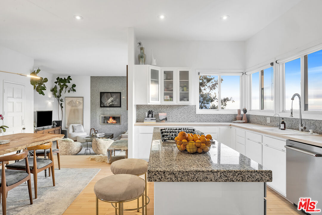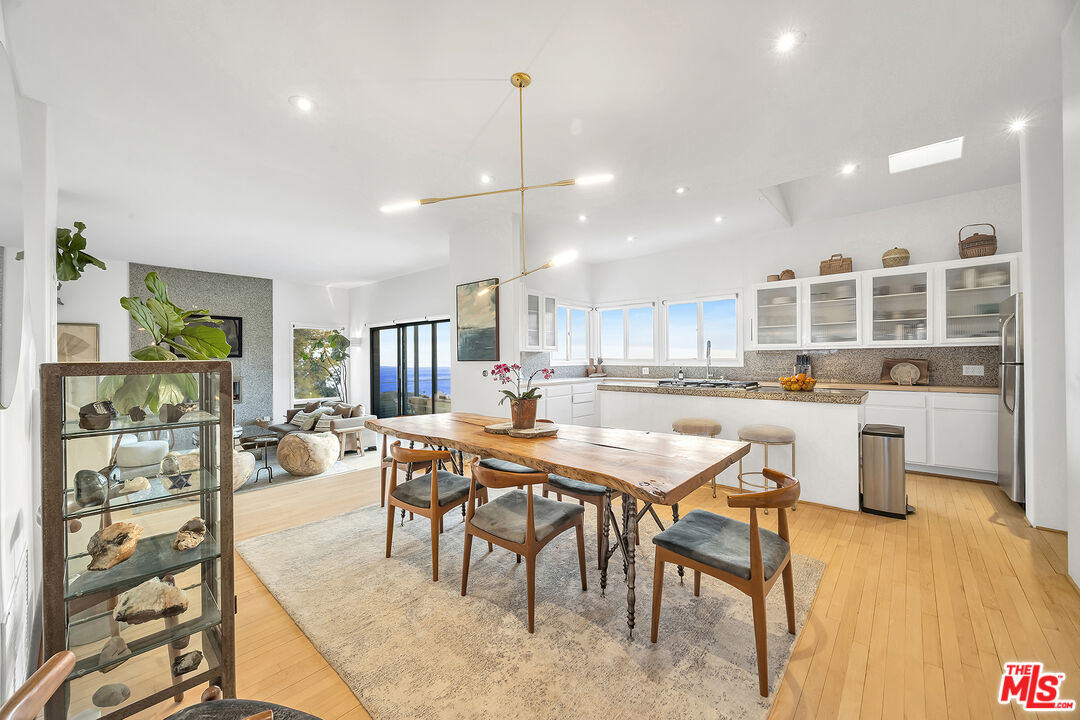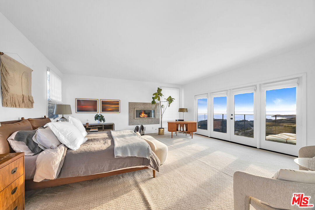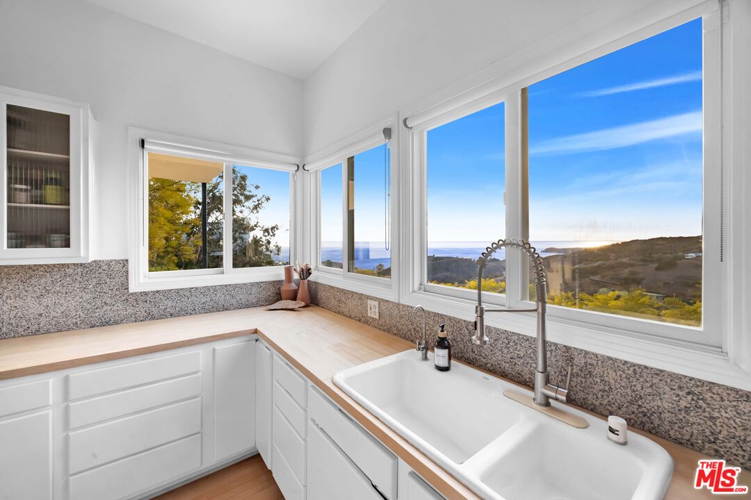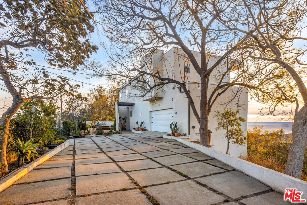 This 5+ acre Malibu estate offers dramatic, panoramic ocean views capturing both sunrises over Queen's Necklace to the east and magical sunsets over Pt. Dume to the west. Situated in a serene canyon setting, this property features an open floor plan with high ceilings and large windows designed to capture the abundance of natural light and expansive vistas. The main entry opens to the living room with a wood burning fireplace and is flanked by Fleetwood pocket doors that open to an outdoor space where one can entertain guests and enjoy the garden scenery. The spacious kitchen has a center island that connects to the large dining room with a half bath nearby. Upstairs are three bedrooms each boasting incredible ocean and mountain views. The generous primary suite features a private balcony, fireplace, oversized closet and comfortable bathroom. The other two bedrooms open to a shared terrace also with gorgeous ocean and mountain views. In addition, there is a one bedroom guesthouse with full kitchen and laundry on the lower level with its own private entrance. Hiking trails are out the front door and there are a variety of mature fruit and citrus trees strategically placed around the property, as well as a lemon grove. Lastly, there is solar and a water filtration system. Also for sale at $3,650,000.Interested in this Listing?