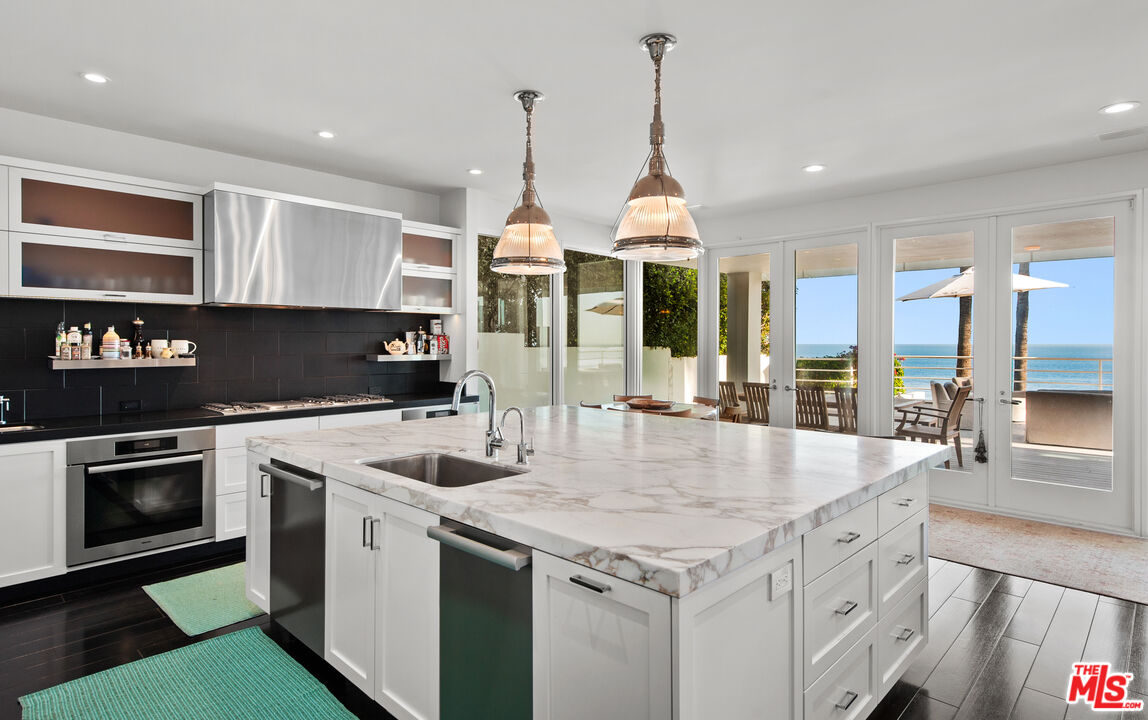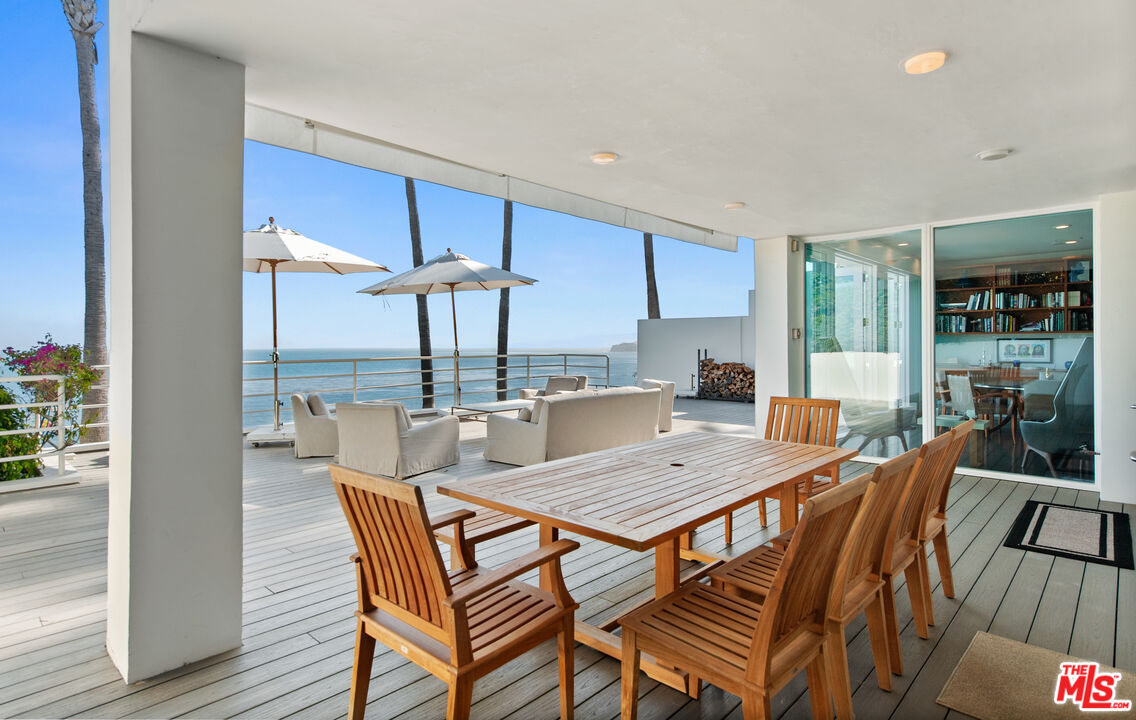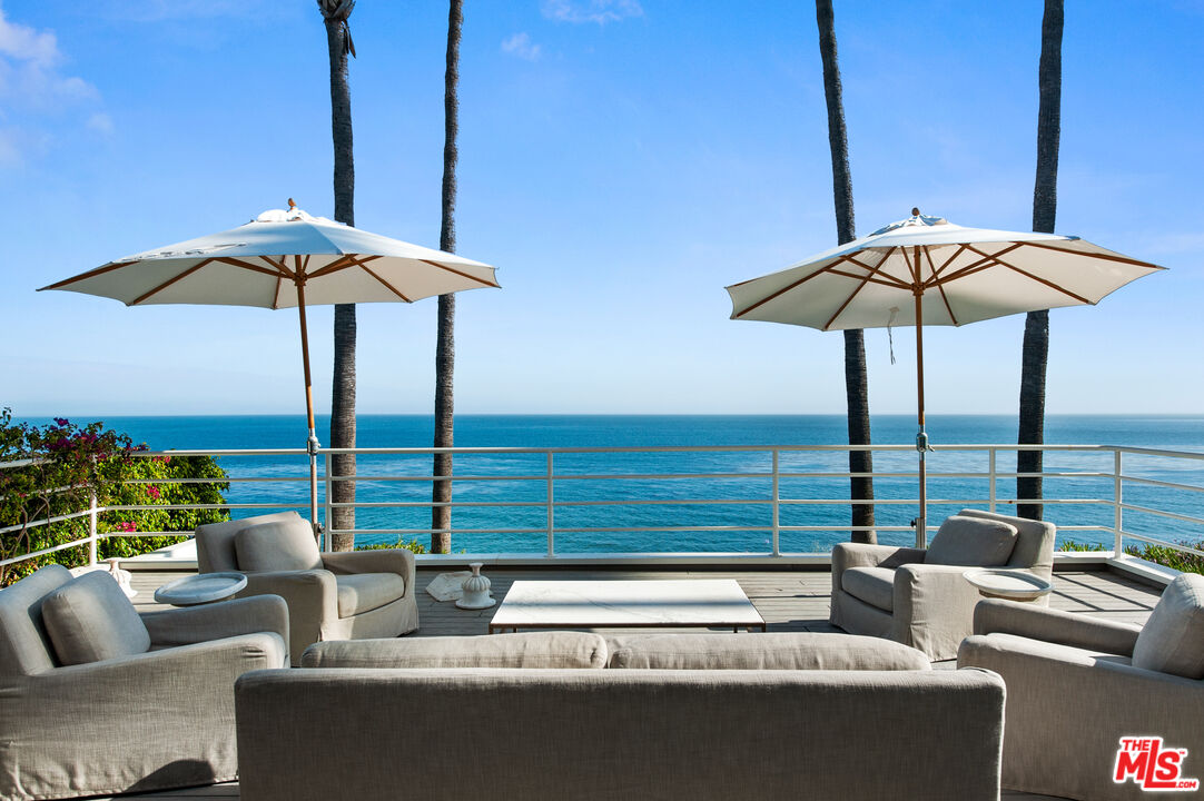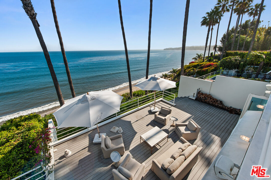 Set against the backdrop of a breathtaking ocean panorama, this extraordinary central Malibu townhome epitomizes the pinnacle of coastal luxury living. Thoughtfully designed for both refined relaxation and elegant entertaining, the property boasts dining and lounge areas on two sides, direct beach access, and striking architectural sophistication.A gated private courtyard invites you into a grand entry and expansive foyer, seamlessly transitioning to a double-height great room adorned with a wall of glass that frames sweeping views of the ocean, islands, and cityscape. Accentuated by recessed lighting, dark French oak floors, and a sleek fireplace, this space also features a graceful dining area that blends comfort and sophistication.The state-of-the-art kitchen is a chef's dream, showcasing a massive marble-topped eat-in island, professional-grade appliances, and impeccable design. From here, step onto the expansive Trex deck, where covered and open spaces provide the perfect setting for alfresco dining and relaxation. A landscaped seaside lawn below completes this outdoor sanctuary.The main level offers versatility with an office/bedroom, a full bath, a powder room, a wine closet, and a media room. Upstairs, the ocean-view primary suite is a haven of tranquility, complete with a cozy fireplace, a sitting area, wraparound windows, a spacious walk-in closet, and a spa-like bath featuring heated floors. A full-width oceanfront deck extends the suite's allure. Two additional en-suite bedrooms provide luxurious accommodations.Adding to the property's allure is a separate guesthouse studio situated above the garage. This private retreat includes a wet bar, fireplace, and bath, offering both comfort and privacy for visitors.An immaculate blend of style and function, this exceptional residence presents an unparalleled opportunity to embrace Malibu's coveted lifestyle in exquisite fashion.Interested in this Listing?