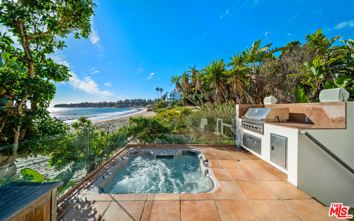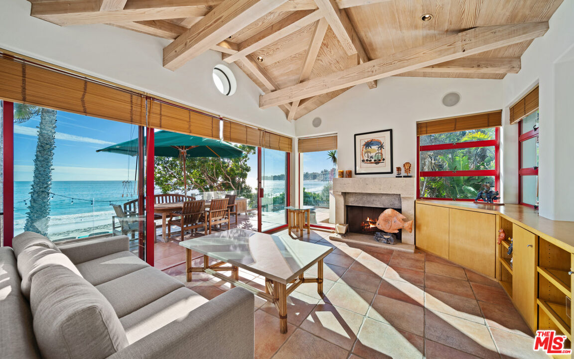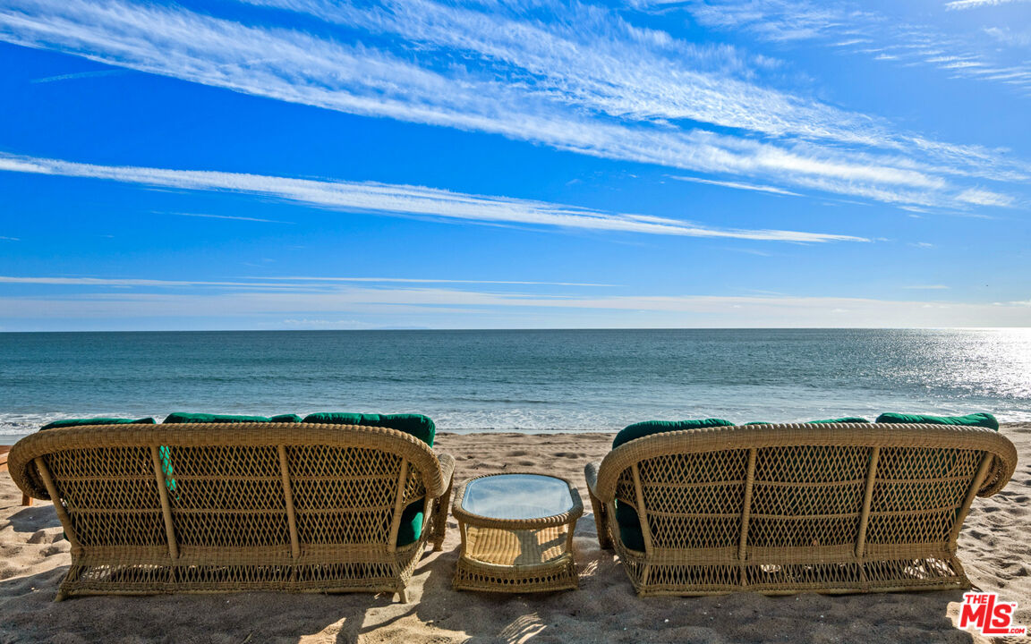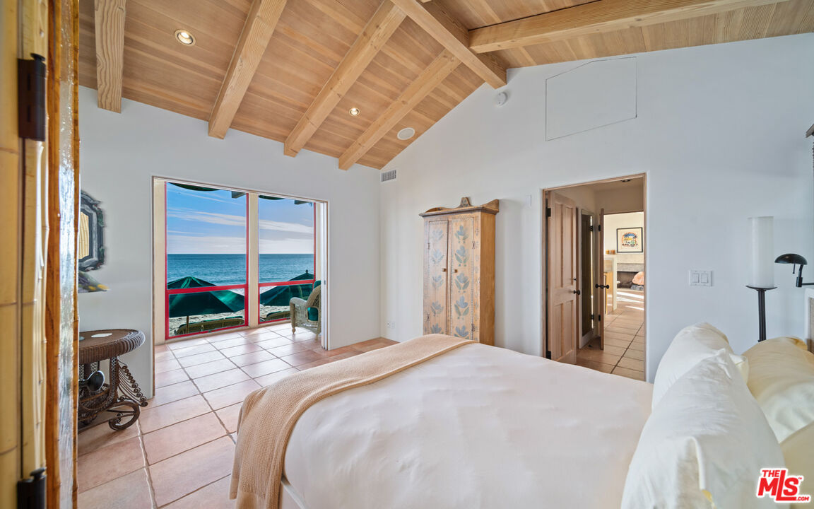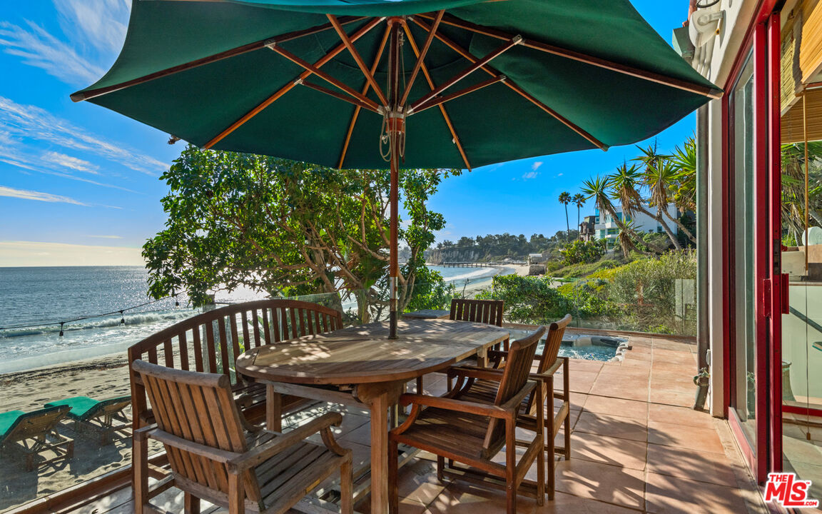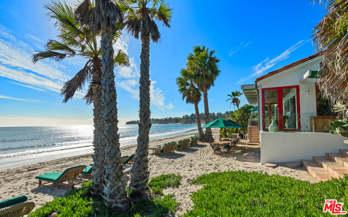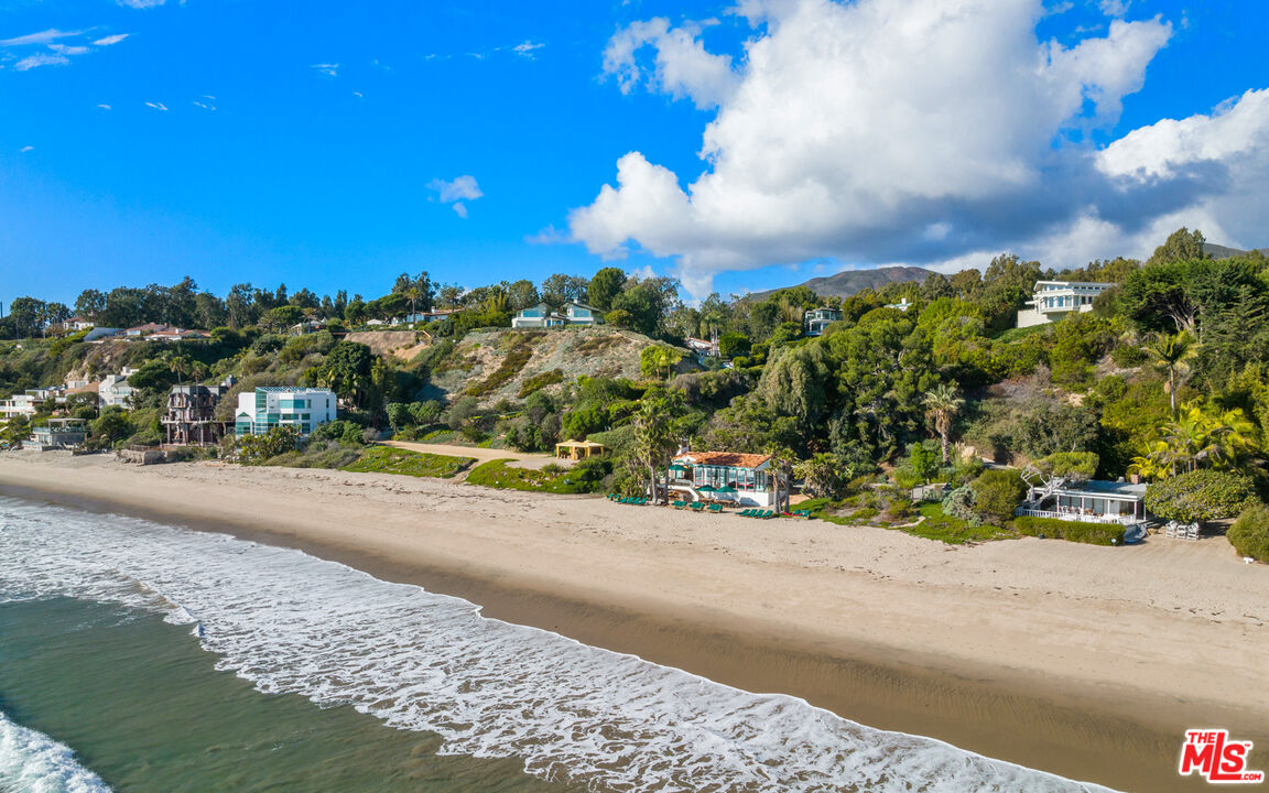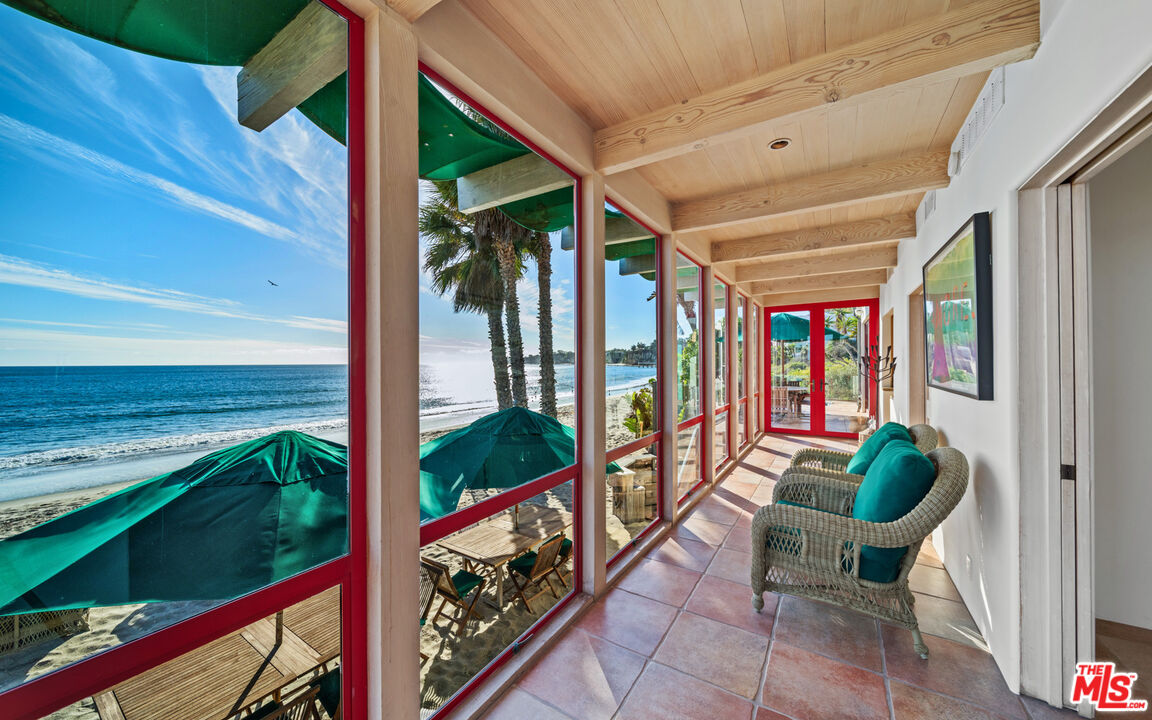 Set behind gates at the end of a long, private street, this romantic beachfront Spanish-style bungalow is perfectly situated for the enjoyment of expansive views of the ocean, islands, and coastline along with gorgeous sunsets and the ever-changing sky. Highlights include high beamed ceilings, walls of glass, tiled floors, a long oceanfront loggia for lounging and entertaining, and a resort-style, palm-fringed area for relaxing, dining, and entertaining on the sand. The living room, with a fireplace, built-in cabinets, and wraparound windows, has an al fresco dining porch just outside. A wide archway opens to the adjacent ocean-view kitchen, complete with granite countertops, pantry cabinets, and top-quality appliances. The home's charming bedroom has wide pocket doors that open onto the loggia and its amazing views. Off the living room, the tiled deck has a built-in barbecue, Jacuzzi, and steps down to the sand, where there is a small wood bar and deck area, a surfboard rack, and two outdoor showers. Equipped with air conditioning and security, this is the perfect private beach getaway, every day of the year. 27910 PCH (Main House) is also for lease. Both can be leased together for $60k/month.Interested in this Listing?