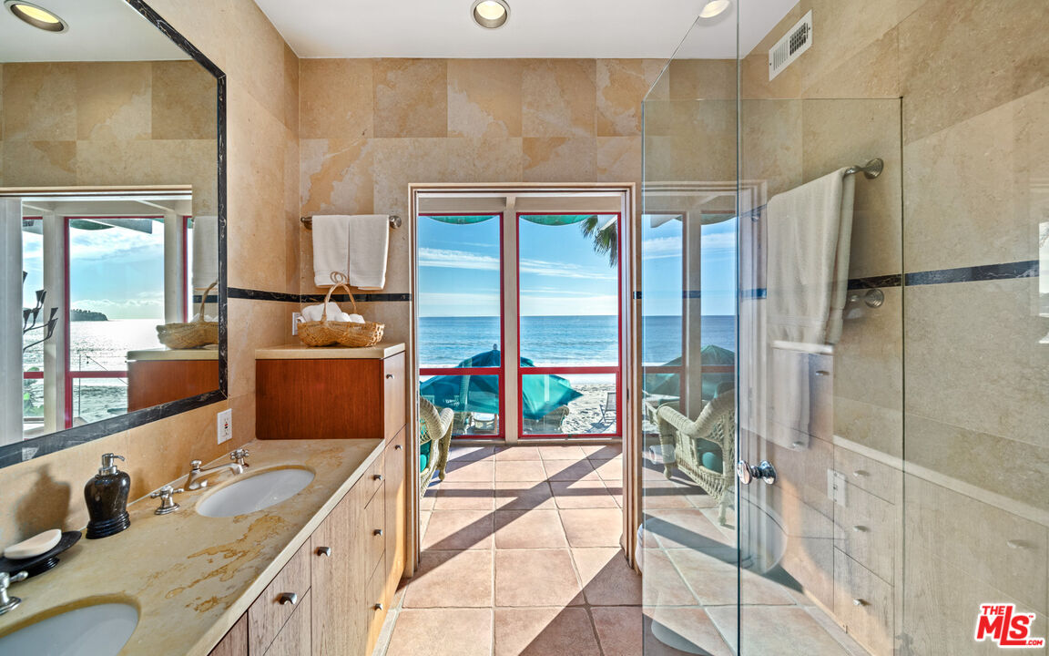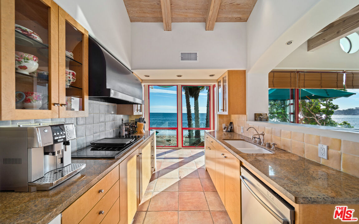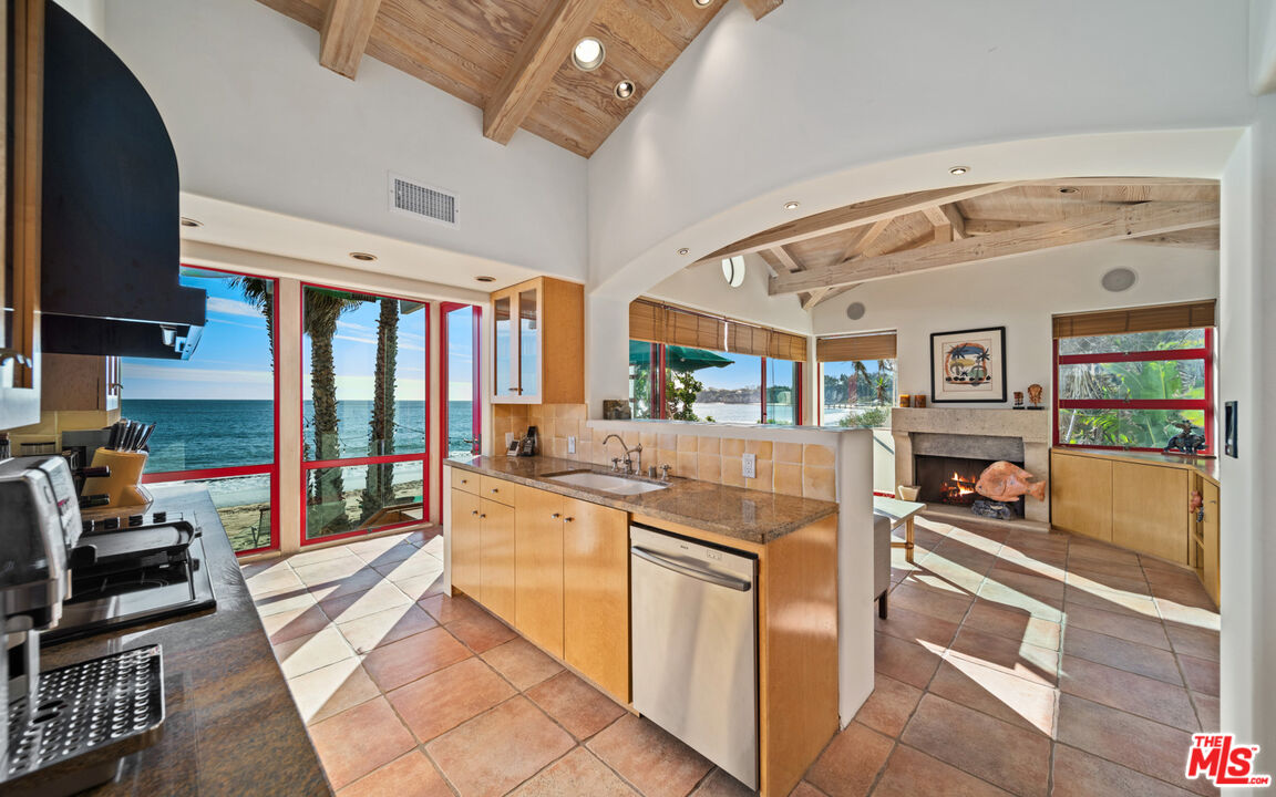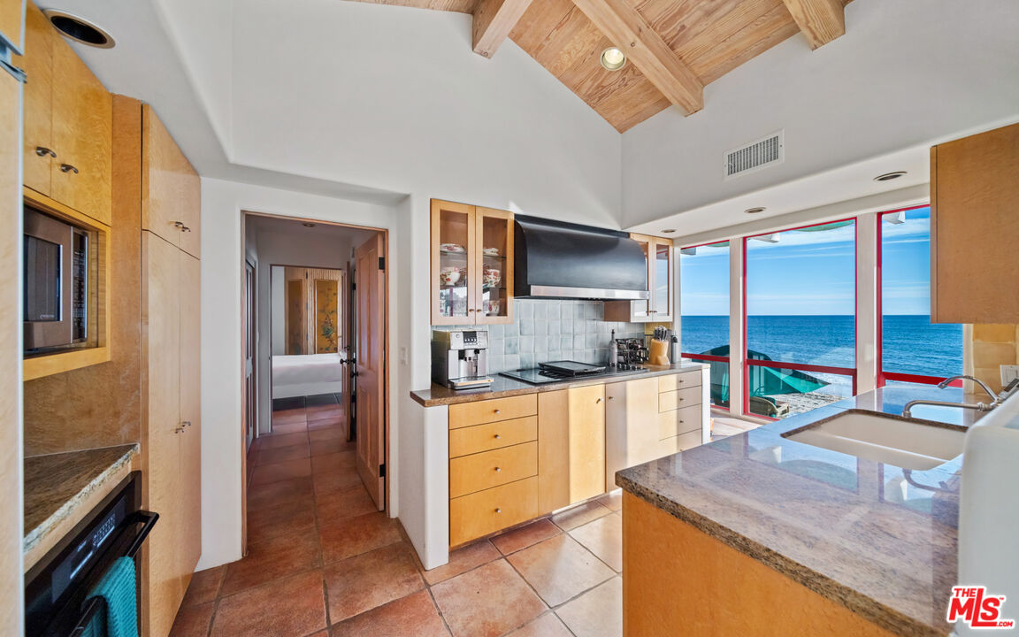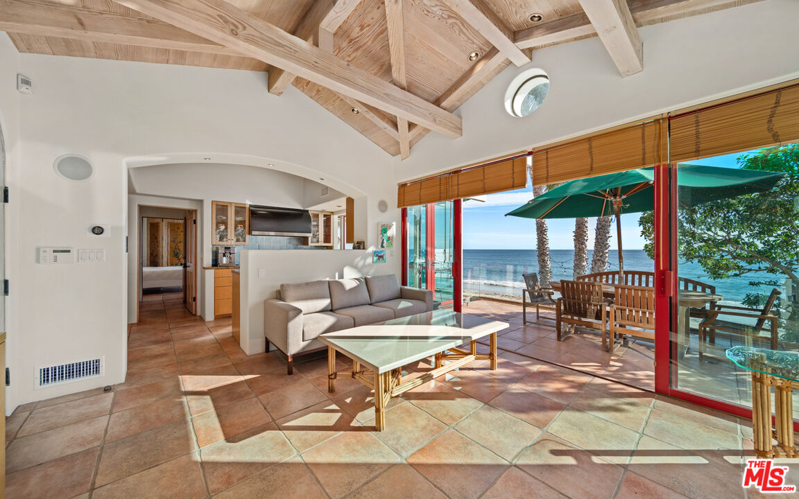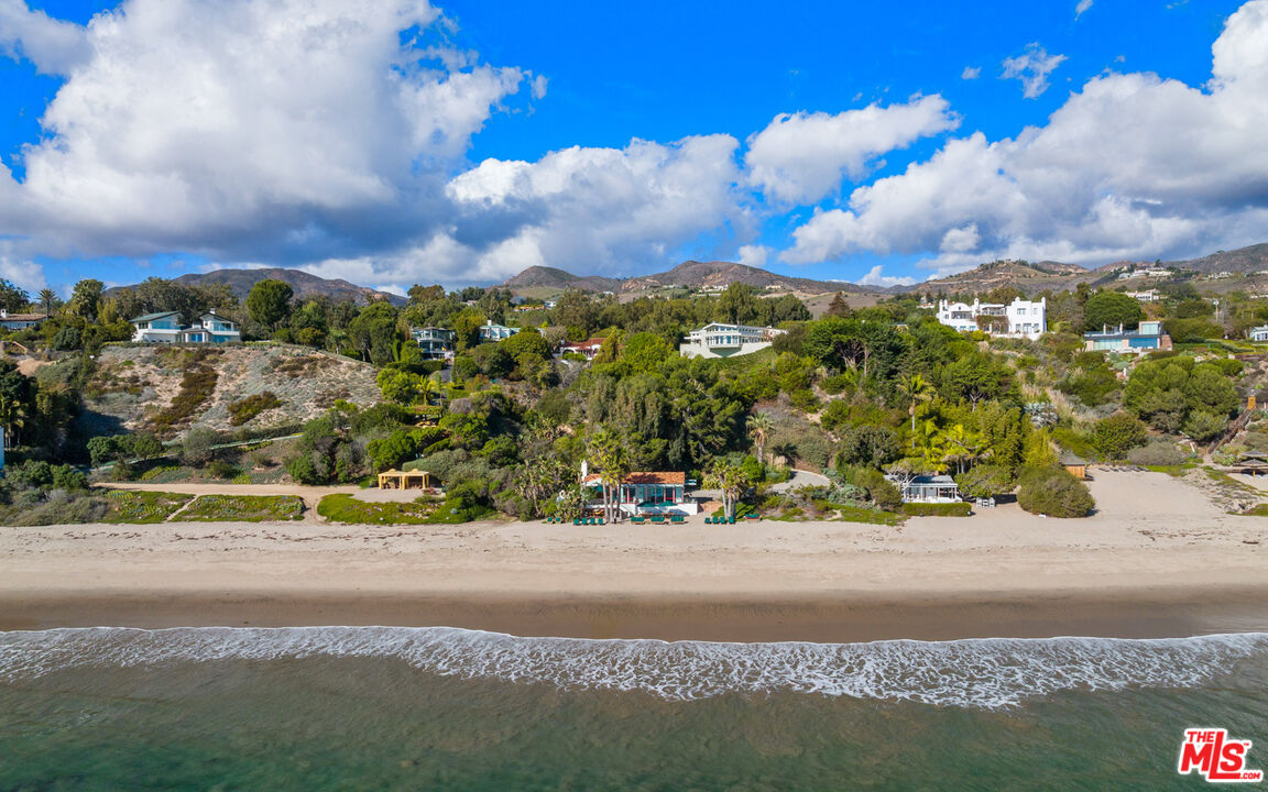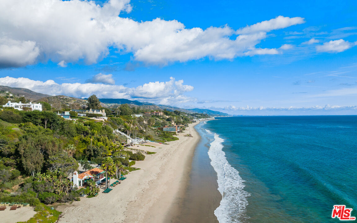 Set behind gates at the end of a long, private street, this romantic beachfront Spanish-style bungalow is perfectly situated for the enjoyment of expansive views of the ocean, islands, and coastline along with gorgeous sunsets and the ever-changing sky. Highlights include high beamed ceilings, walls of glass, tiled floors, a long oceanfront loggia for lounging and entertaining, and a resort-style, palm-fringed area for relaxing, dining, and entertaining on the sand. The living room, with a fireplace, built-in cabinets, and wraparound windows, has an al fresco dining porch just outside. A wide archway opens to the adjacent ocean-view kitchen, complete with granite countertops, pantry cabinets, and top-quality appliances. The home's charming bedroom has wide pocket doors that open onto the loggia and its amazing views. Off the living room, the tiled deck has a built-in barbecue, Jacuzzi, and steps down to the sand, where there is a small wood bar and deck area, a surfboard rack, and two outdoor showers. Equipped with air conditioning and security, this is the perfect private beach getaway, every day of the year. 27910 PCH (Main House) is also for lease. Both can be leased together for $60k/month.Interested in this Listing?