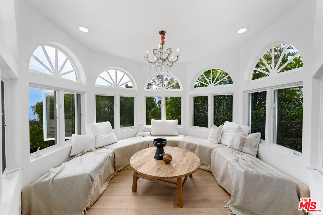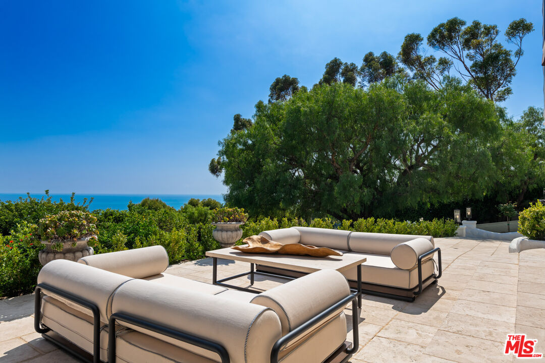 Welcome to your private paradise. A long driveway leads to this magnificent Normandy-style estate, surrounded by privacy hedges and mature trees for a serene retreat. A charming fountain and lush turf lawns greet you upon arrival, complementing breathtaking ocean views from the front yard.Step through double glass doors into an inviting foyer with stone tile floors. The living room features French doors, a large gas fireplace with a beautiful mantle, and an ocean-view nook. Behind it, the dining room boasts high ceilings, stone tile floors, and sliding glass doors opening to the backyard for seamless indoor-outdoor dining.The gourmet kitchen, accessible from the foyer, includes stone tile floors, high ceilings with recessed lighting, granite island counters, and top-tier appliances: a Sharp microwave, Sub-Zero fridge/freezer, double GE oven, mini wine fridge, and Asko dishwasher. A deep walk-in pantry provides additional storage with another Whirlpool fridge/freezer. Adjacent, the butler's pantry and laundry room offer granite counters, a sink, and a Whirlpool washer/dryer, leading to a full bathroom.The breakfast room features curved walls, ocean views, and high ceilings. A charming powder room, inspired by Marie Antoinette with hand-painted blue walls and gold trim, adds a whimsical touch.A grand staircase with a chandelier leads to the second floor. A spacious reading nook welcomes you before entering the owner's suite, which boasts wide-plank wood floors, a marble fireplace, and two sets of French doors opening to an ocean-view balcony. The ensuite bathroom is a sanctuary with a water closet, linen closet, marble shower with double heads (including a rainfall shower), built-in jetted tub, dual sinks, a vanity, stone counters, and a walk-in closet with built-ins.The second suite offers ocean views, a fireplace, French doors to balconies, and a circular sitting room. Its ensuite bathroom includes marble counters, a freestanding tub, a shower stall, and a walk-in closet.Guest House 1, above the garage, features wood floors, ocean views, high ceilings, a kitchenette with a mini-fridge, and a full bathroom with a shower stall. Guest House 2 has a double-door entry, a spacious bedroom with wood floors, French doors to a closet, and a Jack-and-Jill bathroom with a jetted tub/shower. Its kitchen/living area includes a sink, tile counters, mini-fridge, and four-burner range, while the living/dining area boasts ocean views, wood floors, and a private patio with a turf lawn.The estate includes six parking spaces, a sprinkler system, an AC system, and security cameras. The backyard is an entertainer's dream, featuring a jacuzzi, a pristine pool with matching tile, a covered awning, and an open patio for dining and lounging. A built-in BBQ sits beside the jacuzzi, while steps lead through the trees to the driveway.Approximate sizes: Main House 5,690 SF, Guest House 1,083 SF, Guest Unit 524 SF, Detached Garage 444 SF. 18-month lease minimum. $30,000/month for unfurnished & $35,000/month for furnished.Interested in this Listing?