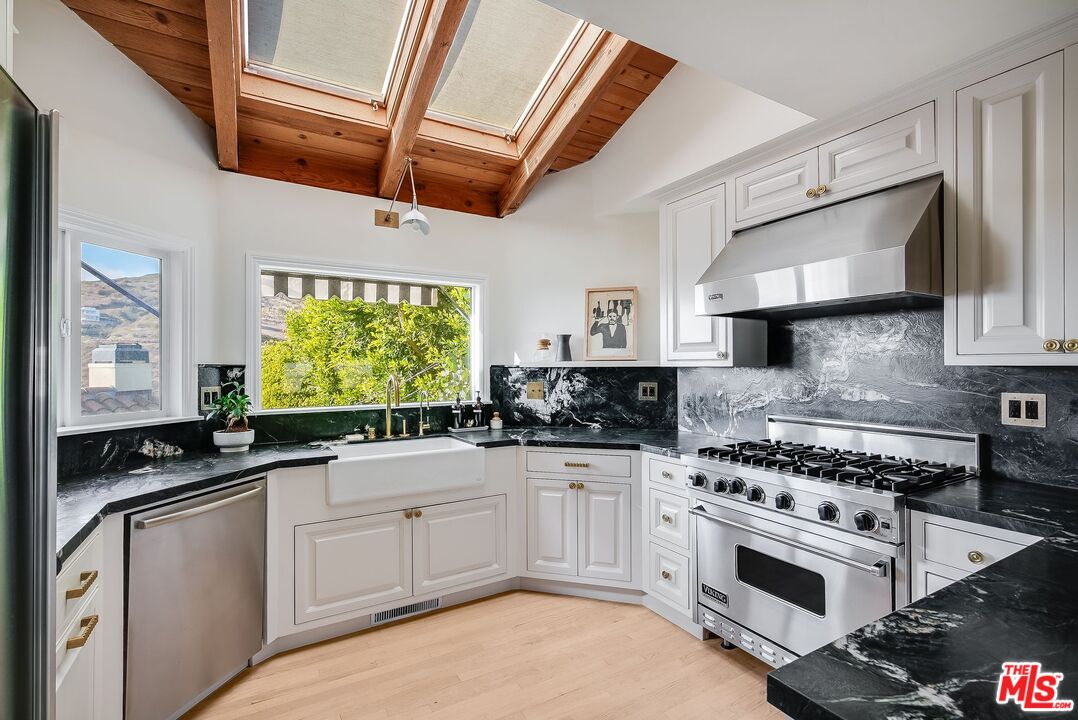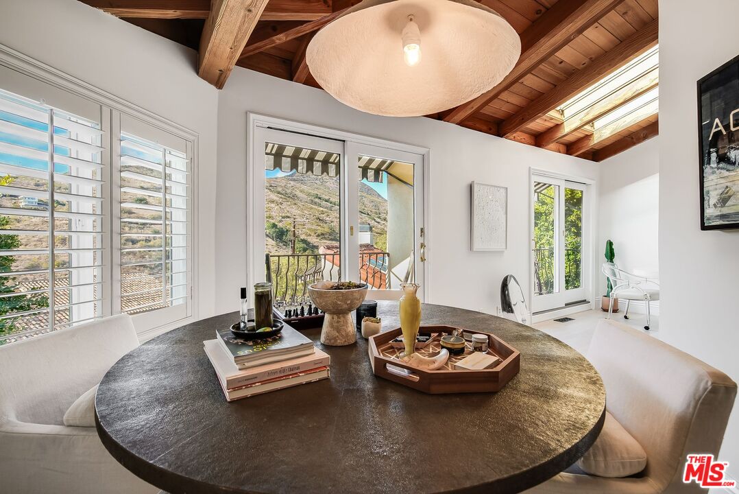 Available Mid-June and for SUMMER RENTAL! Elegant Malibu Coastal Retreat in the Enclave of El Nido. Nestled just five minutes up a smooth and scenic drive along Corral Canyon, this enchanting Malibu coastal home is a serene escape in the heart of central Malibu. A harmonious blend of warmth and sophistication, this fully furnished three-bedroom, two-bathroom residence has been thoughtfully renovated throughout - most notably with a stunning new chef's kitchen featuring elegant stone countertops, top-of-the-line appliances and professional-grade cooking apparatus. Coupled with an elite water filtration system favored by LA's top wellness enthusiasts, it's a chef and entertainers dream!!Step outside to a lush backyard garden, expansive decks, and multiple terraces designed for seamless alfresco dining and entertaining under the stars. Enjoy breathtaking Malibu mountain ridge-line views with peek-a-boo ocean vistas, offering an ever-changing canvas of natural beauty. This home is a true sanctuary of peace and relaxation, providing the perfect retreat from the fast pace of modern life. Centered around four fireplaces, one on each level, the home radiates a cozy ambiance throughout. The spacious downstairs den provides an ideal setting for entertaining guests or enjoying family gatherings, while the primary suite, complete with its own fireplace and private balcony, offers a tranquil escape to unwind and take in the views. Adding to the home's charm is a detached bonus guest quarters, a sun-drenched hideaway with its own fireplace (and perfect pomegranate tree perched just outside the floor to ceiling windows) works well for visitors, a music room or studio. In the main home, a serene home office feels like a treehouse perched among the ficus and perfectly suited for work-from-home professionals. A two-car enclosed garage with an EV charger provides both convenience and security, while the fully fenced property ensures privacy. Thoughtfully curated and fully furnished, the home includes stylish rugs, an eclectic art collection, timeless yet fresh furnishings, and high-quality linens offering an effortless move-in experience. For surf lovers, the home comes fully stocked with surfboards and wetsuits, ready for spontaneous ocean adventures. And for nature enthusiasts, some of Malibu's best hiking trails are just steps away, inviting exploration of the canyon and coastline. Timeless design elements such as Sausalito tile at the entrance and patios, bleached oak hardwood floors, and original Malibu tile accents create a warm and inviting character that blends effortlessly with the home's contemporary upgrades. Newly painted and adorned with exceptional finishing touches, this property is more than just a home it's a lifestyle. Elegant yet effortlessly comfortable, this one-of-a-kind Malibu retreat is an inspiring sanctuary for those who appreciate beauty, nature, and the art of coastal living